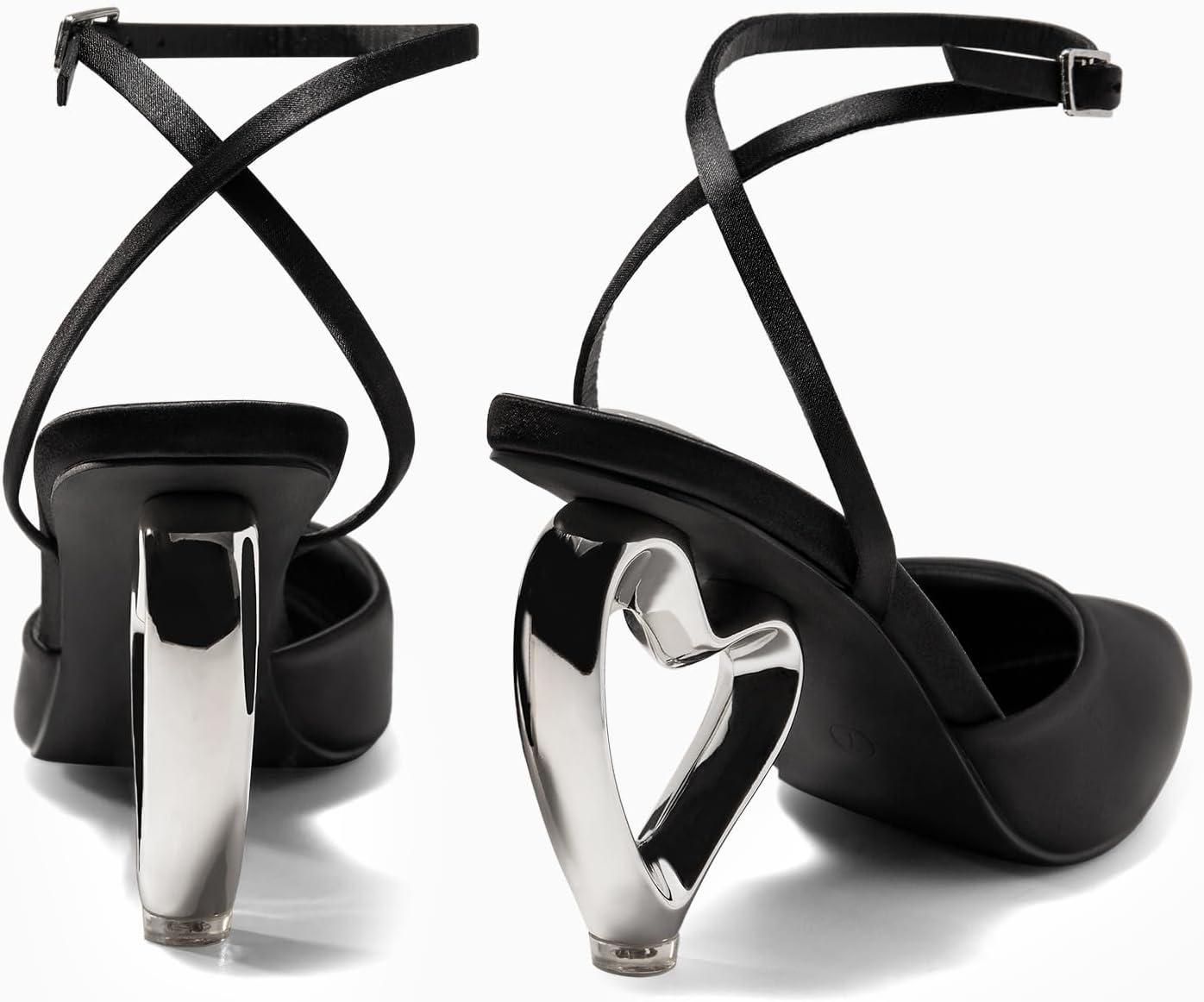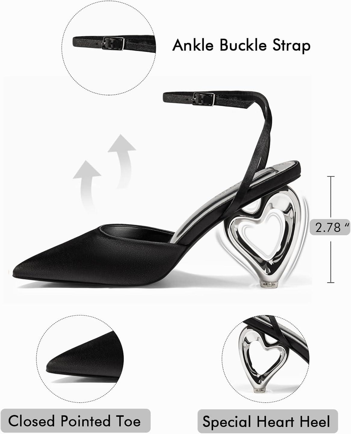 Coutgo Womens Kitten Heels Closed Pointed Toe Heart Heel Ankle Strap Satin Pumps Wedding Prom Dress Shoes(Black)