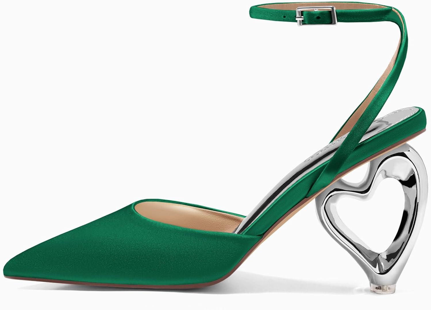 Discover the latest Coutgo Womens Kitten Heels Closed Pointed Toe Heart Heel Ankle Strap Satin Pumps Wedding Prom Dress Shoes(Dark Green) from and take advantage of our limited-time introductory offer.