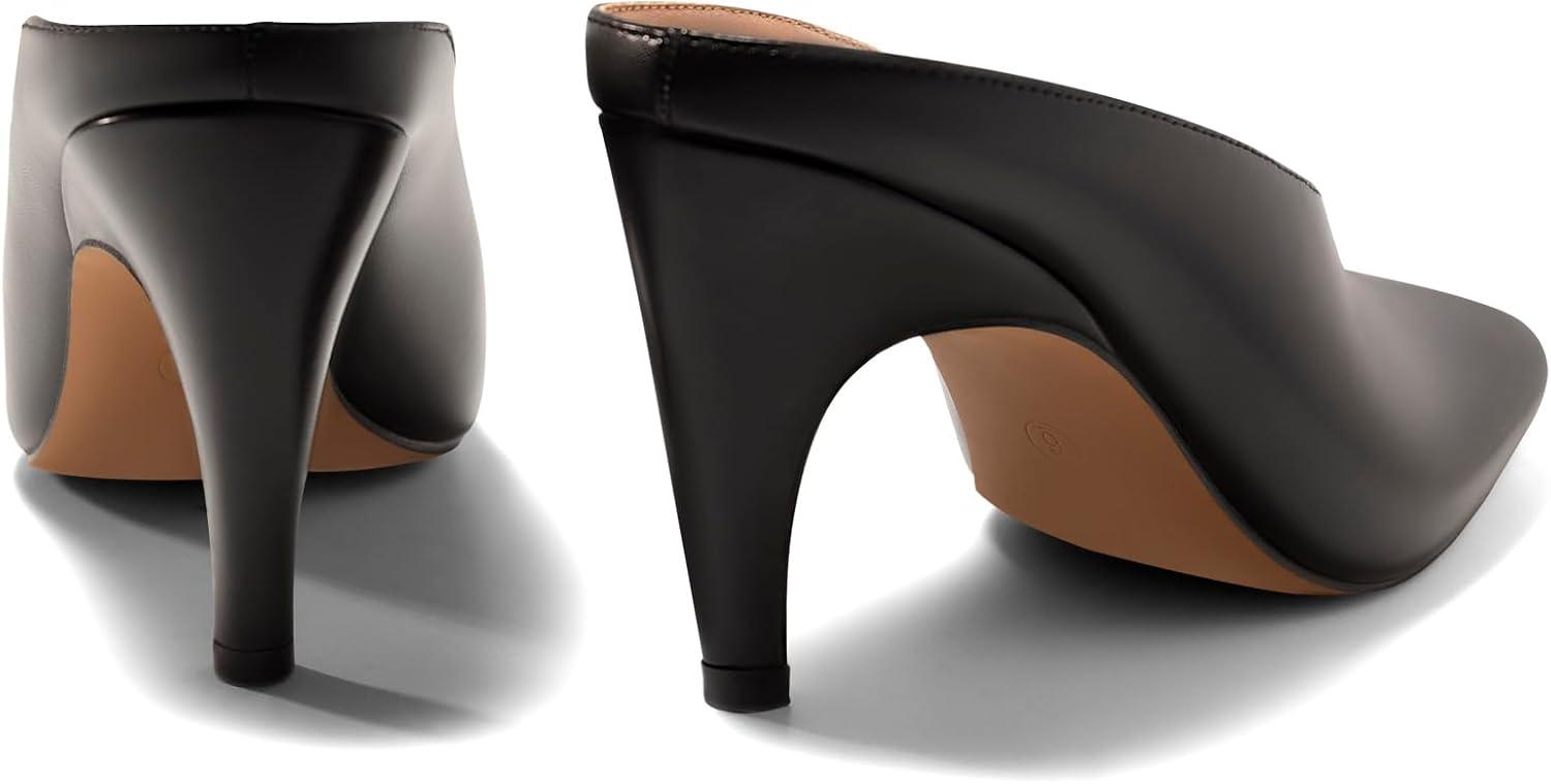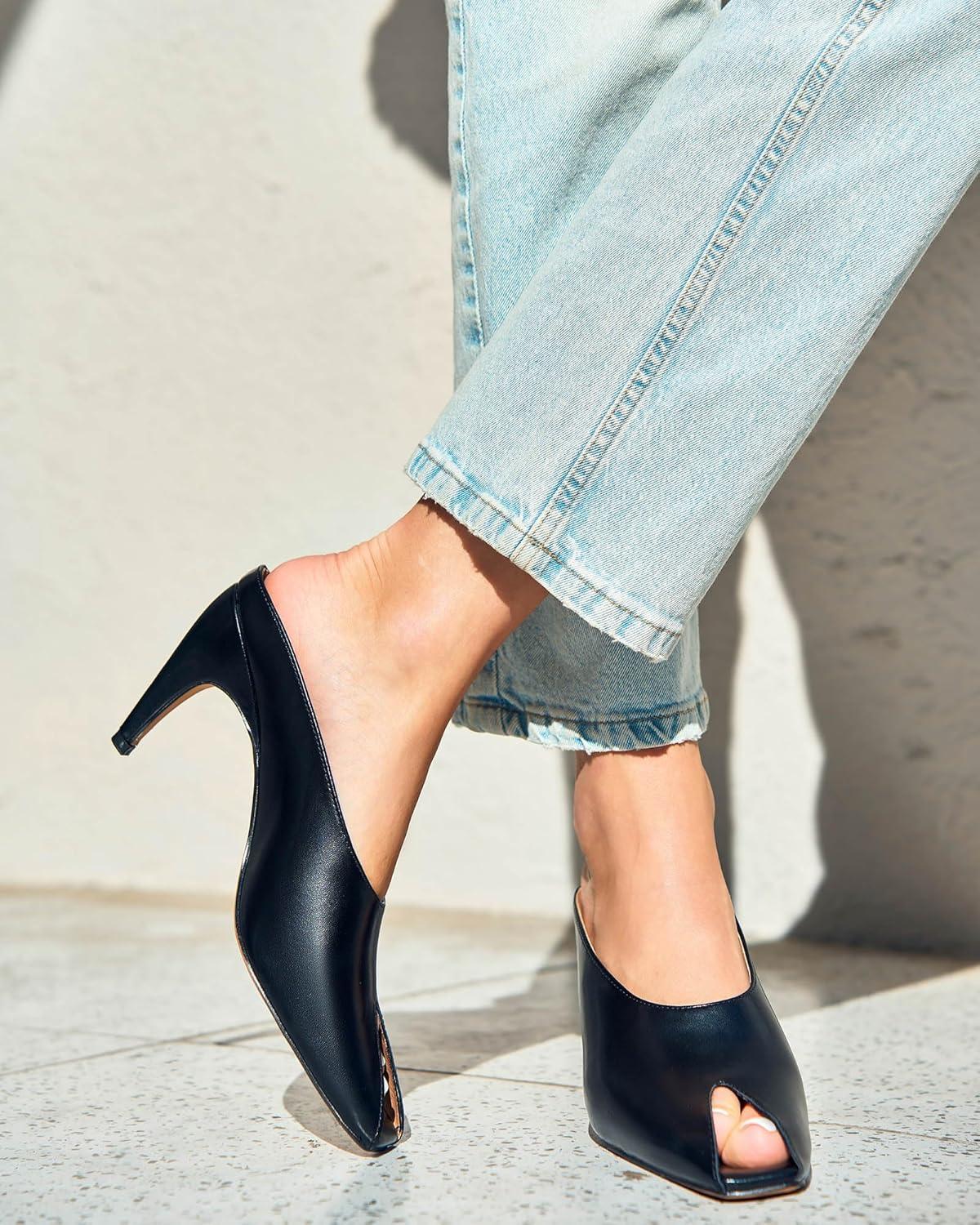 Get a free gift with your purchase of Coutgo Womens Kitten Heels Mules Open Peep Toe Slide Sandals Slip On Summer Dress Shoes(Black). Limited quantities available!