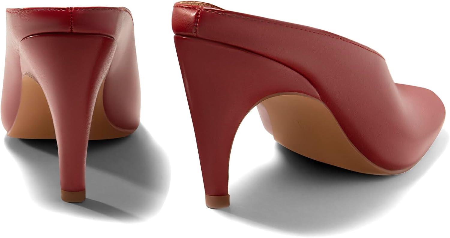 Coutgo Womens Kitten Heels Mules Open Peep Toe Slide Sandals Slip On Summer Dress Shoes(Red)