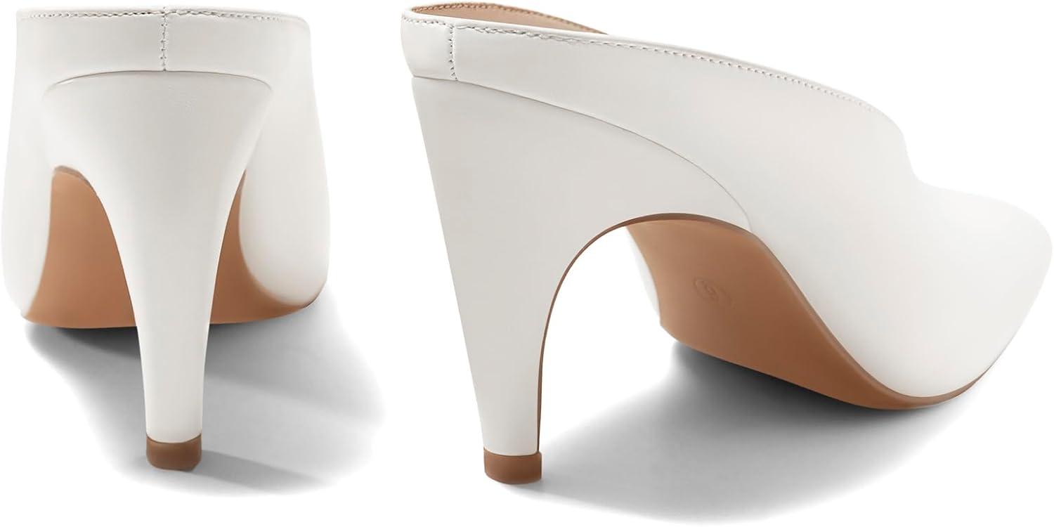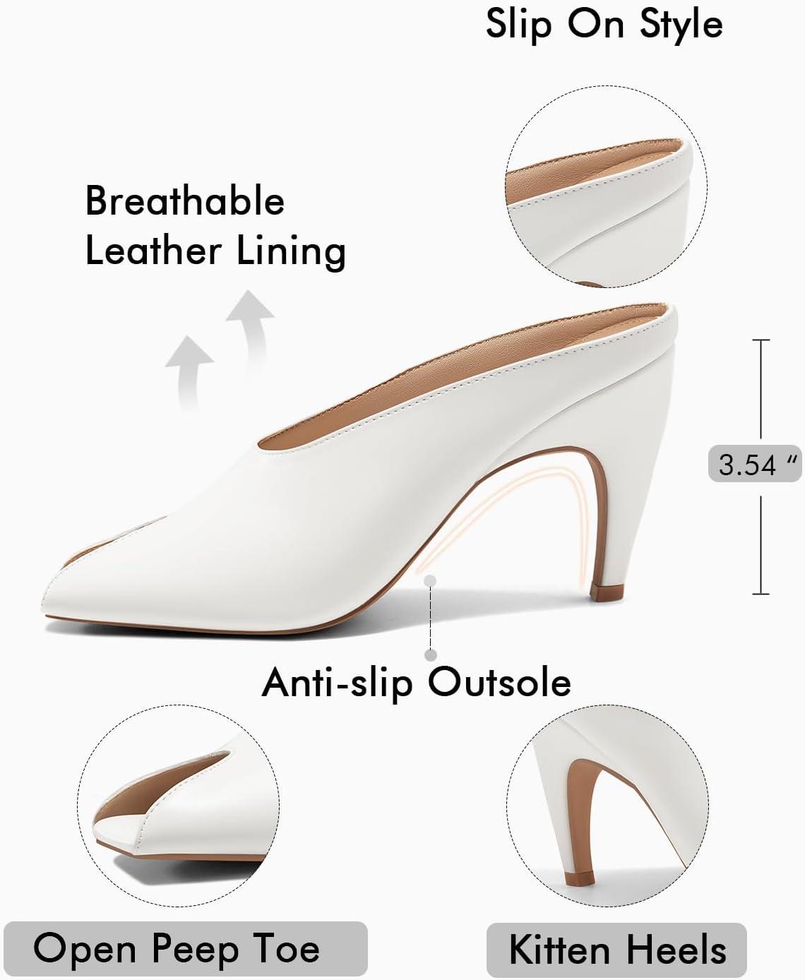 Coutgo Womens Kitten Heels Mules Open Peep Toe Slide Sandals Slip On Summer Dress Shoes(White)