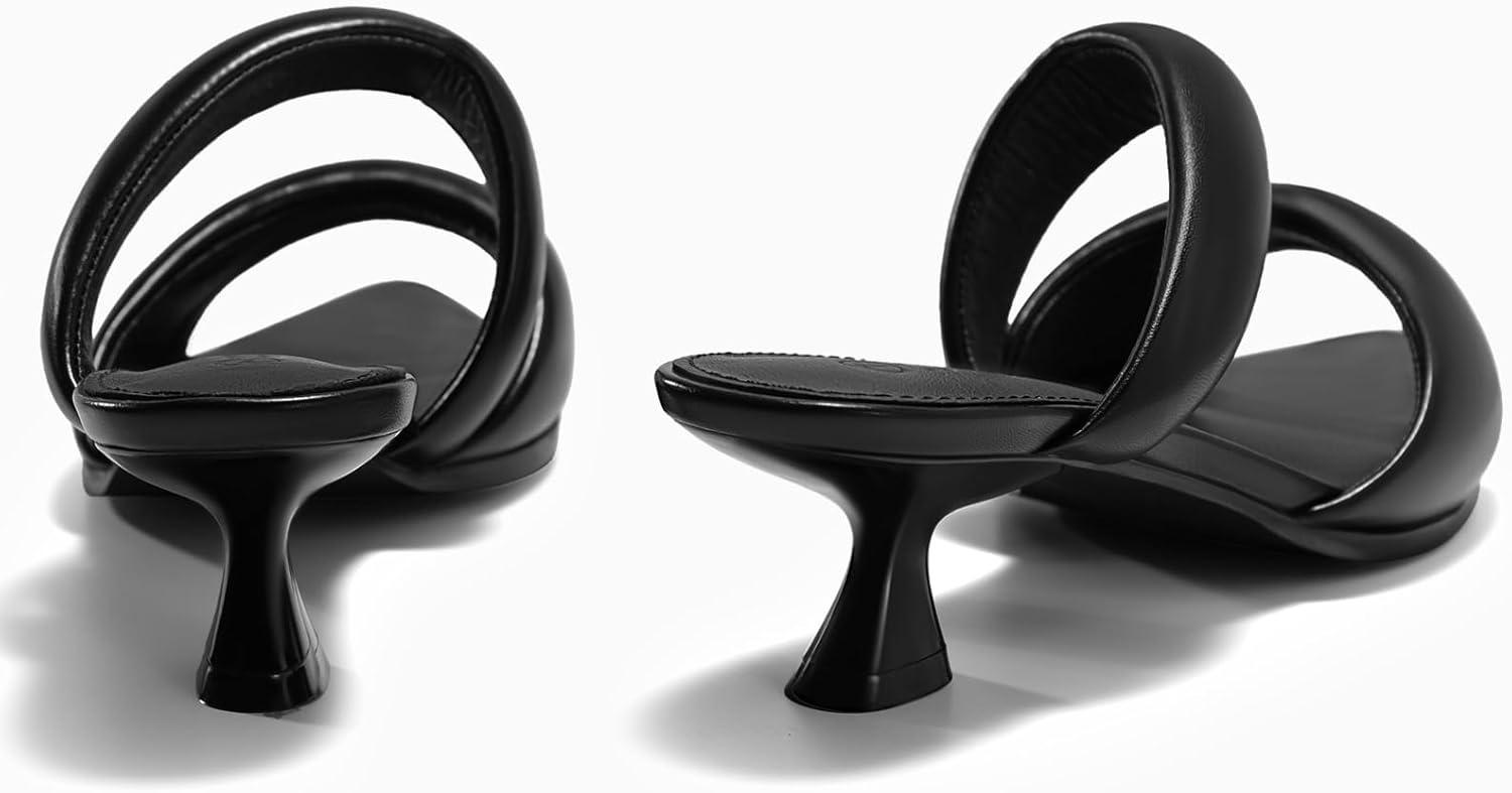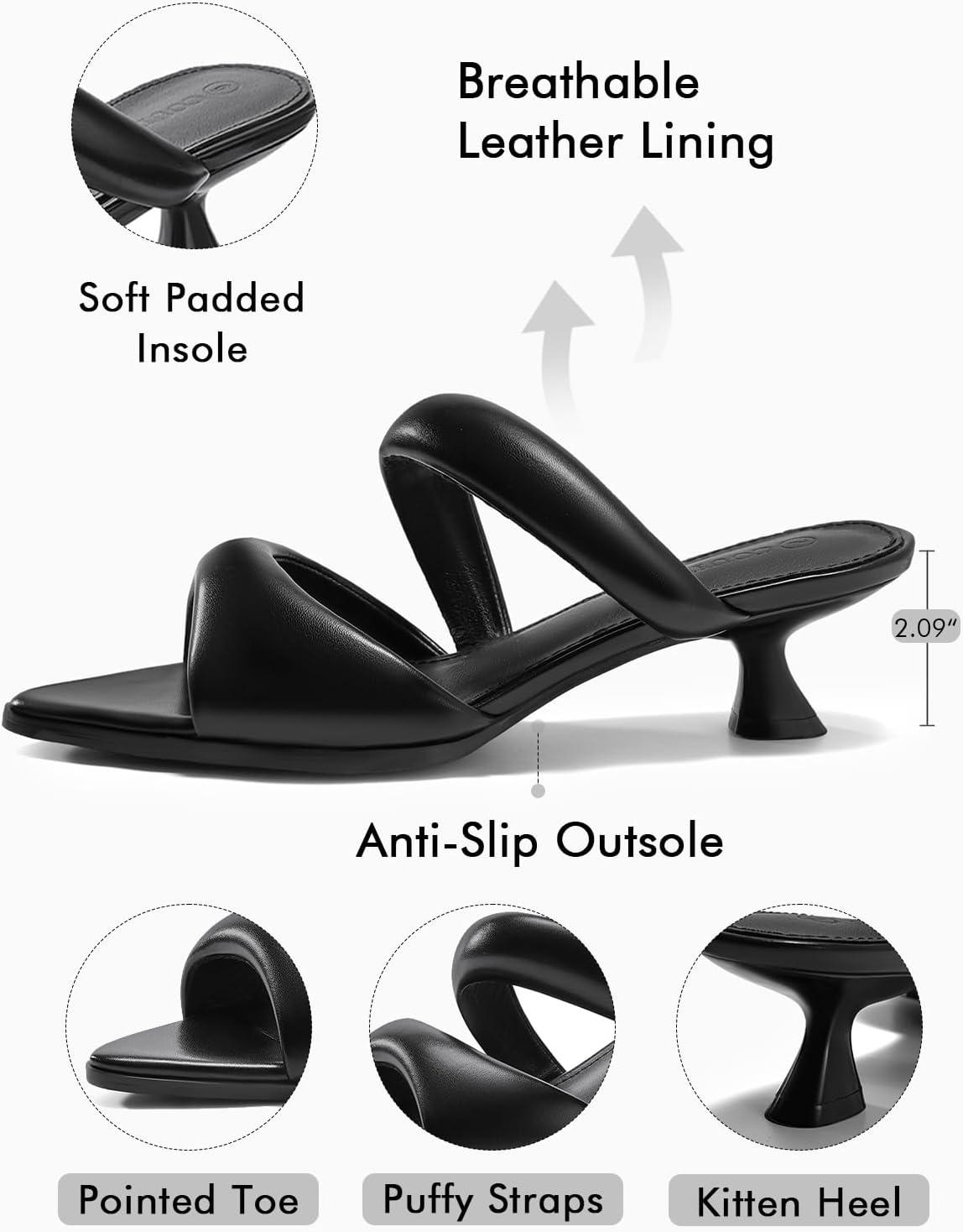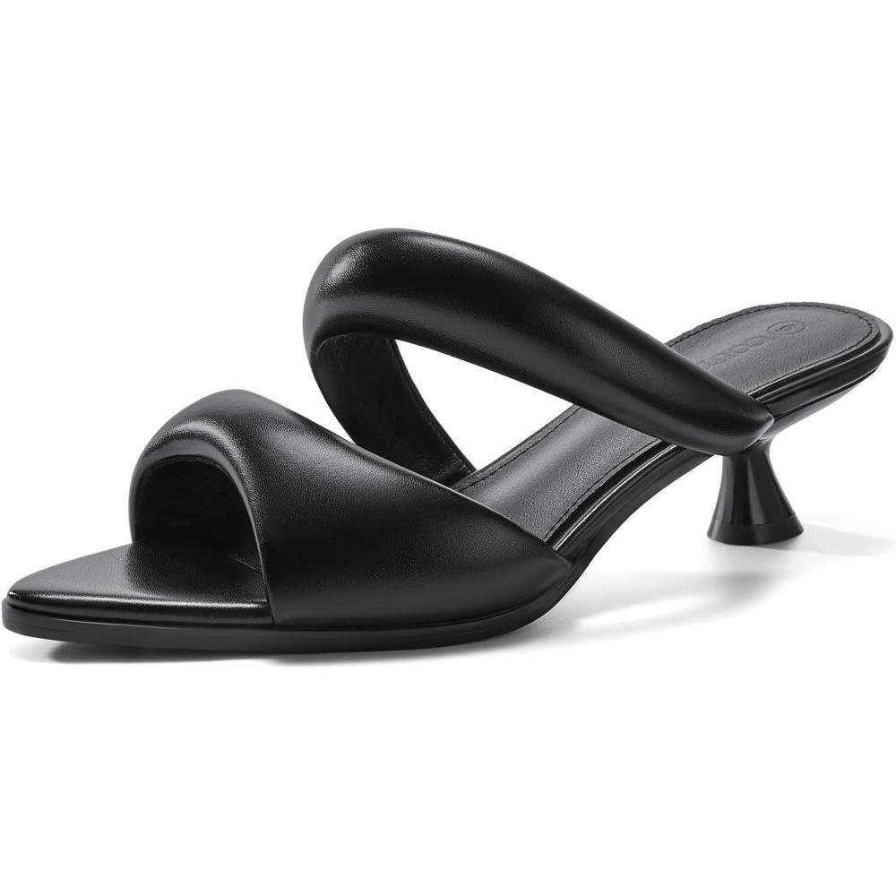 Coutgo Womens Kitten Heels Mules Pointed Open Toe Sandals Double Strap Slip on Prom Dress Shoes(Black)