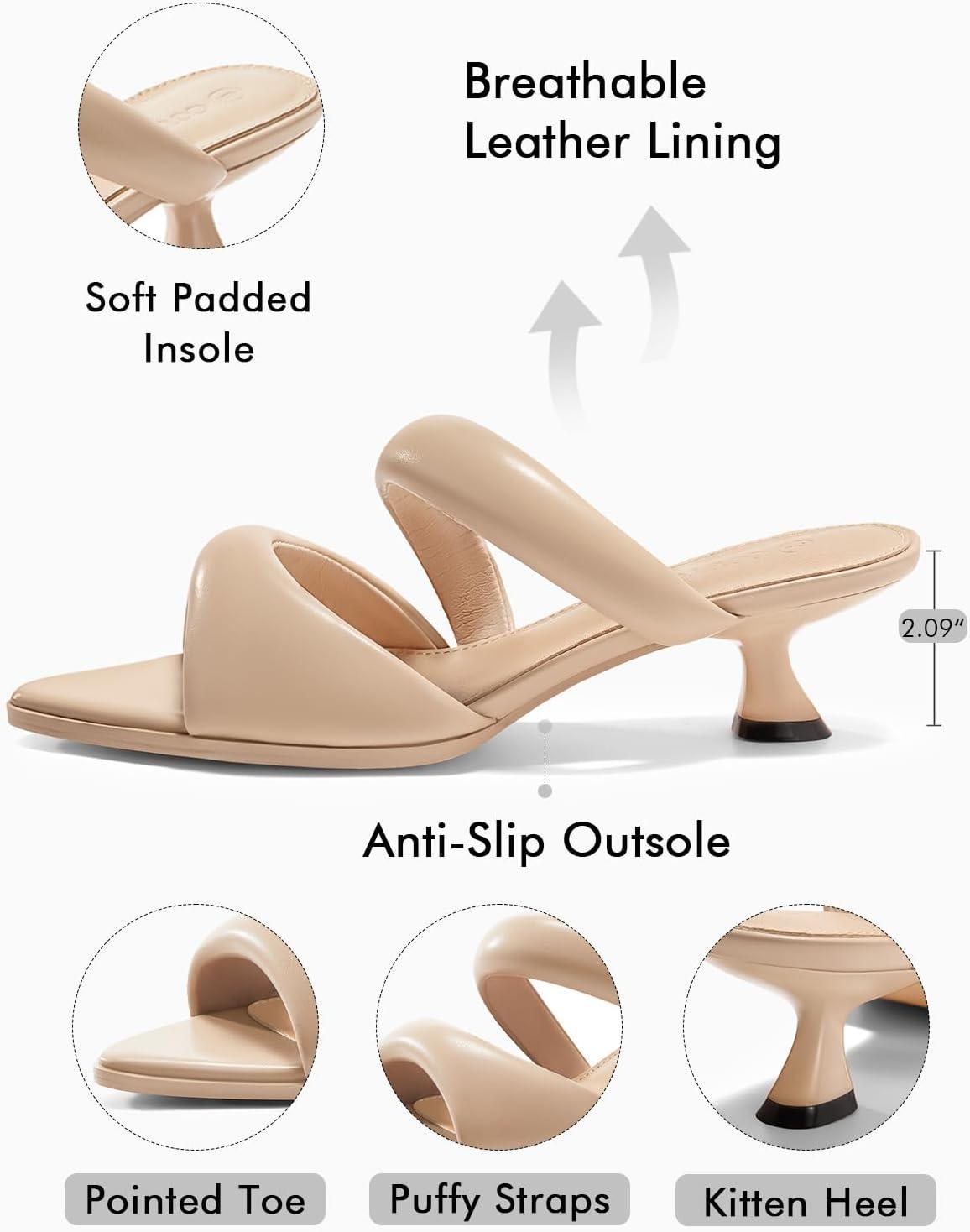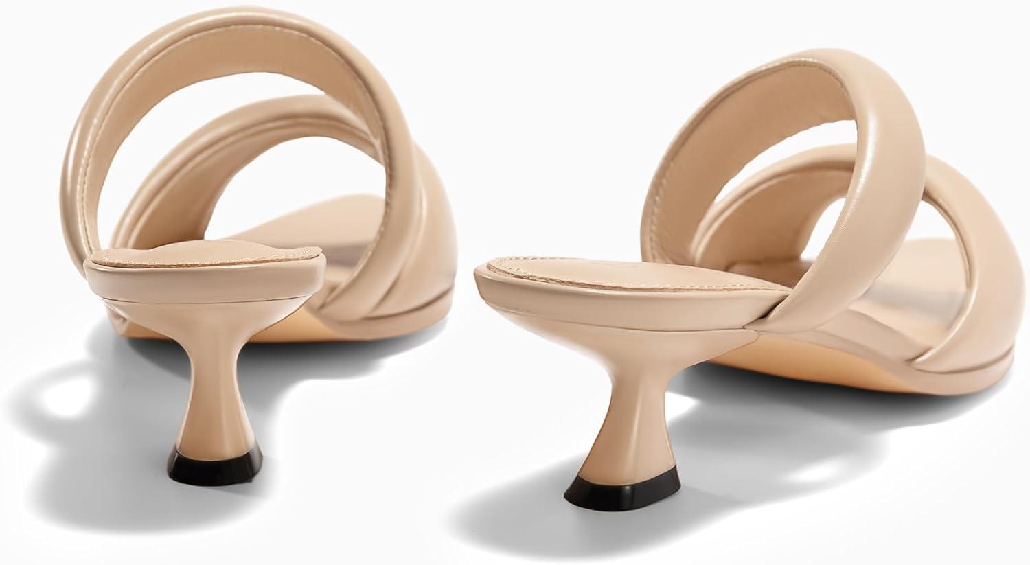 Coutgo Womens Kitten Heels Mules Pointed Open Toe Sandals Double Strap Slip on Prom Dress Shoes(Khaki)