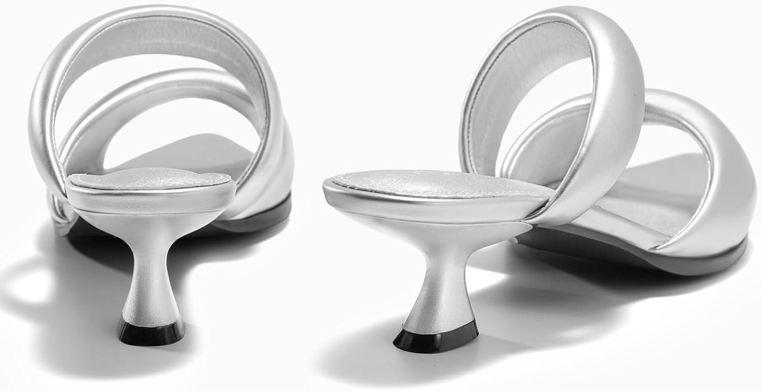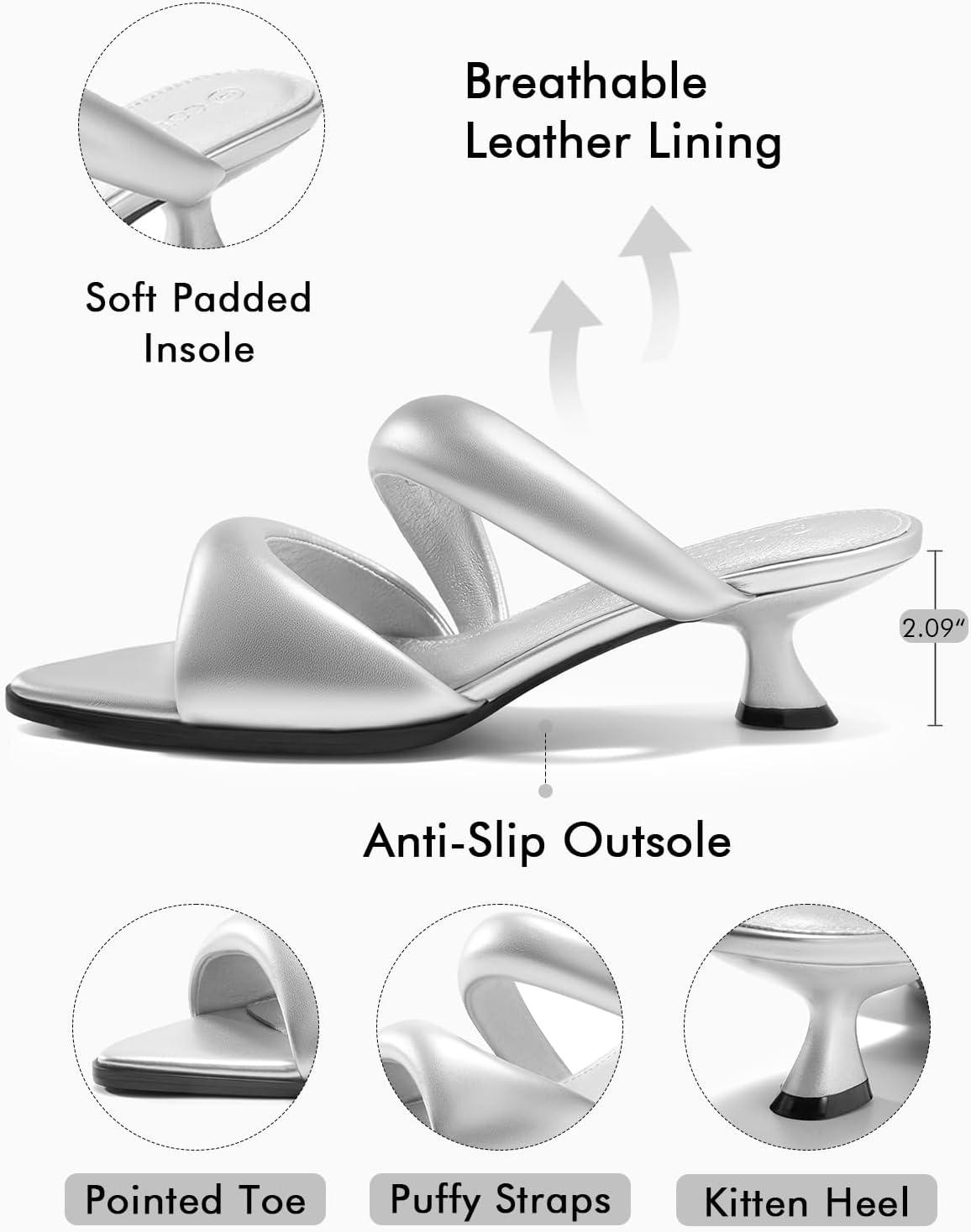 Coutgo Womens Kitten Heels Mules Pointed Open Toe Sandals Double Strap Slip on Prom Dress Shoes(Silver)