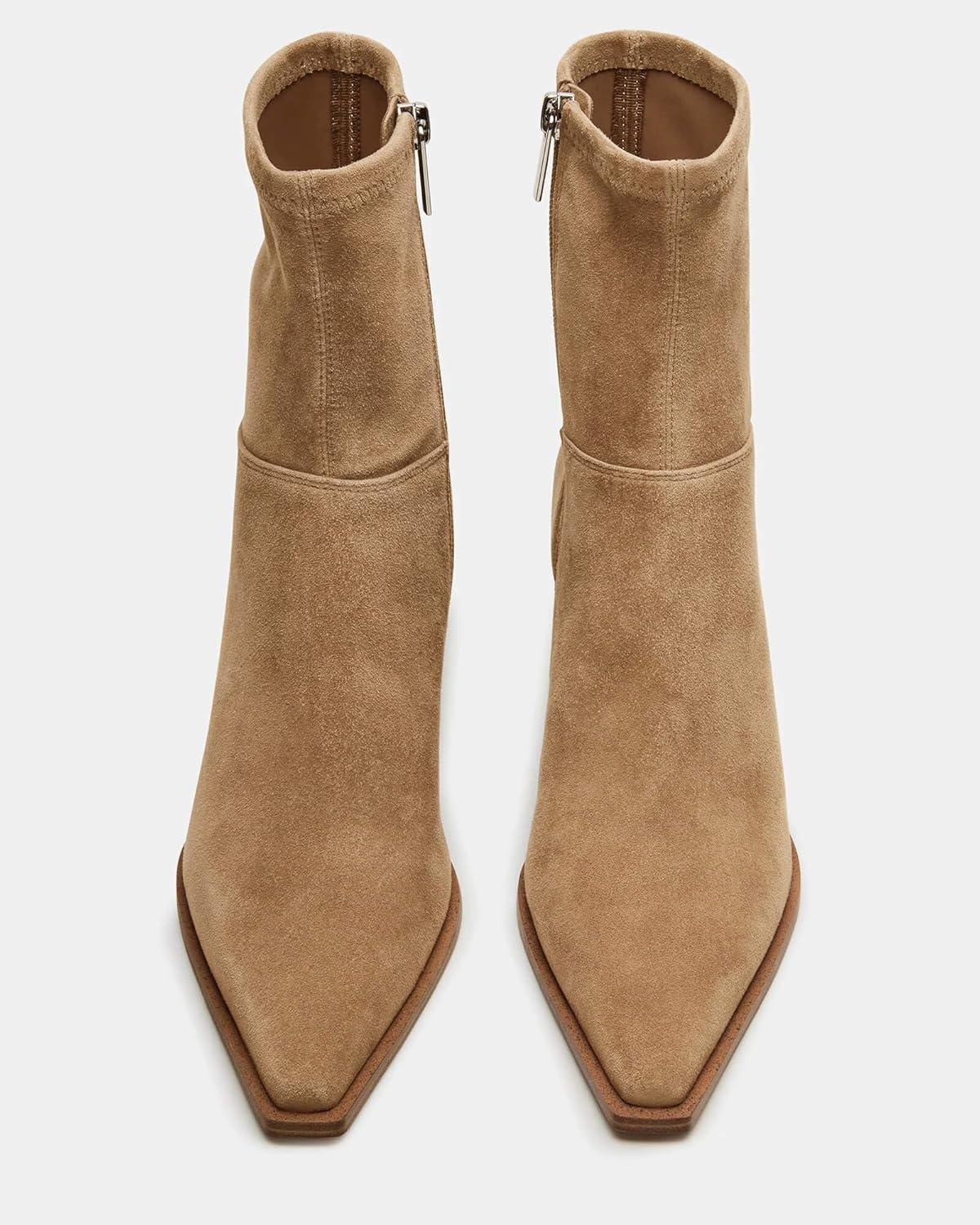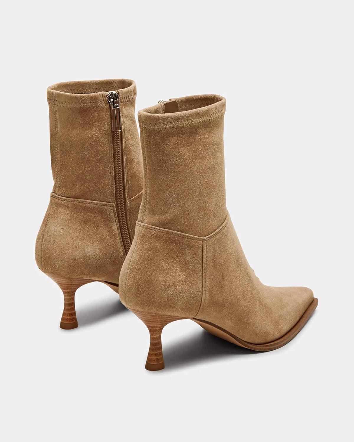 Coutgo Womens Kitten Low Heel Ankle Boots Pointed Toe Side Zipper Short Booties Fall Shoes(Khaki)