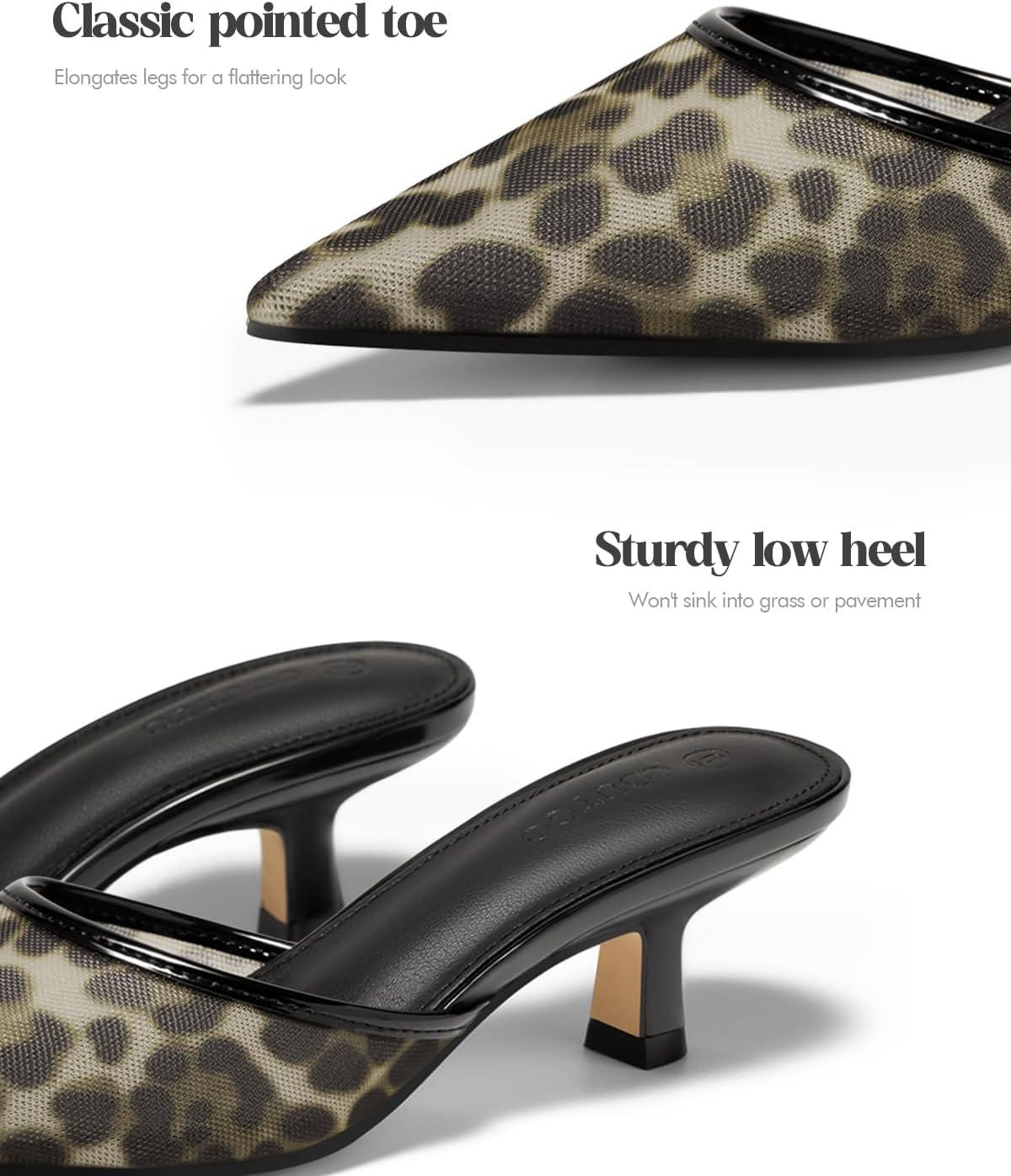 Coutgo Womens Kitten Low Heels Mules Closed Pointed Toe Pumps Slip On Backless Dress Shoes(Leopard Color)