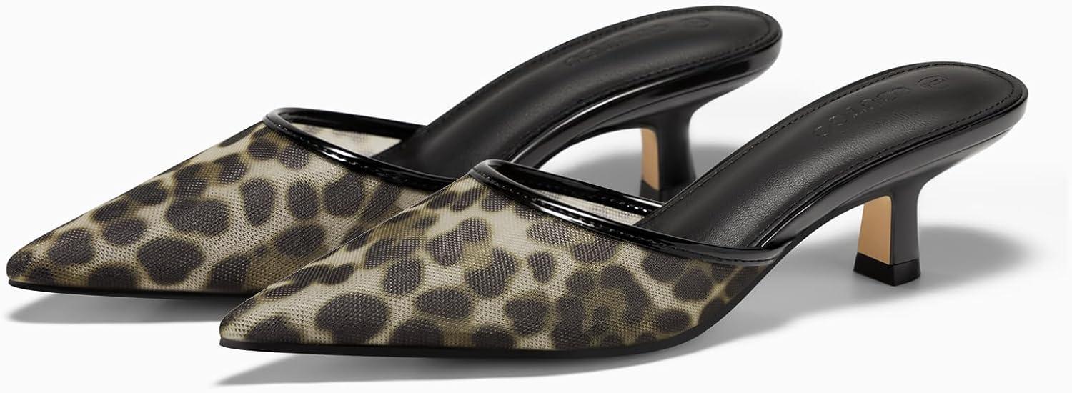 Get the Coutgo Womens Kitten Low Heels Mules Closed Pointed Toe Pumps Slip On Backless Dress Shoes(Leopard Color) you want at a price you can afford with our markdown sale.