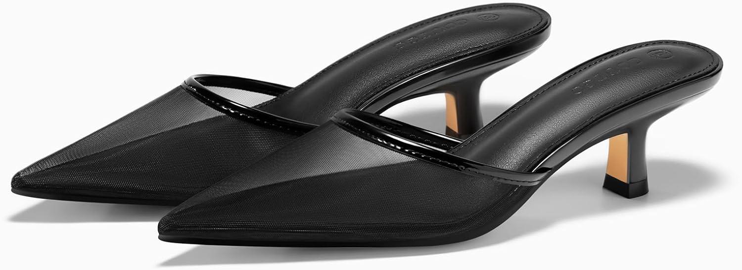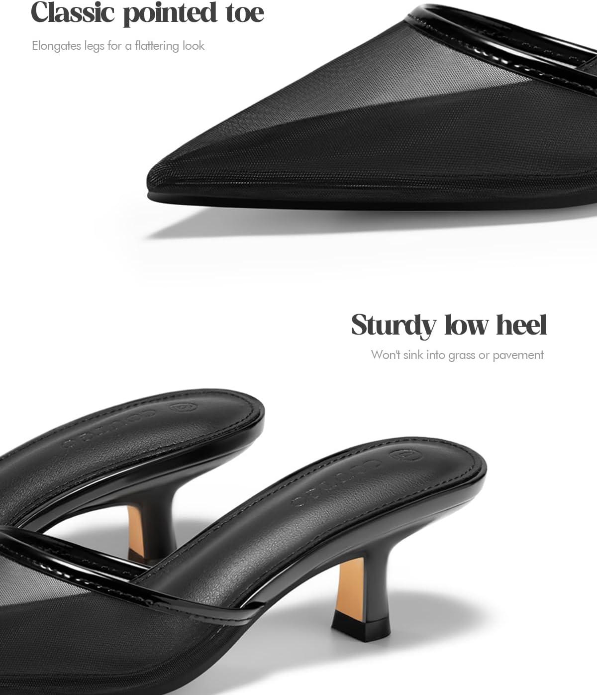 Don’t miss out on our limited-time offer: get a free {accessory} with your purchase of Coutgo Womens Kitten Low Heels Mules Closed Pointed Toe Pumps Slip On Backless Dress Shoes(Mesh Black).