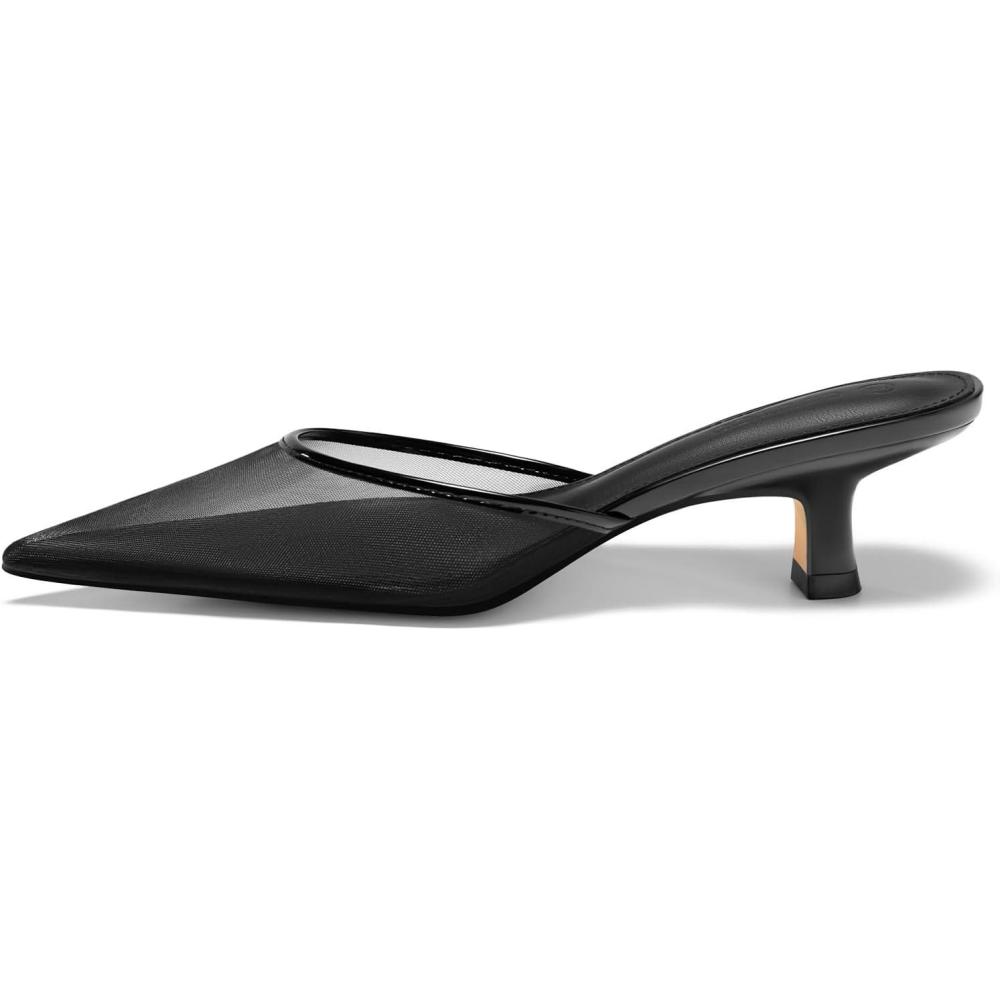 Coutgo Womens Kitten Low Heels Mules Closed Pointed Toe Pumps Slip On Backless Dress Shoes(Mesh Black)