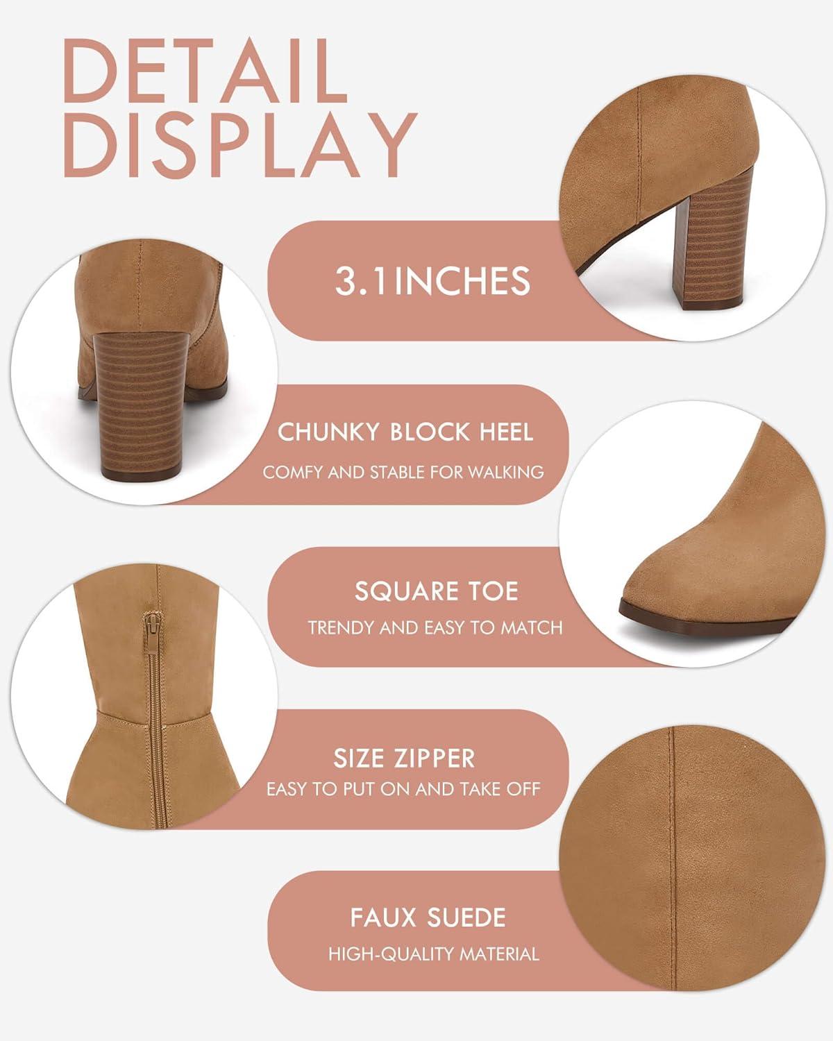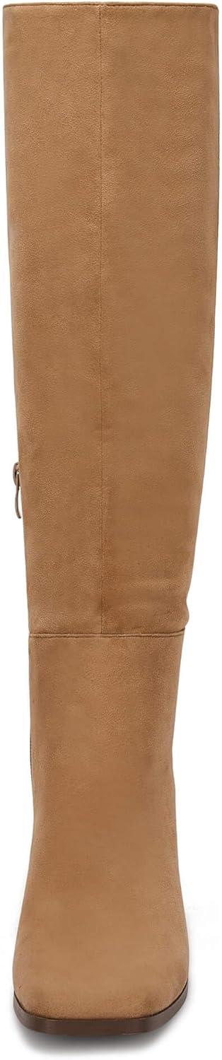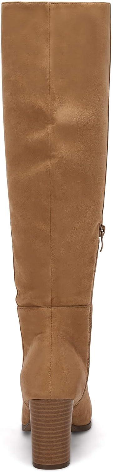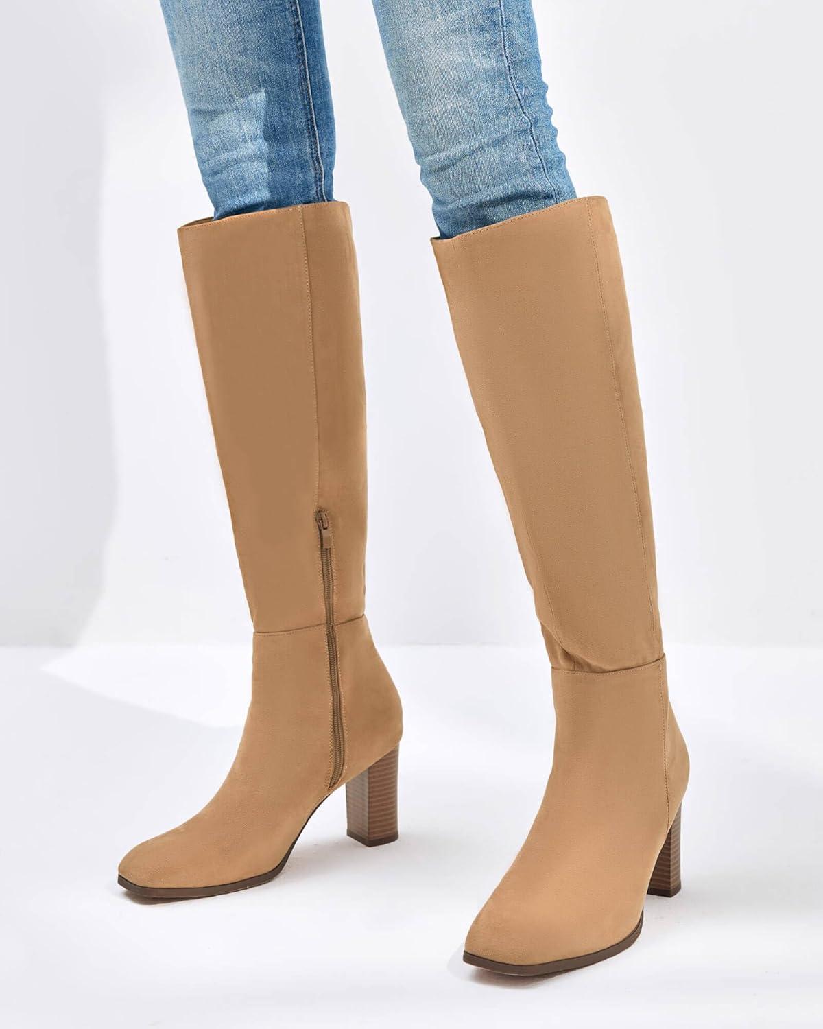 Coutgo Womens Knee High Boots Chunky Block Heels Square Toe Side Zipper Faux Suede Fall Winter Comfort Boot(Khaki)