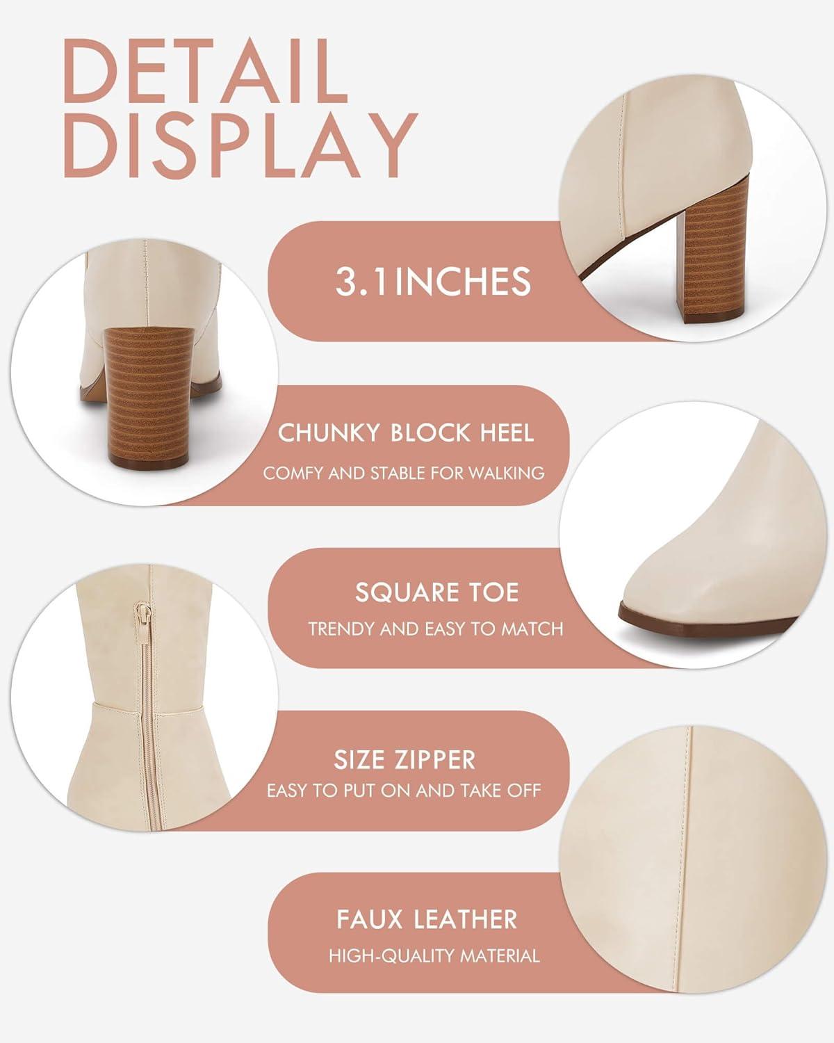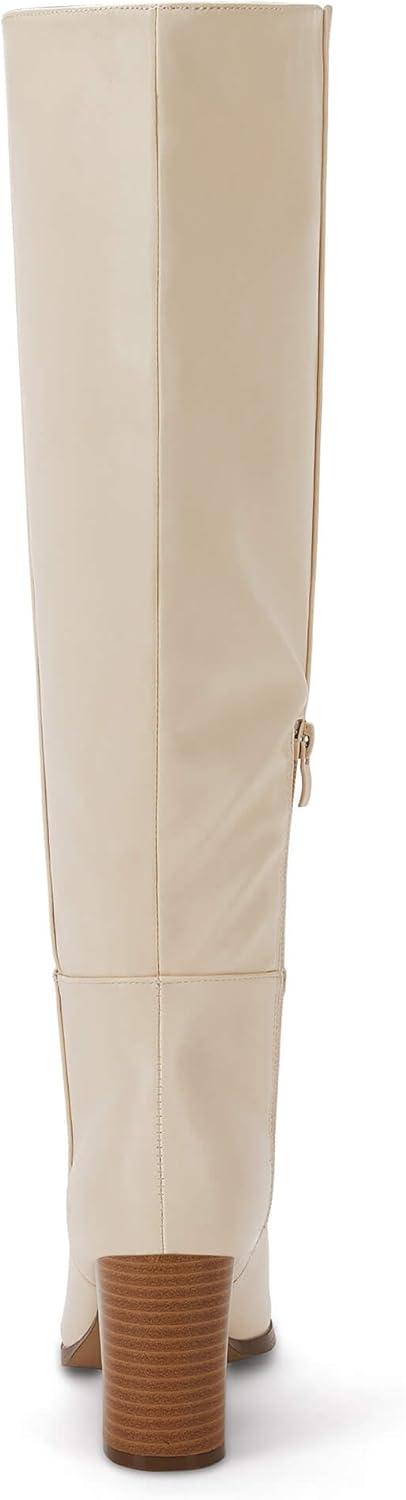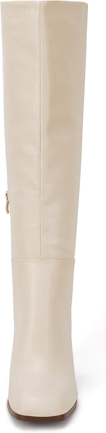 Coutgo Womens Knee High Boots Chunky Block Heels Square Toe Side Zipper Faux Suede Fall Winter Comfort Boot(Nude)