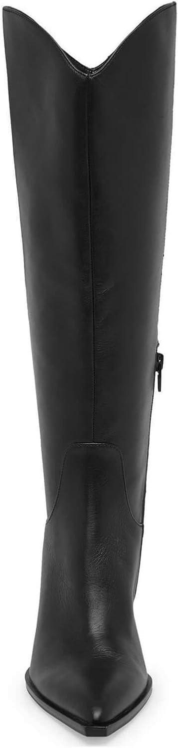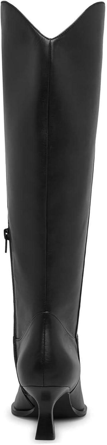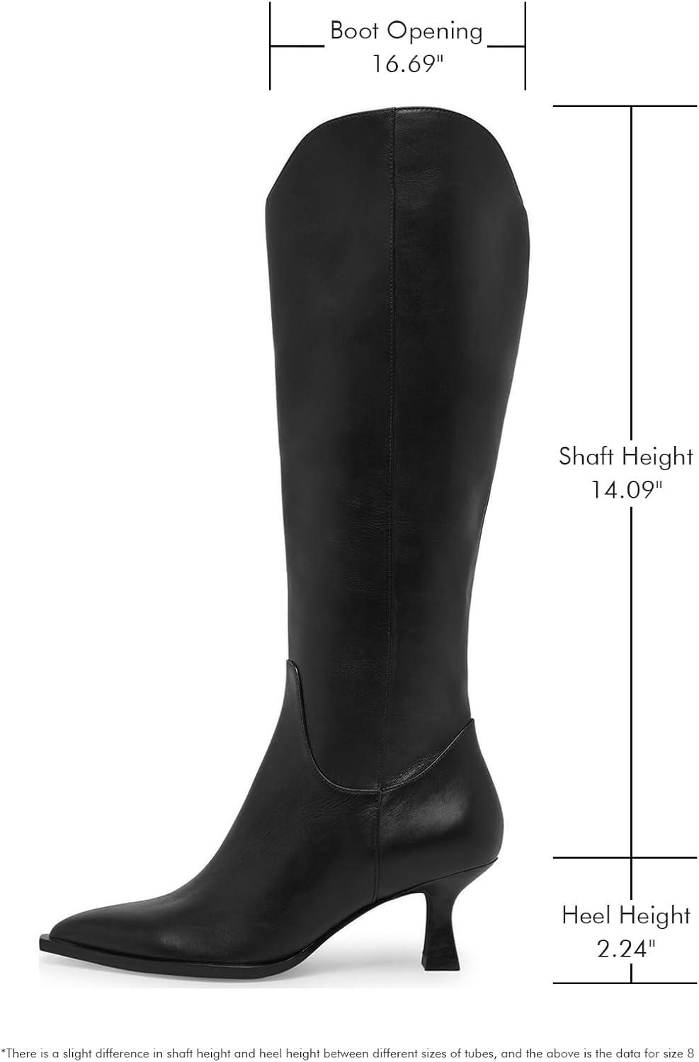 Coutgo Womens Knee High Boots Kitten Heel Pointed Toe Tall Boots Side Zipper Fall Winter Shoes(Cool Black)