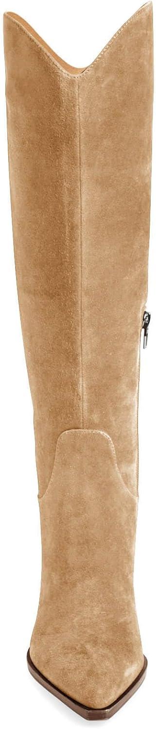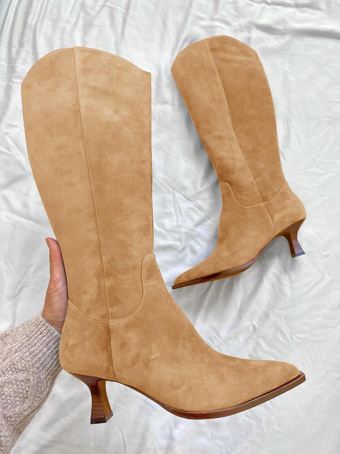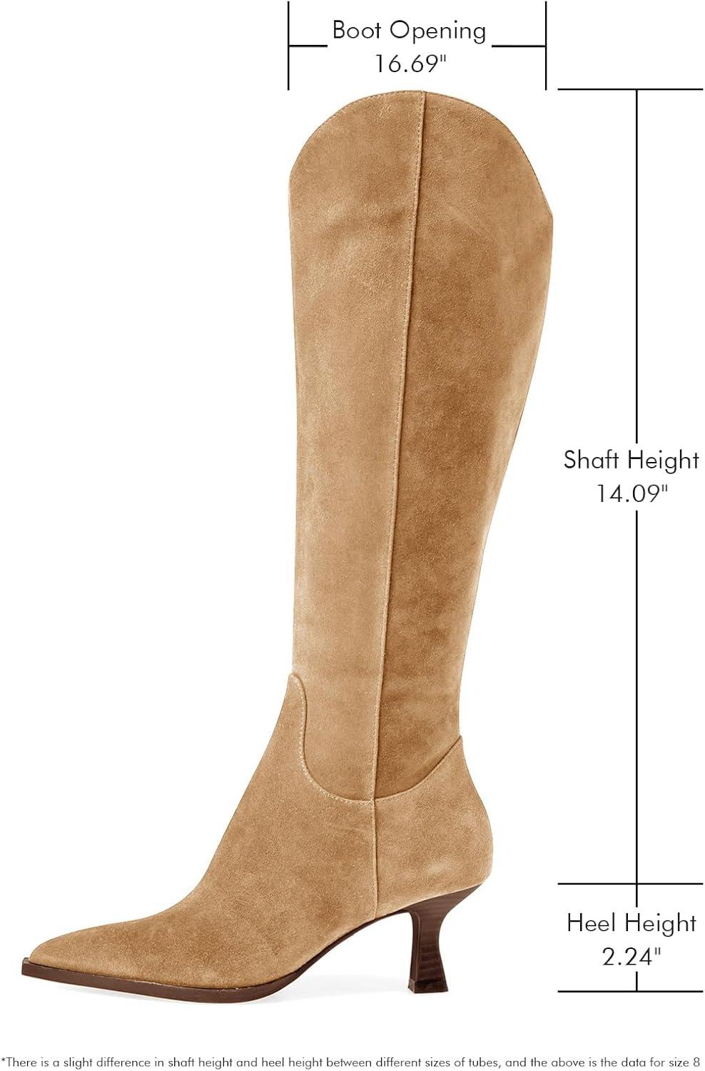 Coutgo Womens Knee High Boots Kitten Heel Pointed Toe Tall Boots Side Zipper Fall Winter Shoes(Khaki)