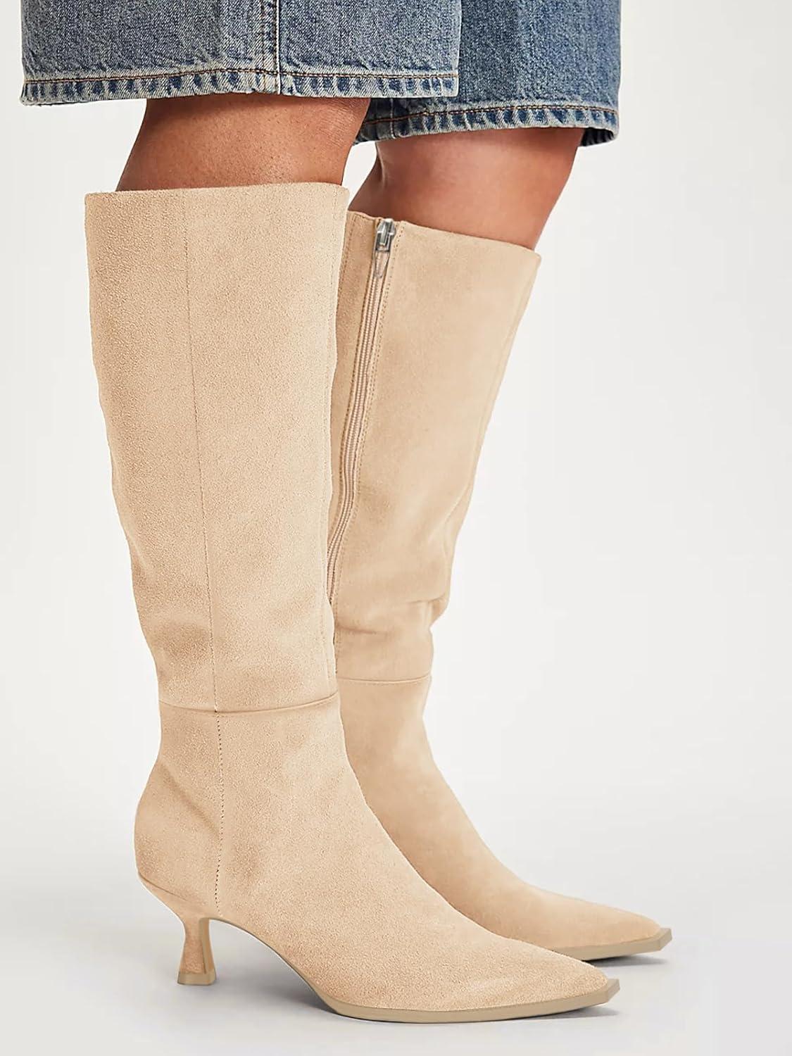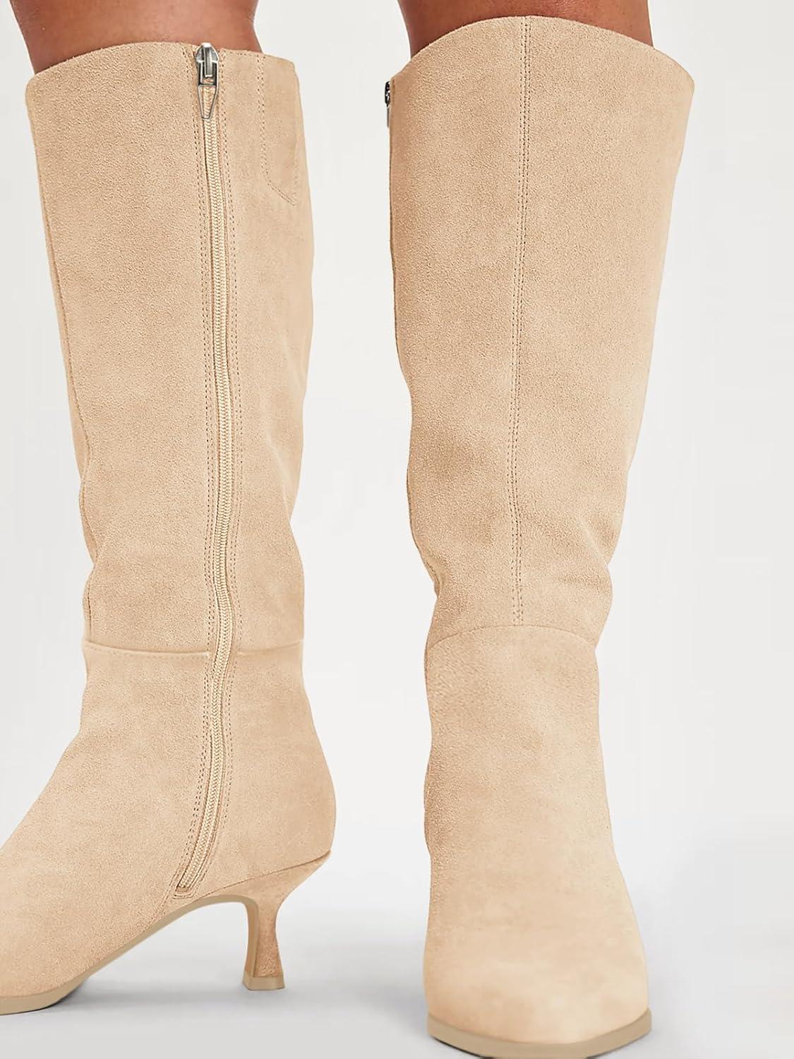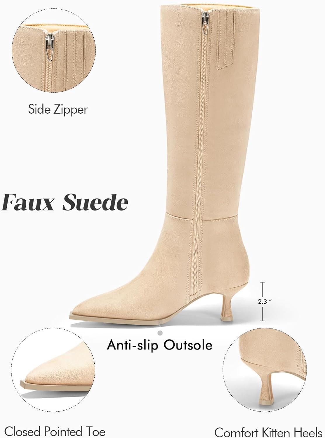 Be the first to review “Coutgo Womens Knee High Boots Kitten Low Heel Pointed Toe Tall Boots Side Zipper Winter Dress Shoes(Nude)”