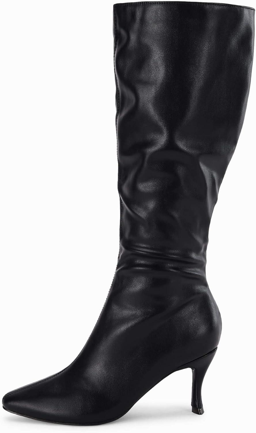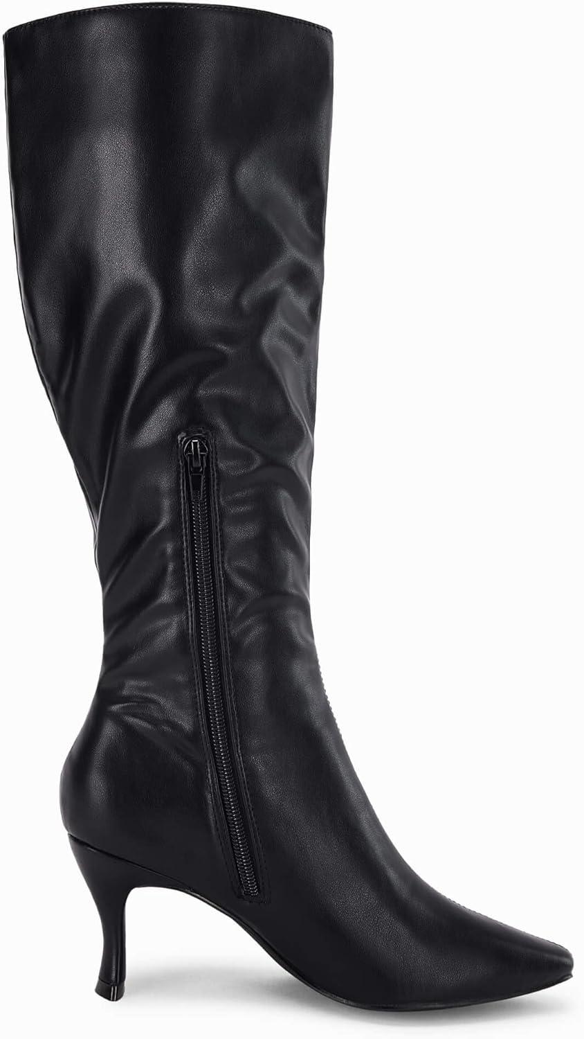 Don’t miss out on our limited-time offer: buy Coutgo Womens Knee High Boots Pointed Toe Kitten Heel Side Zipper Stretchy Vegan Suede Comfort Fall Winter Boot(Black), get a free {accessory}!