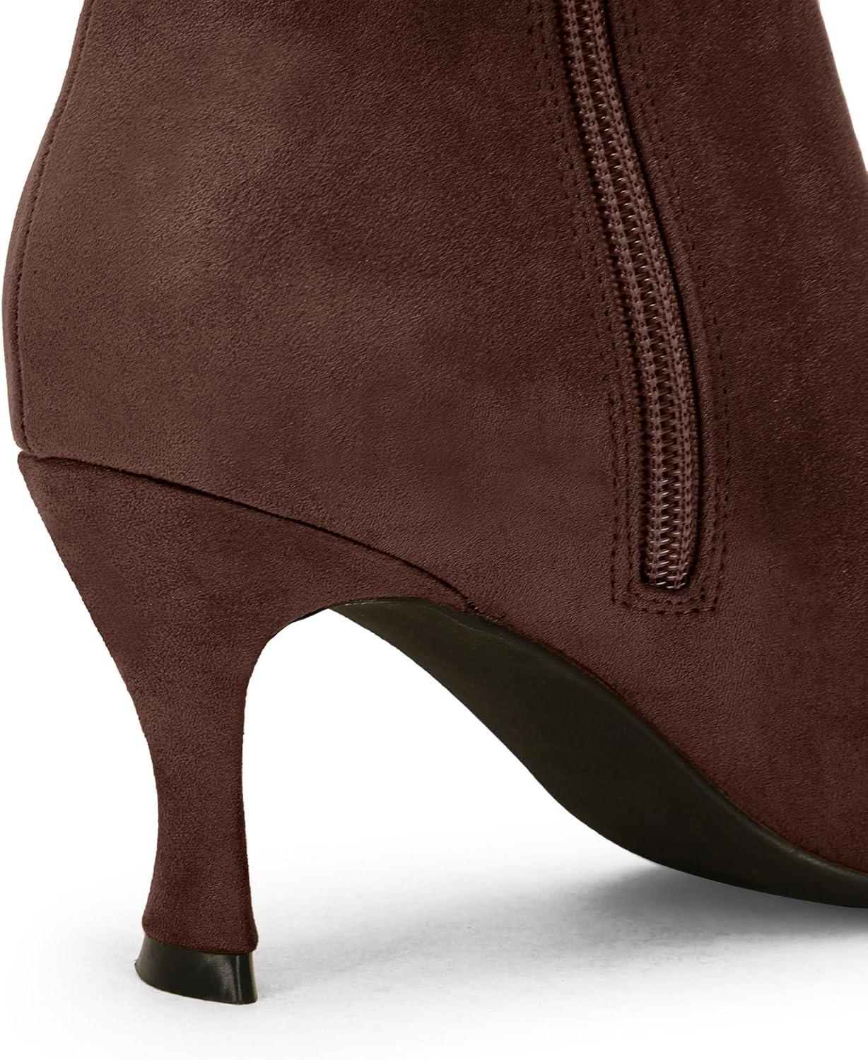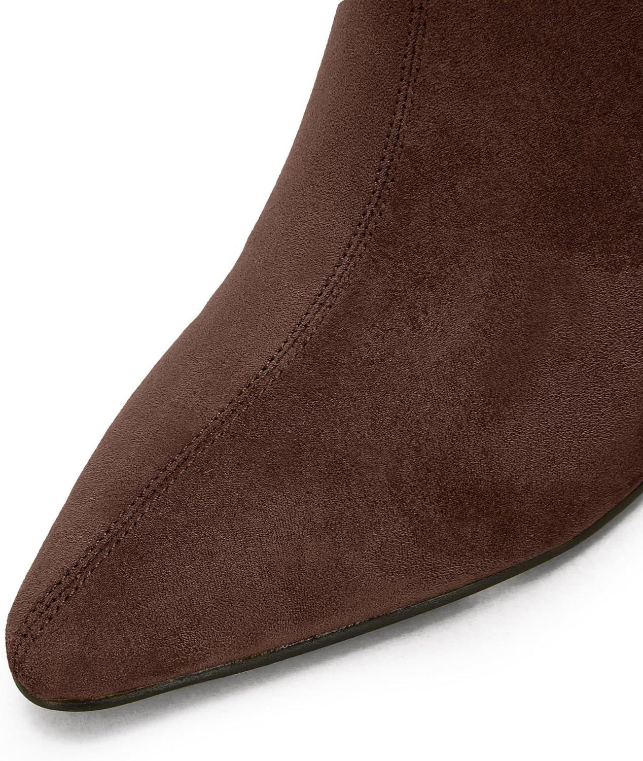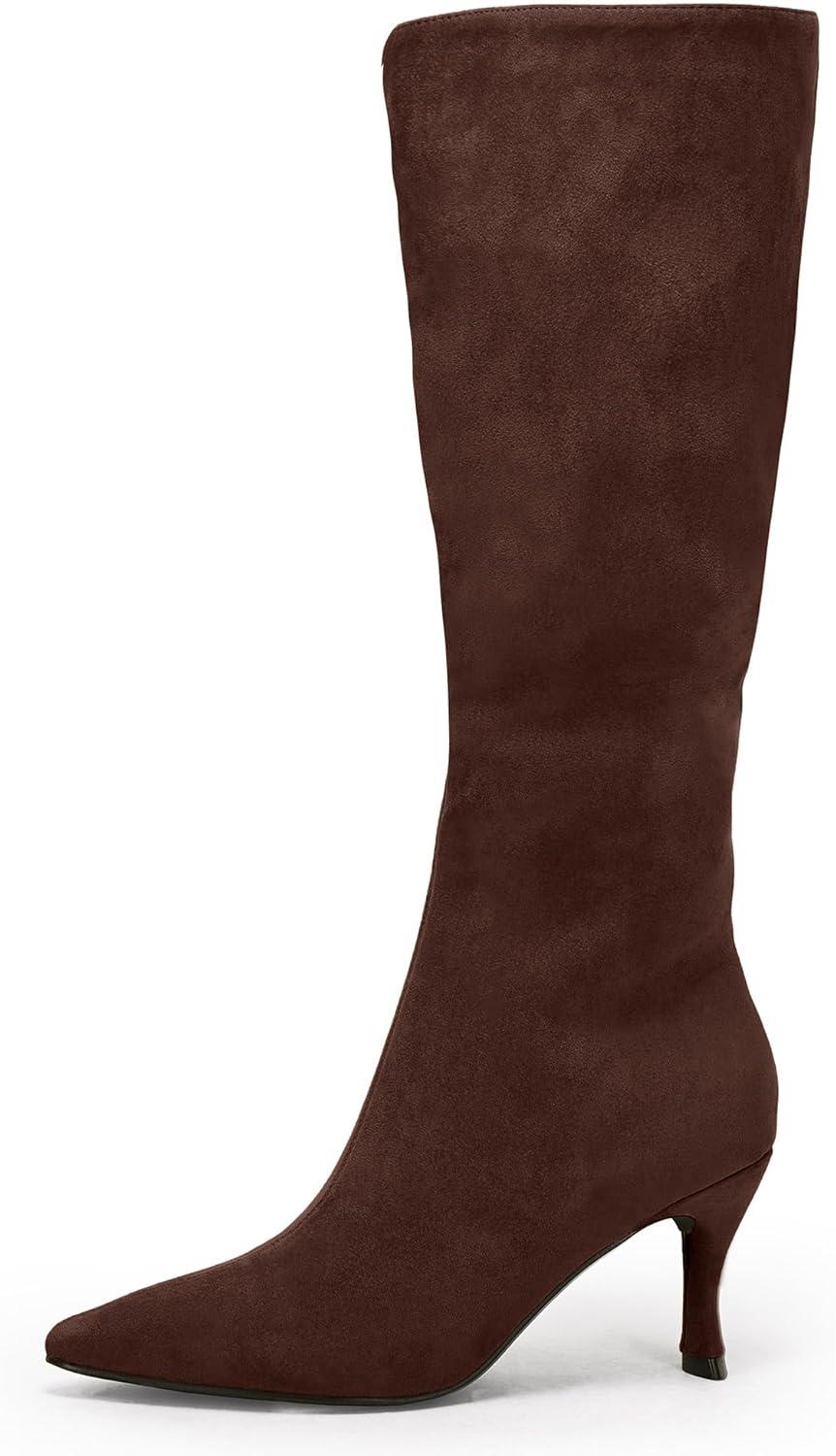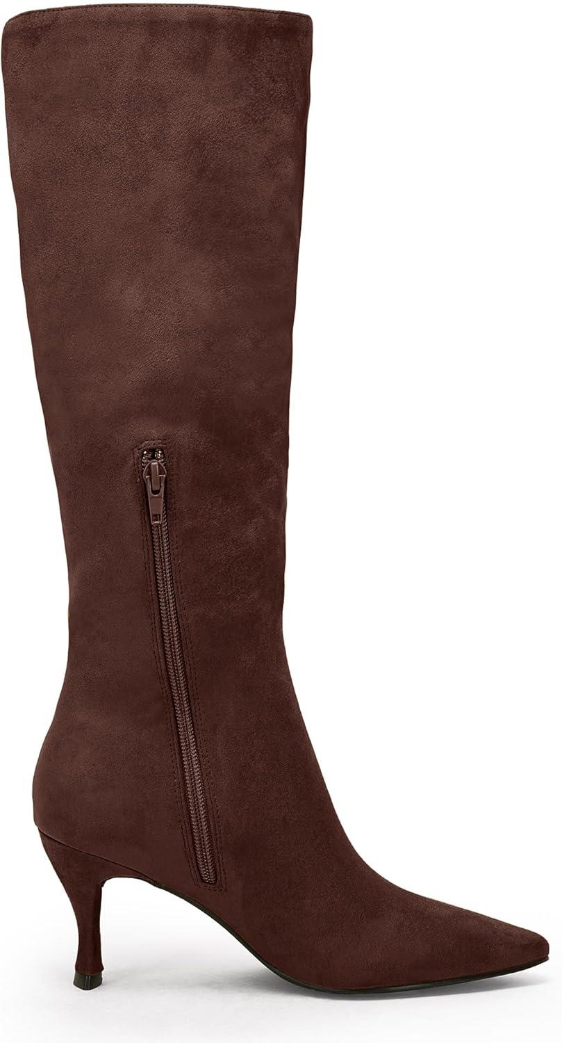 Coutgo Womens Knee High Boots Pointed Toe Kitten Heel Side Zipper Stretchy Vegan Suede Comfort Fall Winter Boot(Chocolate)