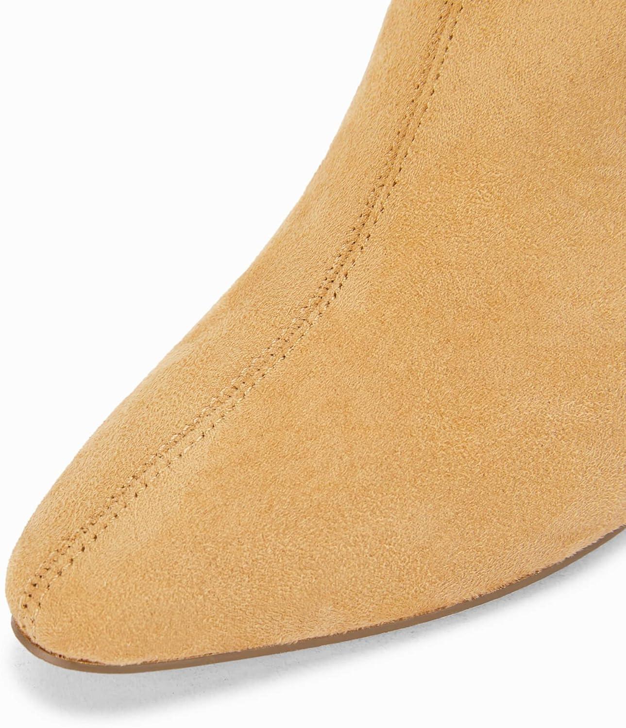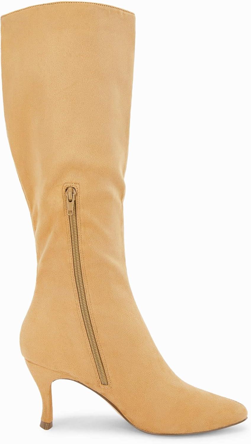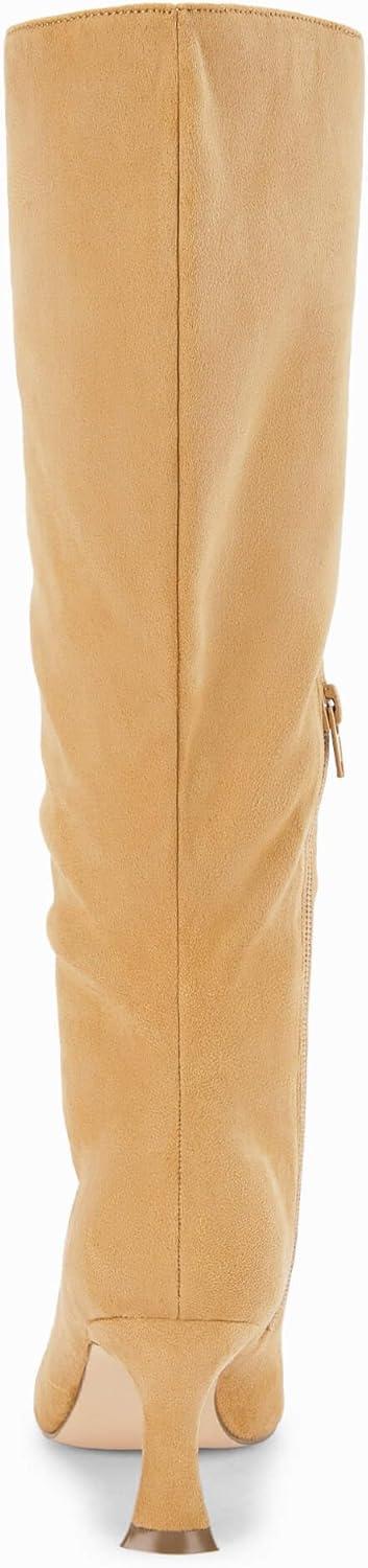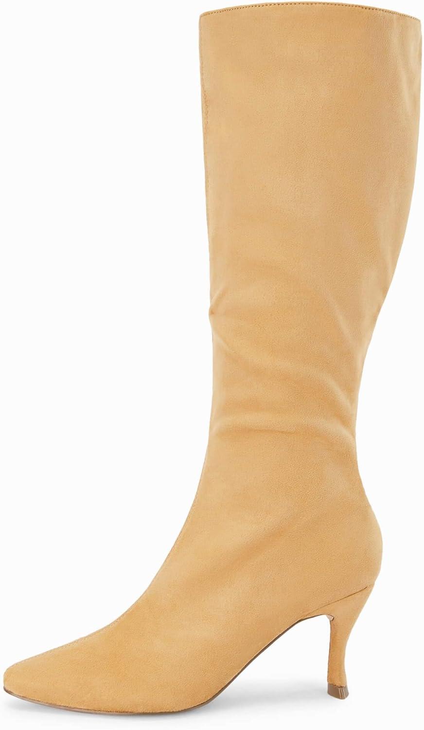 Coutgo Womens Knee High Boots Pointed Toe Kitten Heel Side Zipper Stretchy Vegan Suede Comfort Fall Winter Boot(Light Coffee)