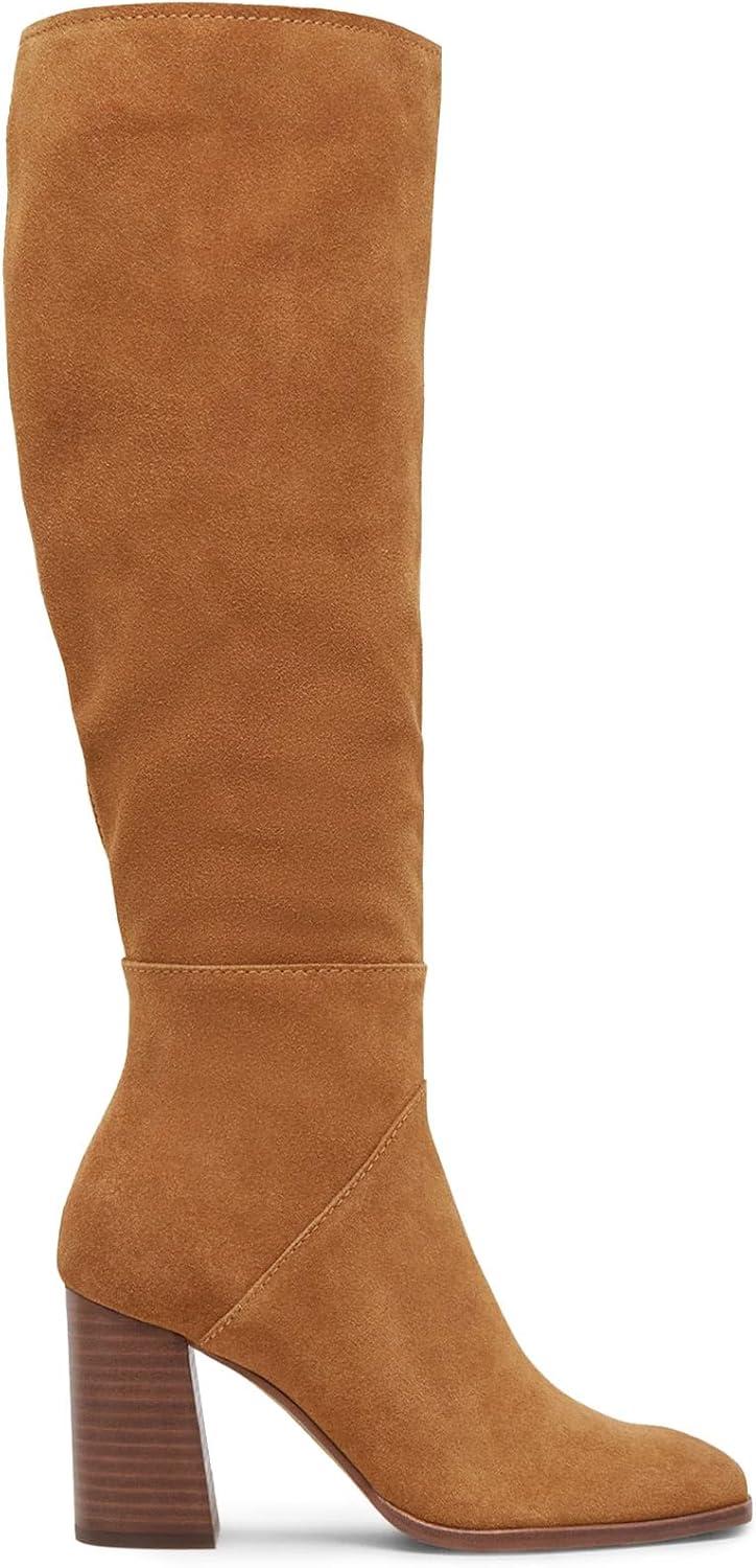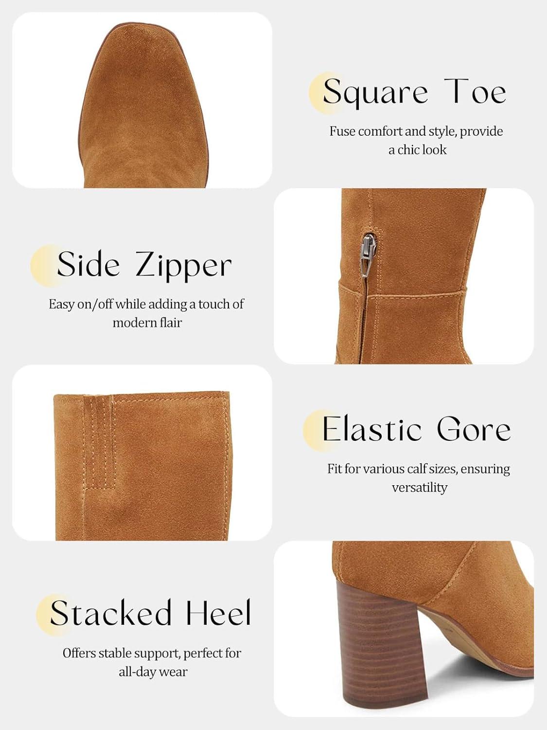Coutgo Womens Knee High Boots Square Toe Chunky Block Heel Side Zipper Faux Suede Long Boots Fall Winter Shoes(Brown)
