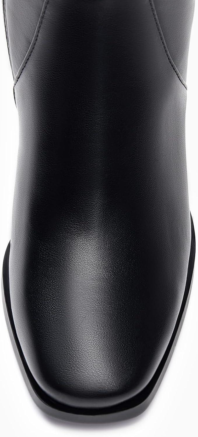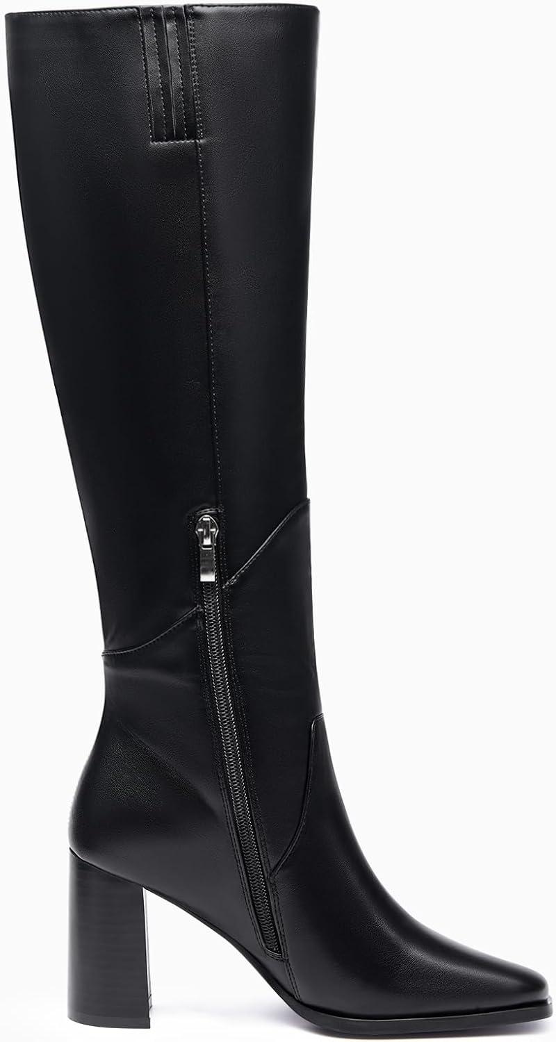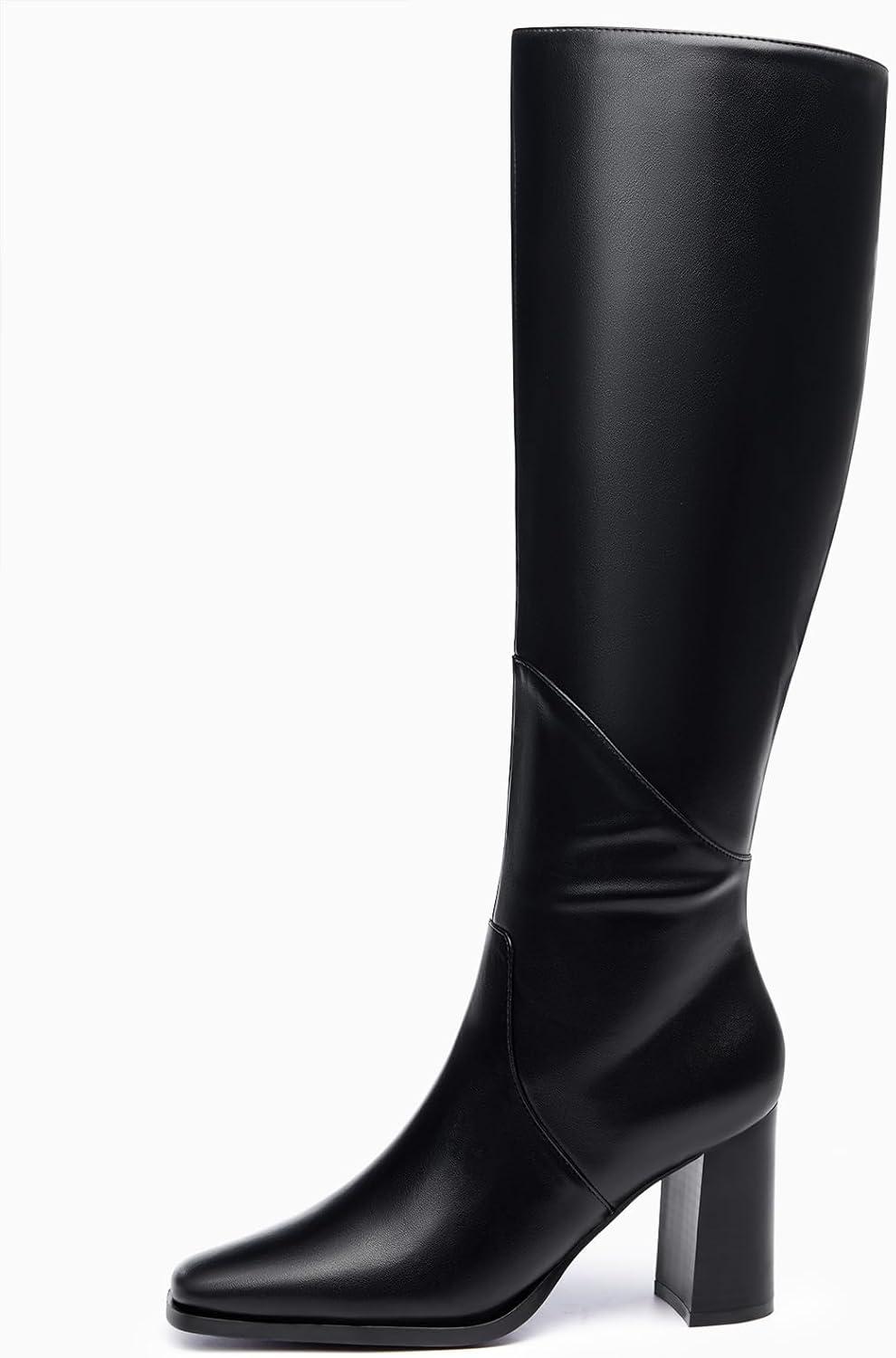 Coutgo Womens Knee High Boots Square Toe Chunky Block Heel Side Zipper Faux Suede Long Boots Fall Winter Shoes(Cool Black)