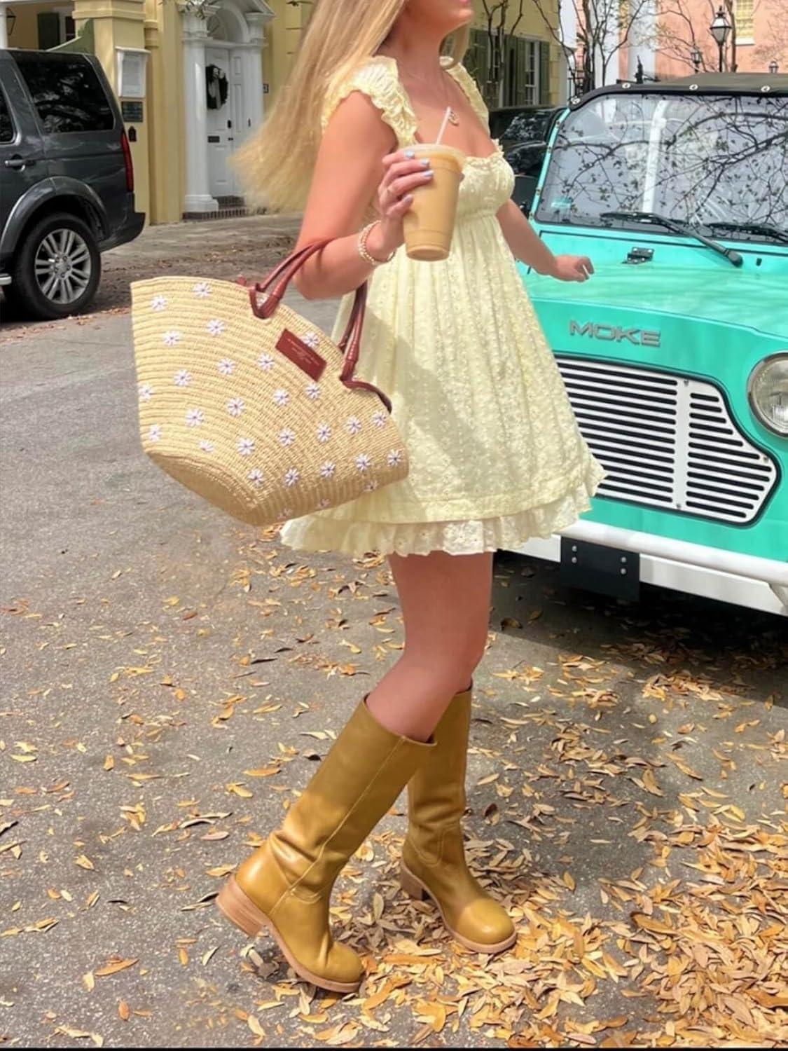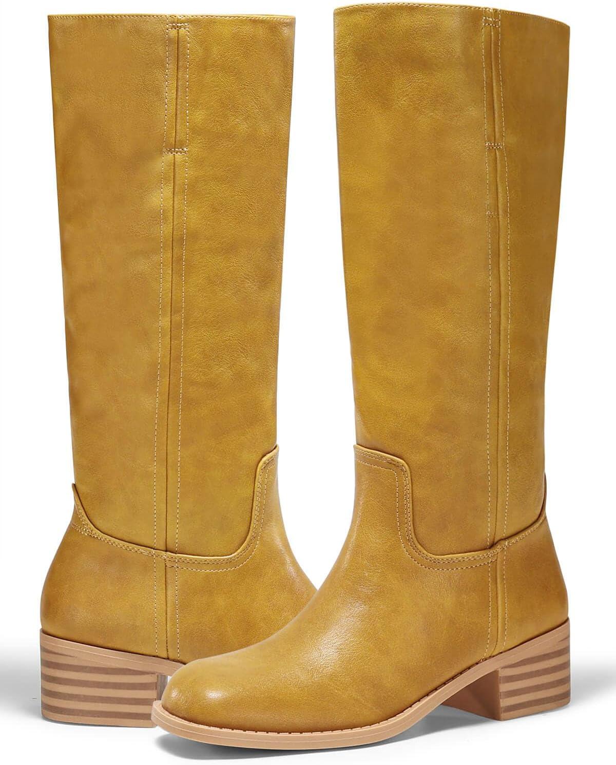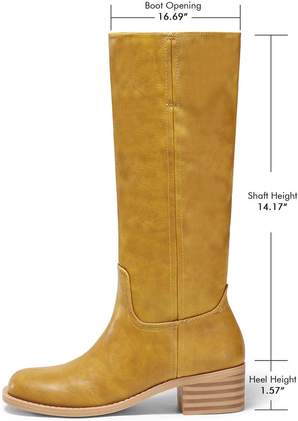 Coutgo Women’s Knee High Boots Square Toe Chunky Block Heel Tall Boots Comfortable Low Heel Shoes(Banana Yellow)