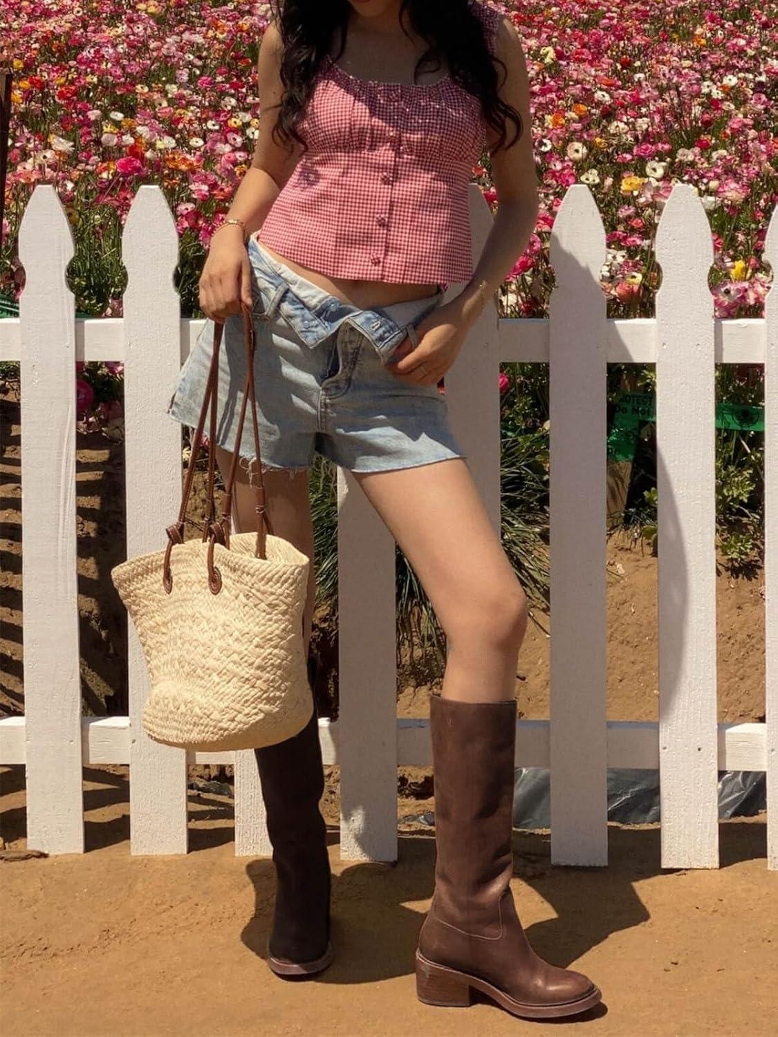 Coutgo Women’s Knee High Boots Square Toe Chunky Block Heel Tall Boots Comfortable Low Heel Shoes(Dark Brown)