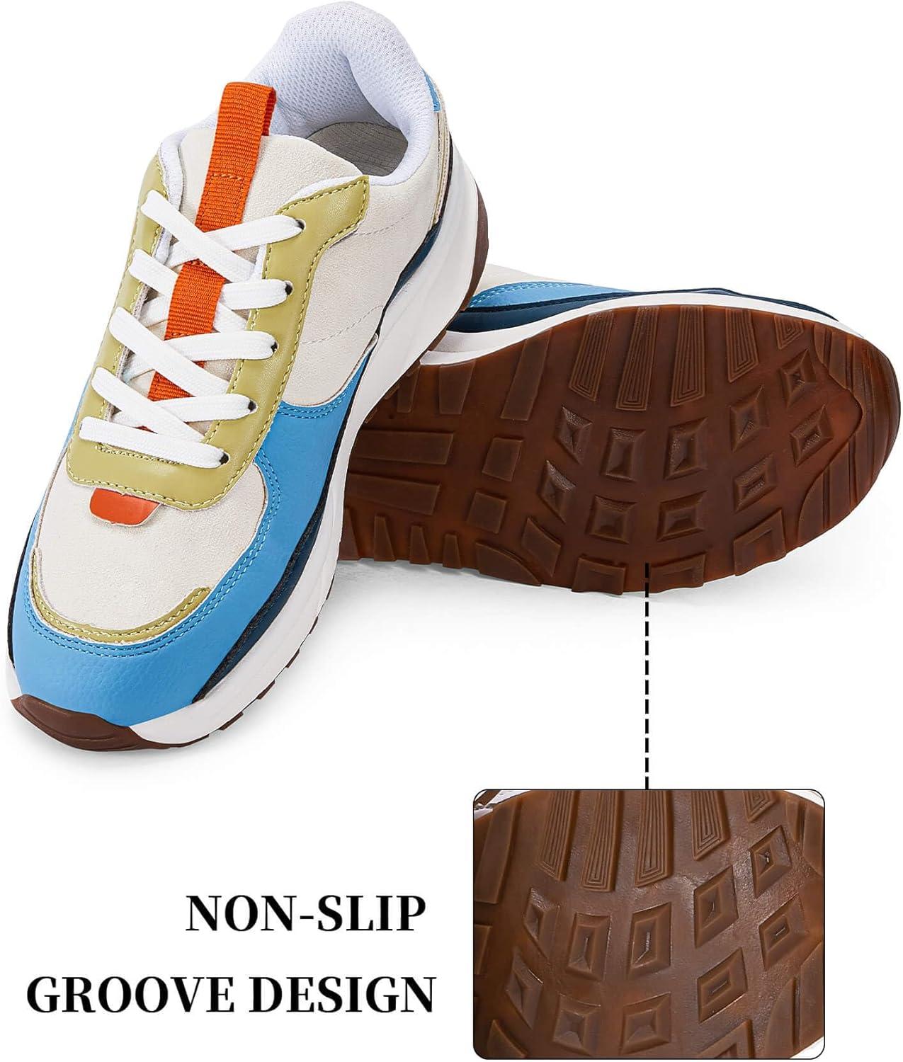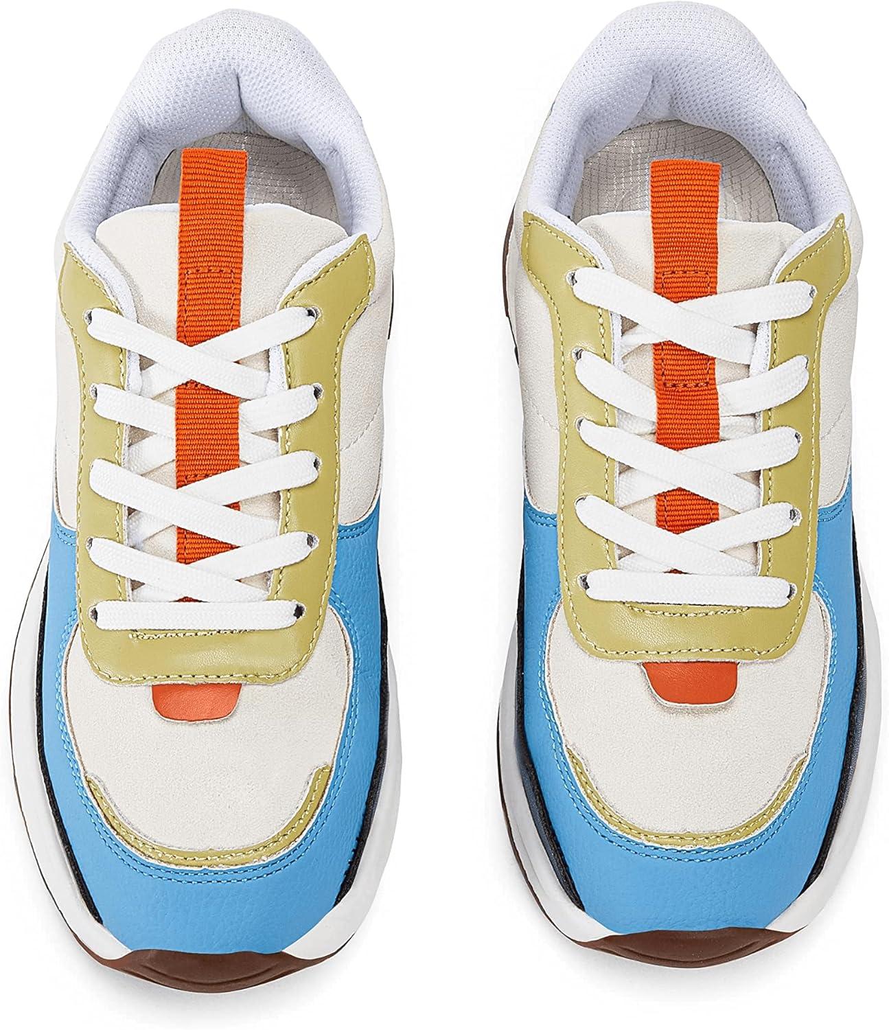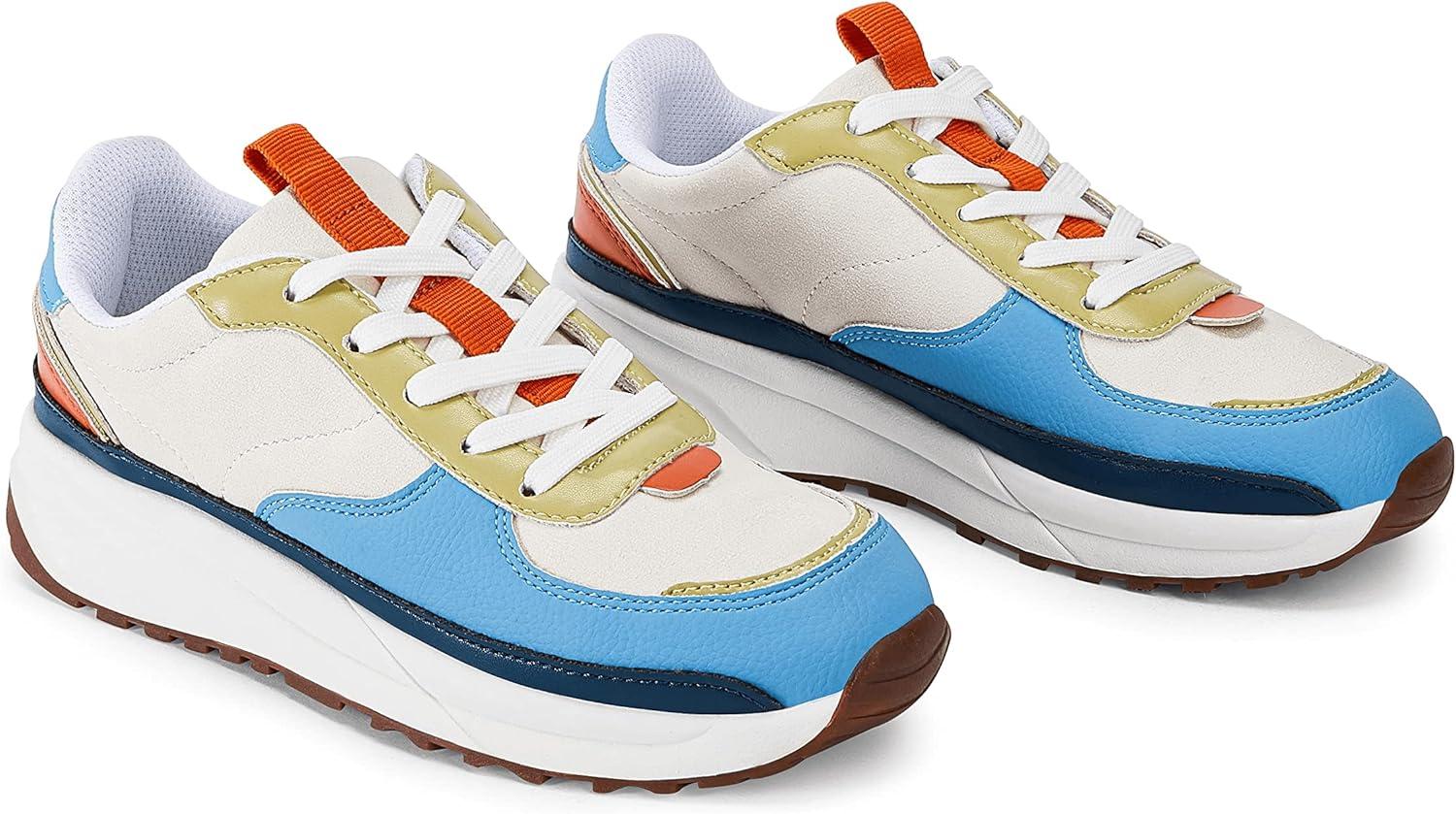 Coutgo Womens Lace Up Platform Sneakers Trendy Athletic Tennis Faux Leather Suede Neutral Comfortable Walking Shoes(Blue)