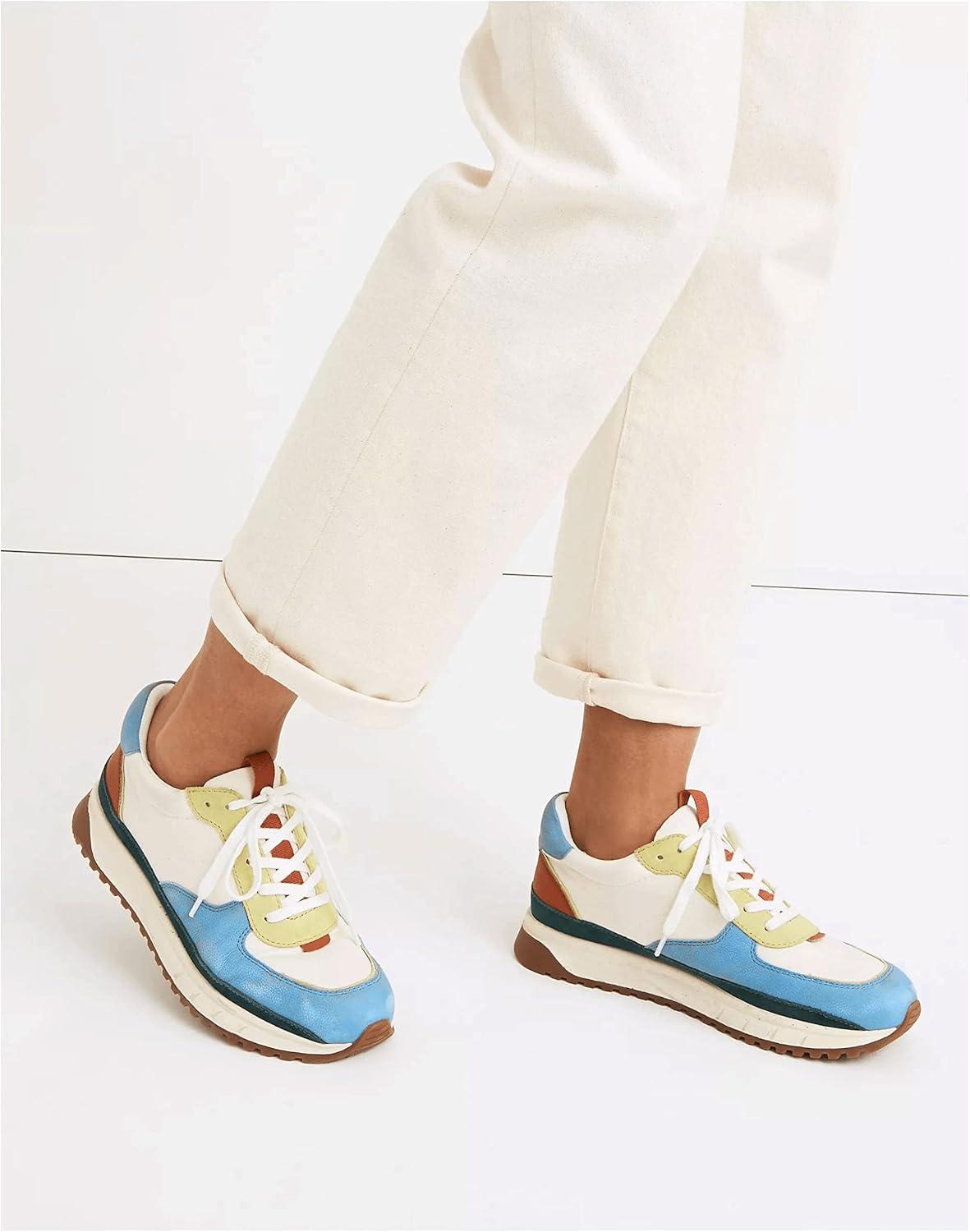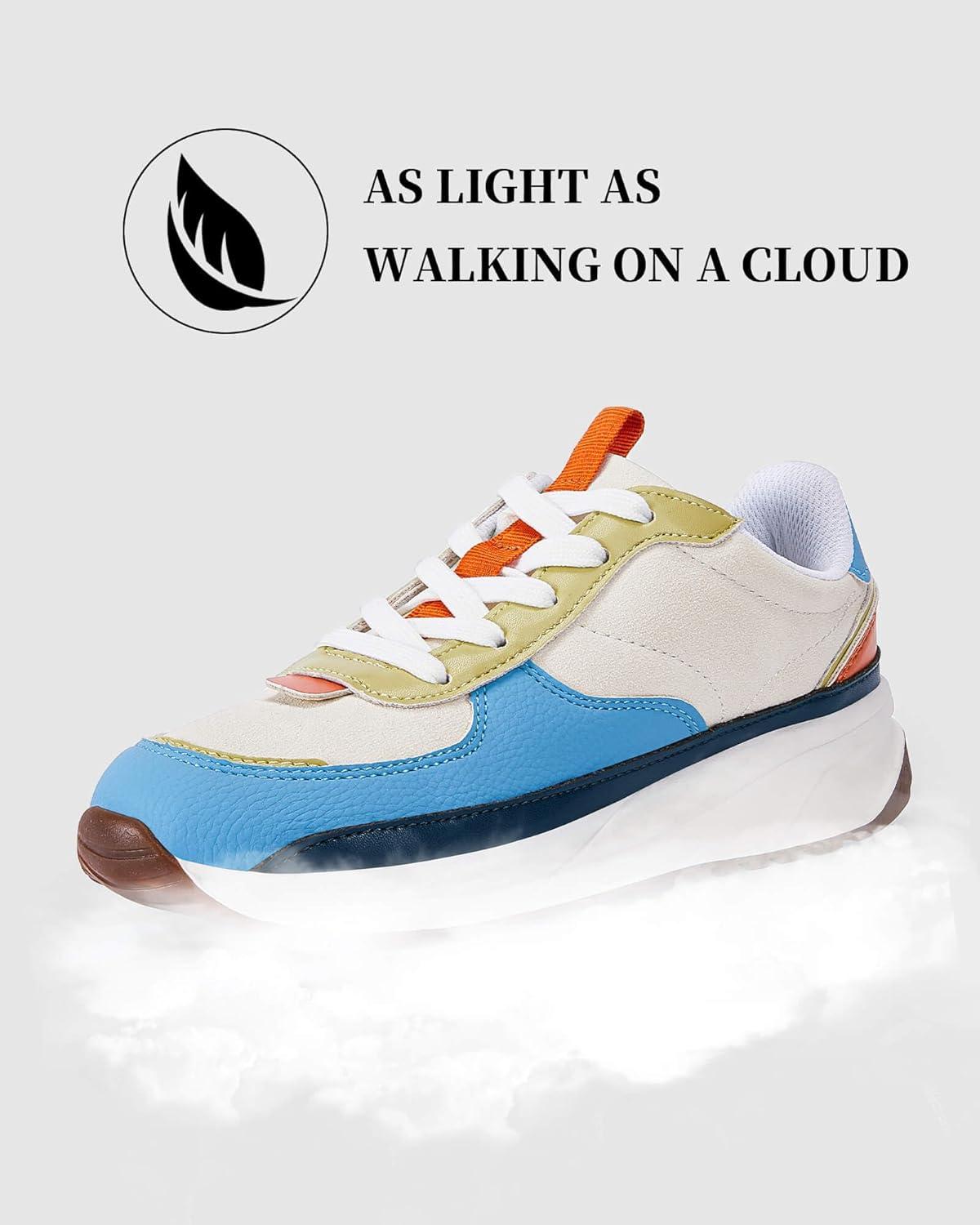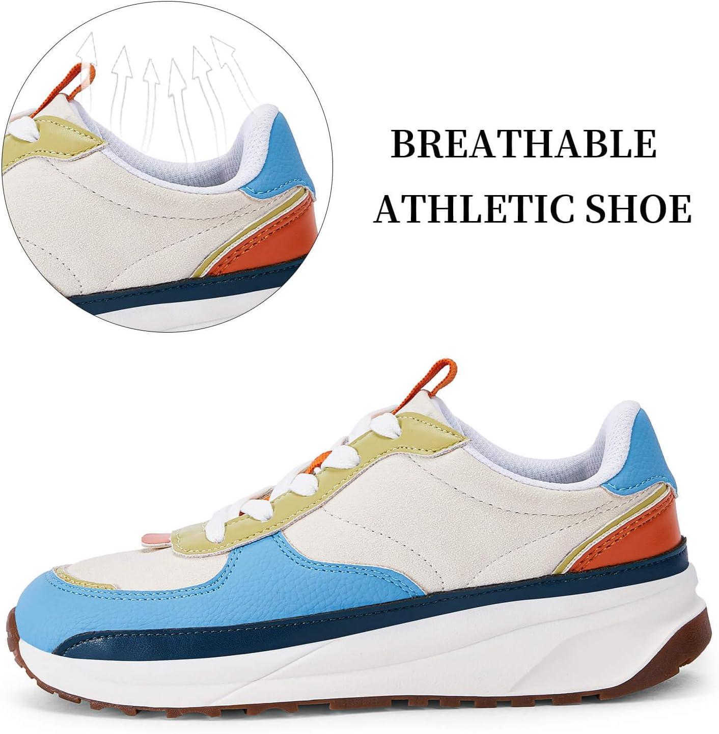 Coutgo Womens Lace Up Platform Sneakers Trendy Athletic Tennis Faux Leather Suede Neutral Comfortable Walking Shoes(Blue)