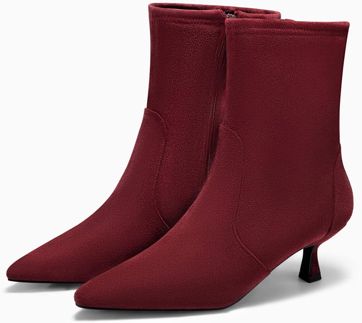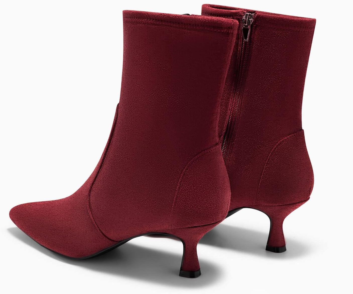 Don’t wait, get up to 50% off on Coutgo Womens Low Kitten Heel Ankle Boots Pointed Toe Booties Side Zipper Fall Shoes(Burgundy) during our end-of-season sale event.