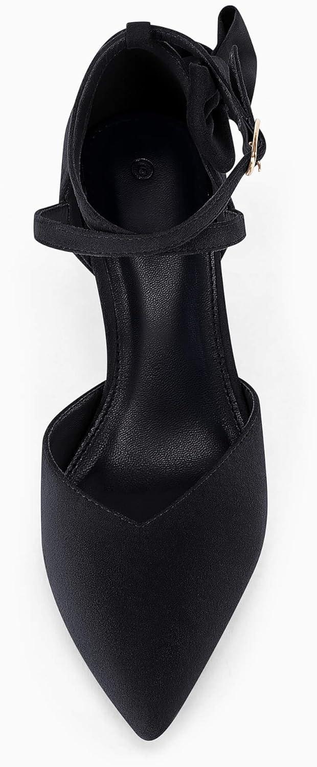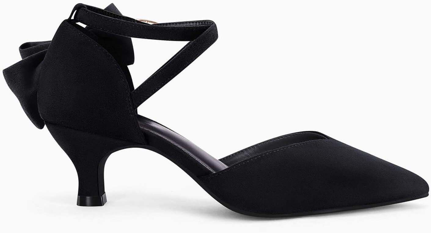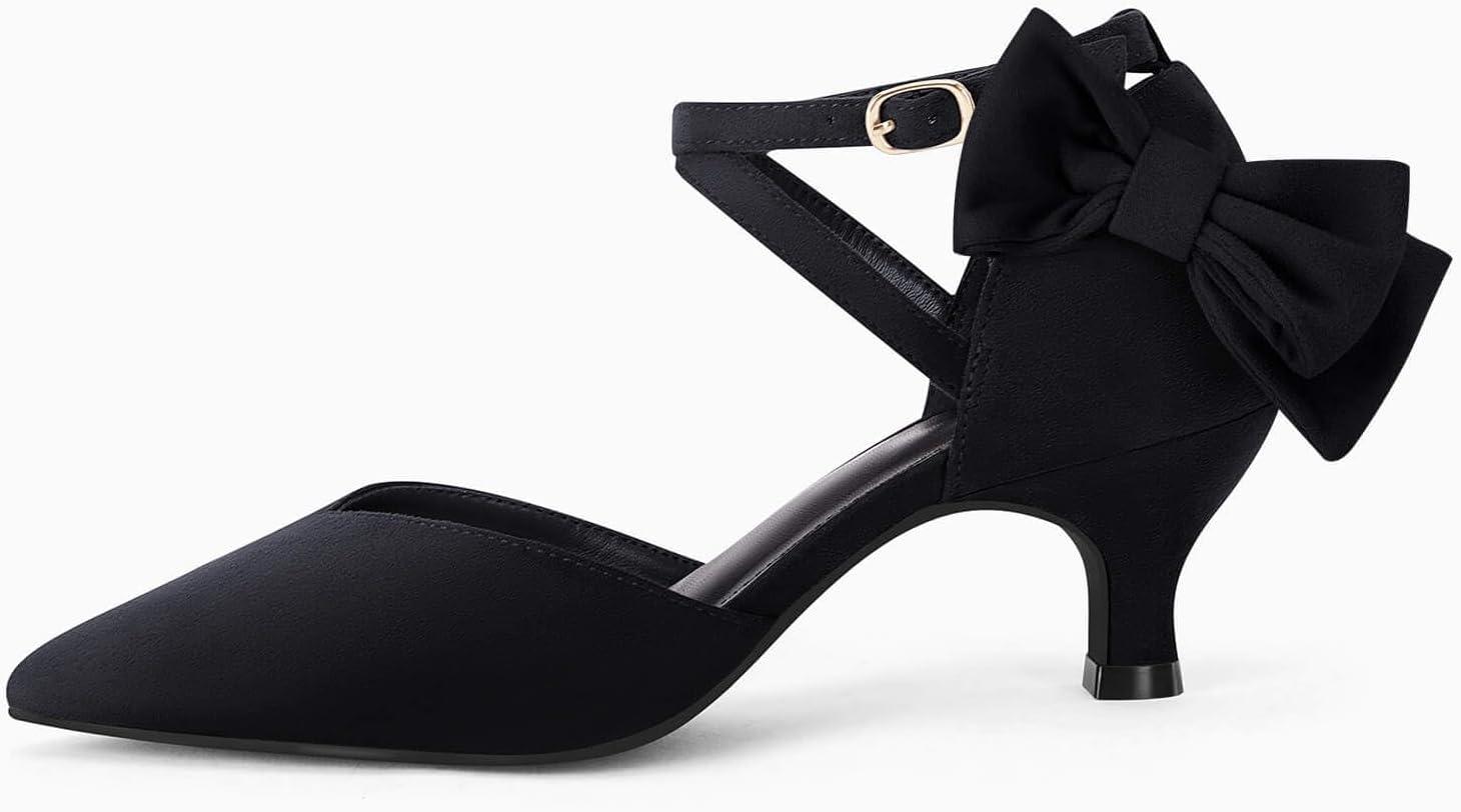 Coutgo Womens Low Kitten Heel Bow Heels Dress Shoes Closed Pointed Toe Ankle Strap Elegant Wedding Party Pumps(Black)