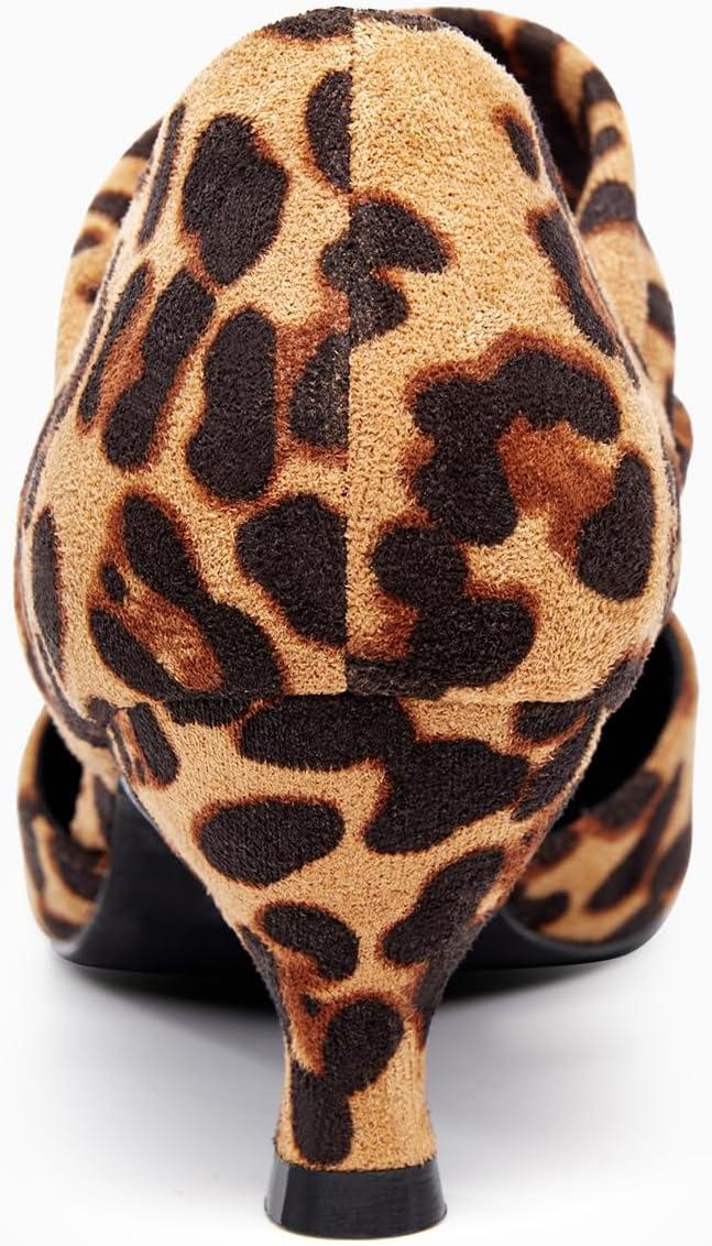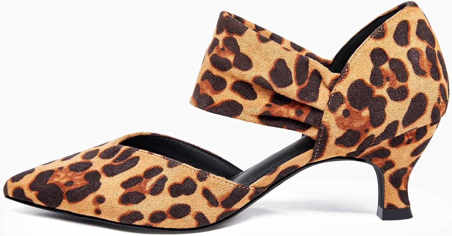 Coutgo Womens Low Kitten Heel Dress Shoes Pointed Toe Slip on Ankle Strap Cutout Elegant Party Wedding Pumps(Leopard)