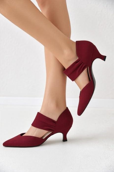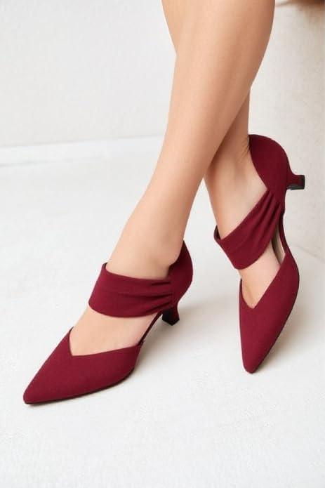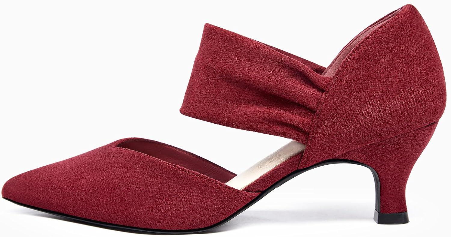 Get the Coutgo Womens Low Kitten Heel Dress Shoes Pointed Toe Slip on Ankle Strap Cutout Elegant Party Wedding Pumps(Wine Red) you want at a discounted price during our markdown sale event.