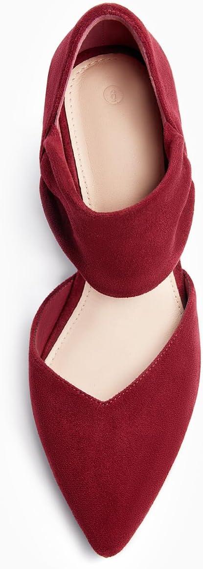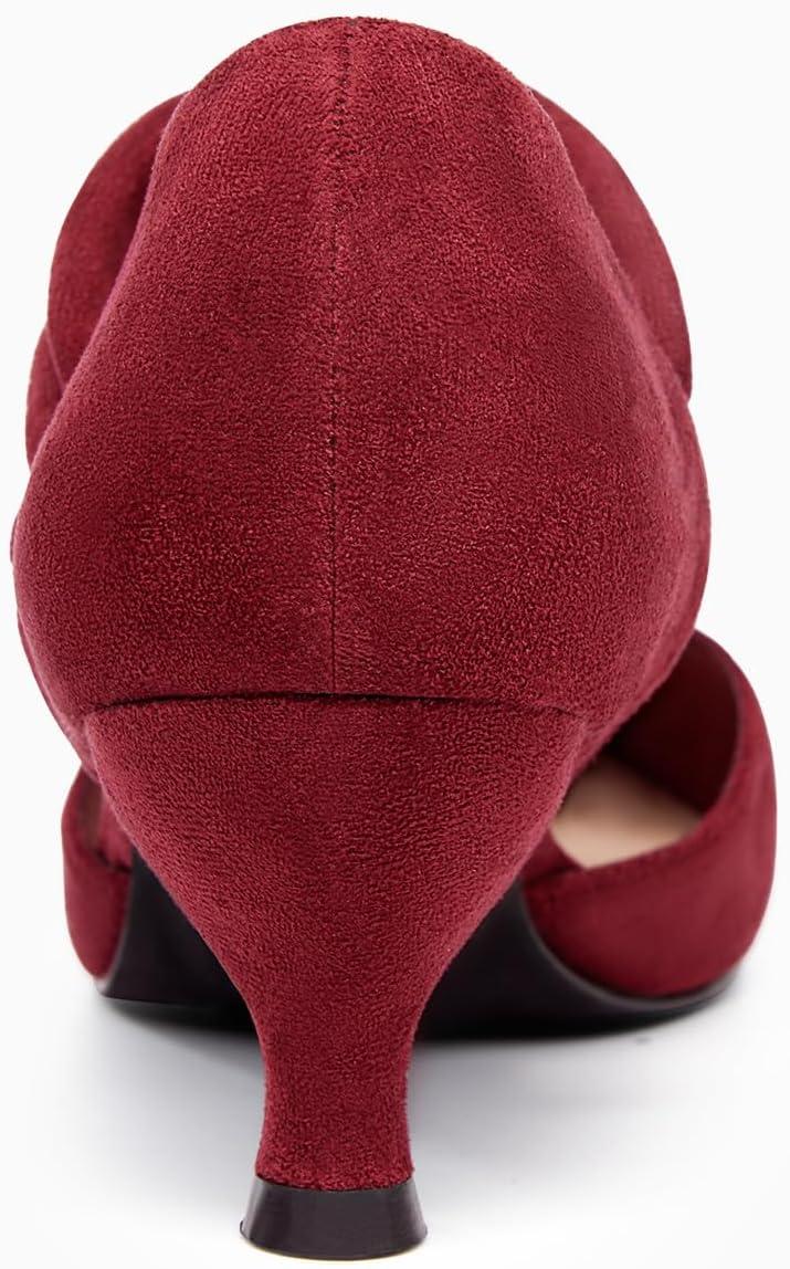 Coutgo Womens Low Kitten Heel Dress Shoes Pointed Toe Slip on Ankle Strap Cutout Elegant Party Wedding Pumps(Wine Red)