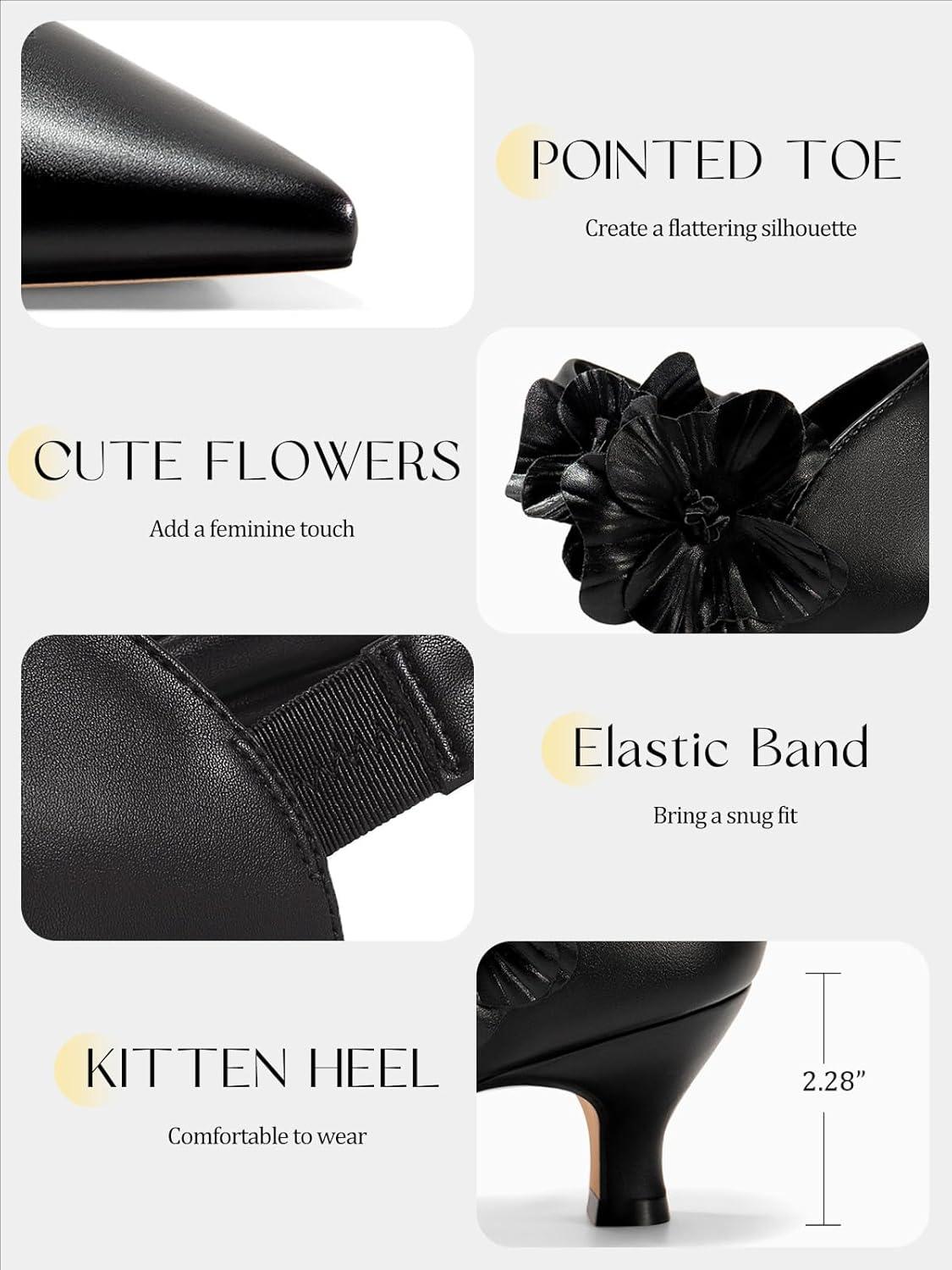 Our clearance section features the best deals on Coutgo Womens Low Kitten Heels Dressy Shoes Comfortable Closed Toe Flower Slip on Formal Party Dance Heeled Pumps(Black) and accessories. Check it out now!