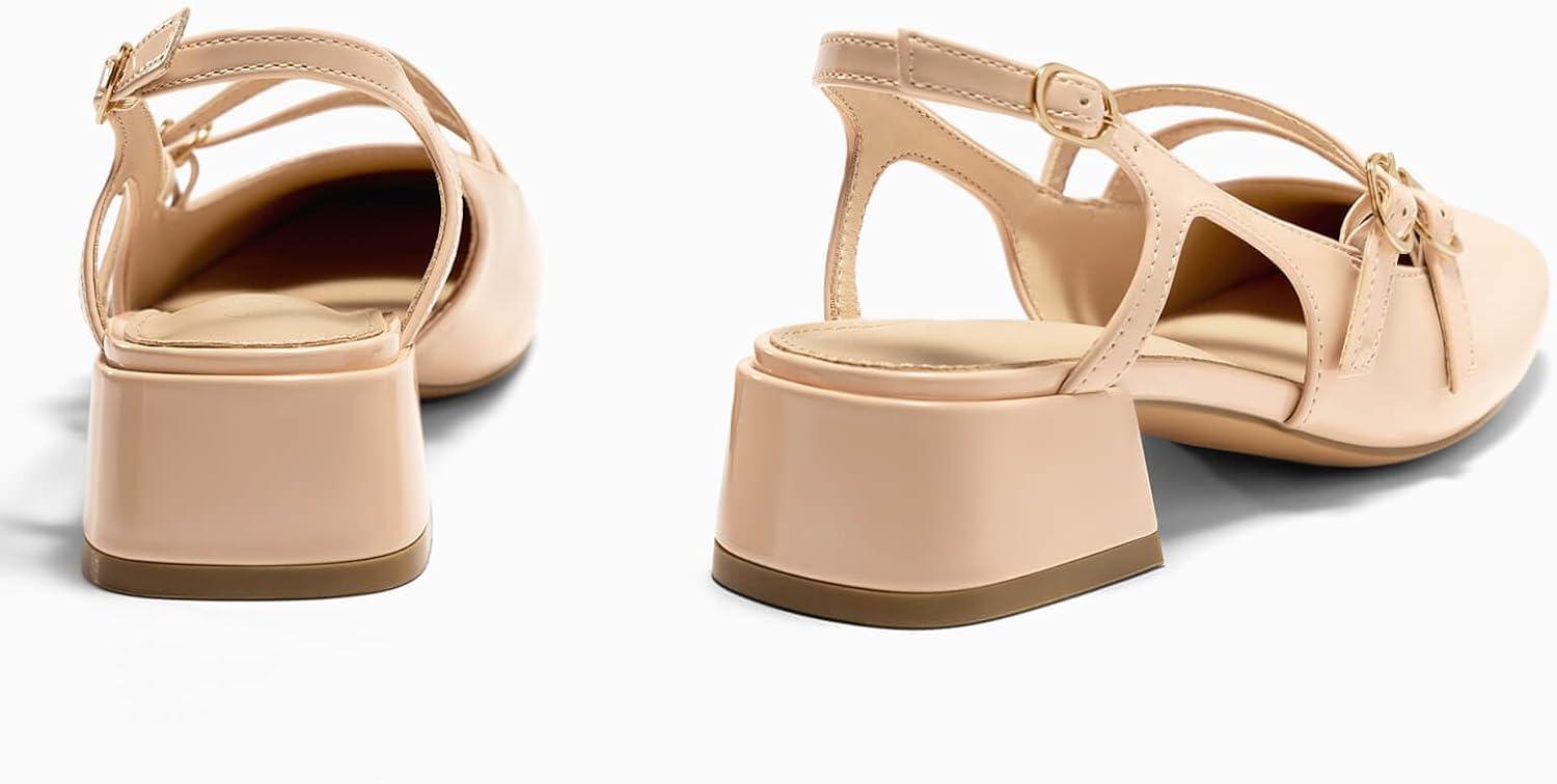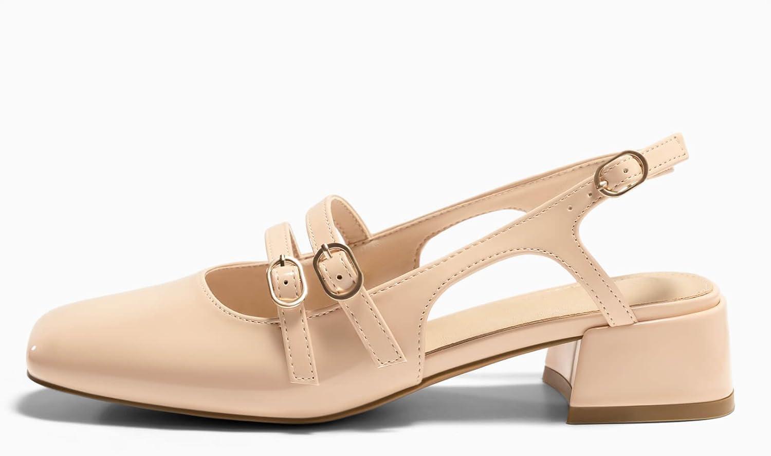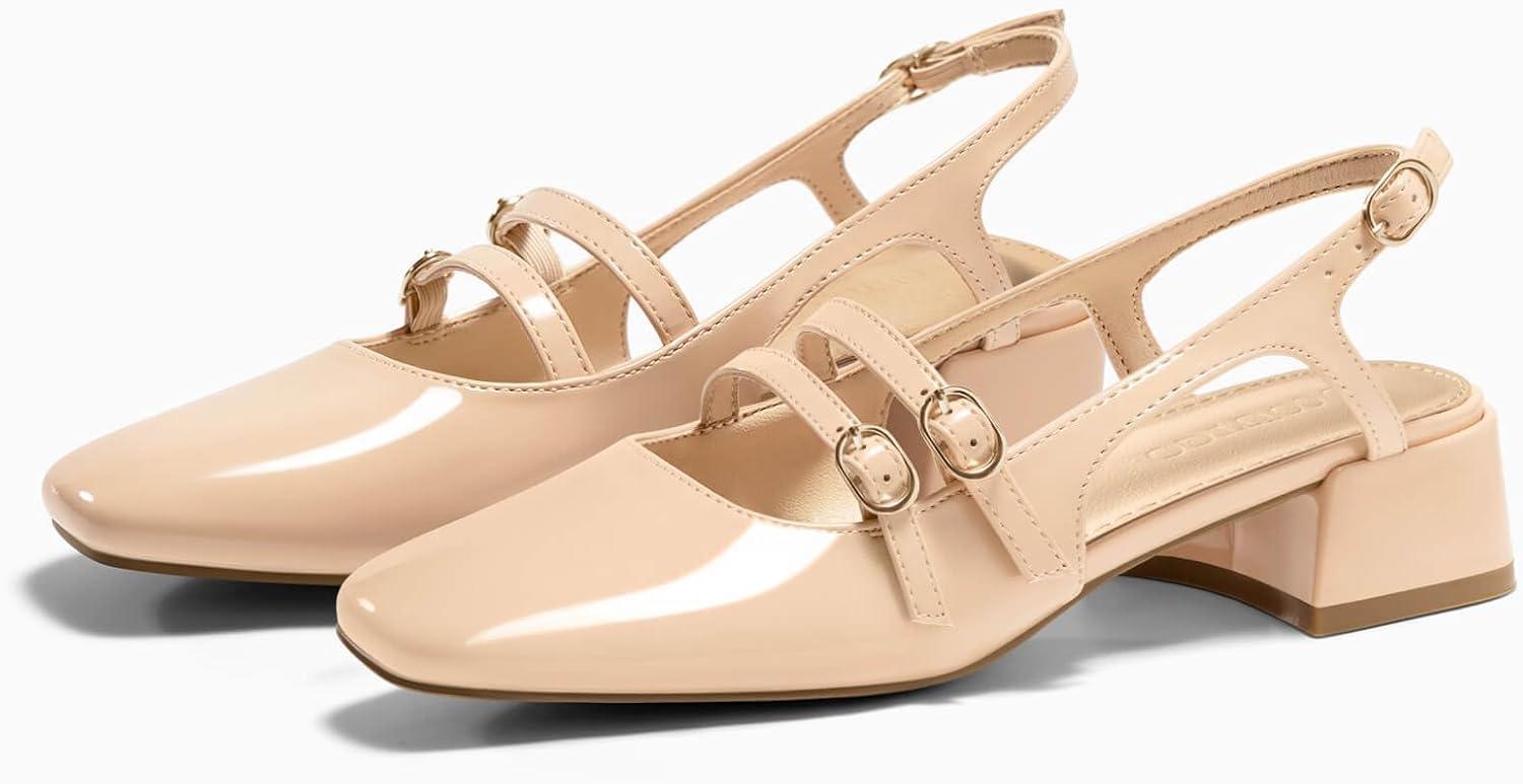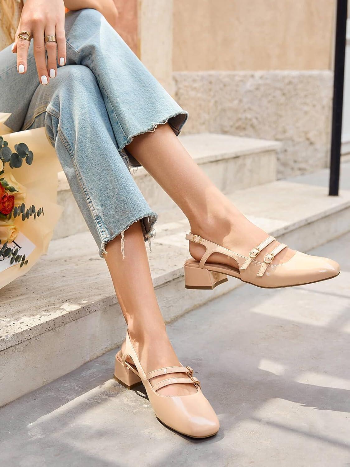 Coutgo Womens Mary Jane Chunky Low Heels Slingback Pumps Closed Square Toe Wedding Dress Shoes(Apricot)