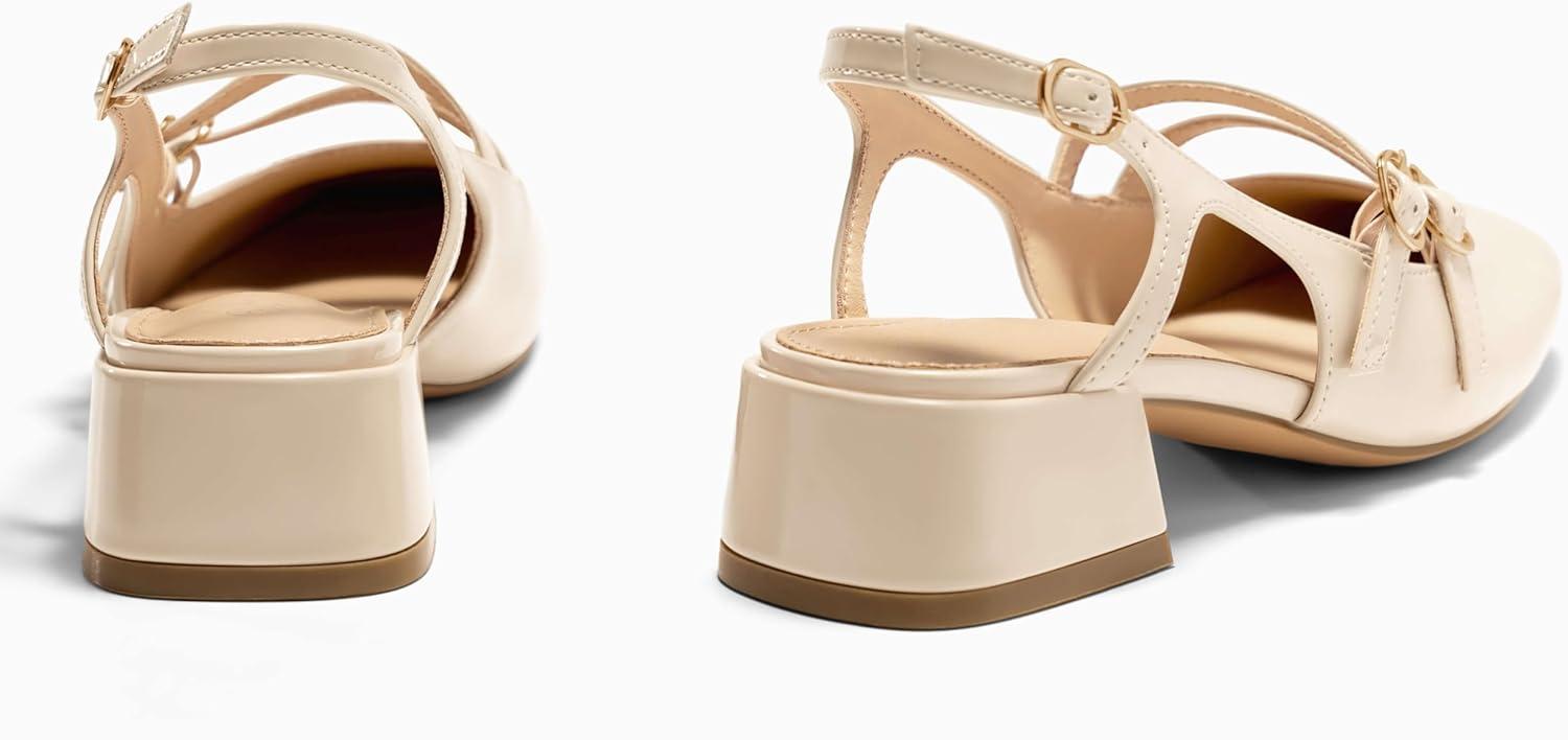 Coutgo Womens Mary Jane Chunky Low Heels Slingback Pumps Closed Square Toe Wedding Dress Shoes(Beige)