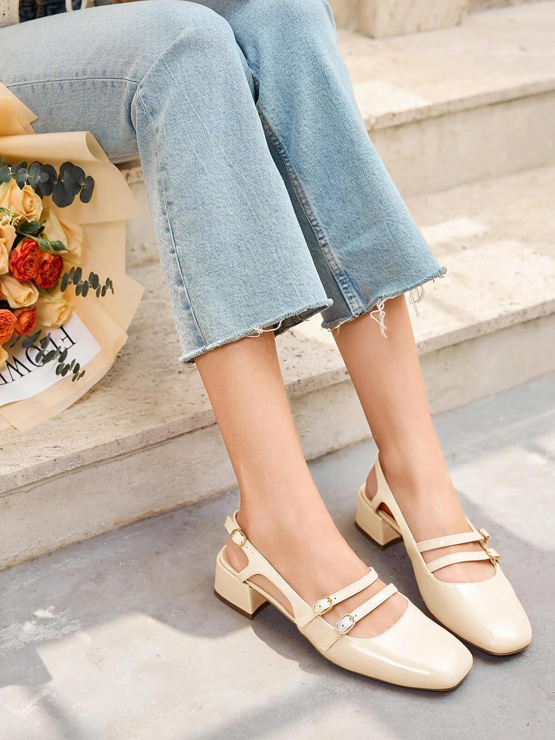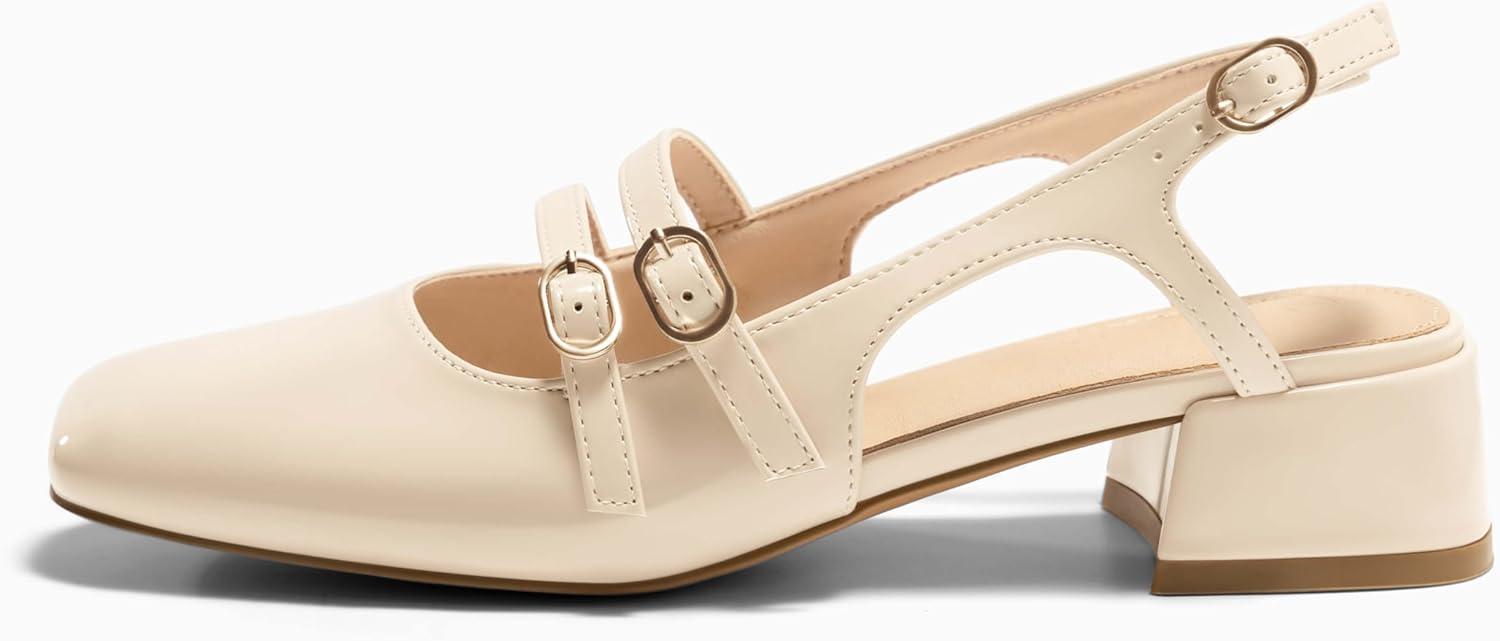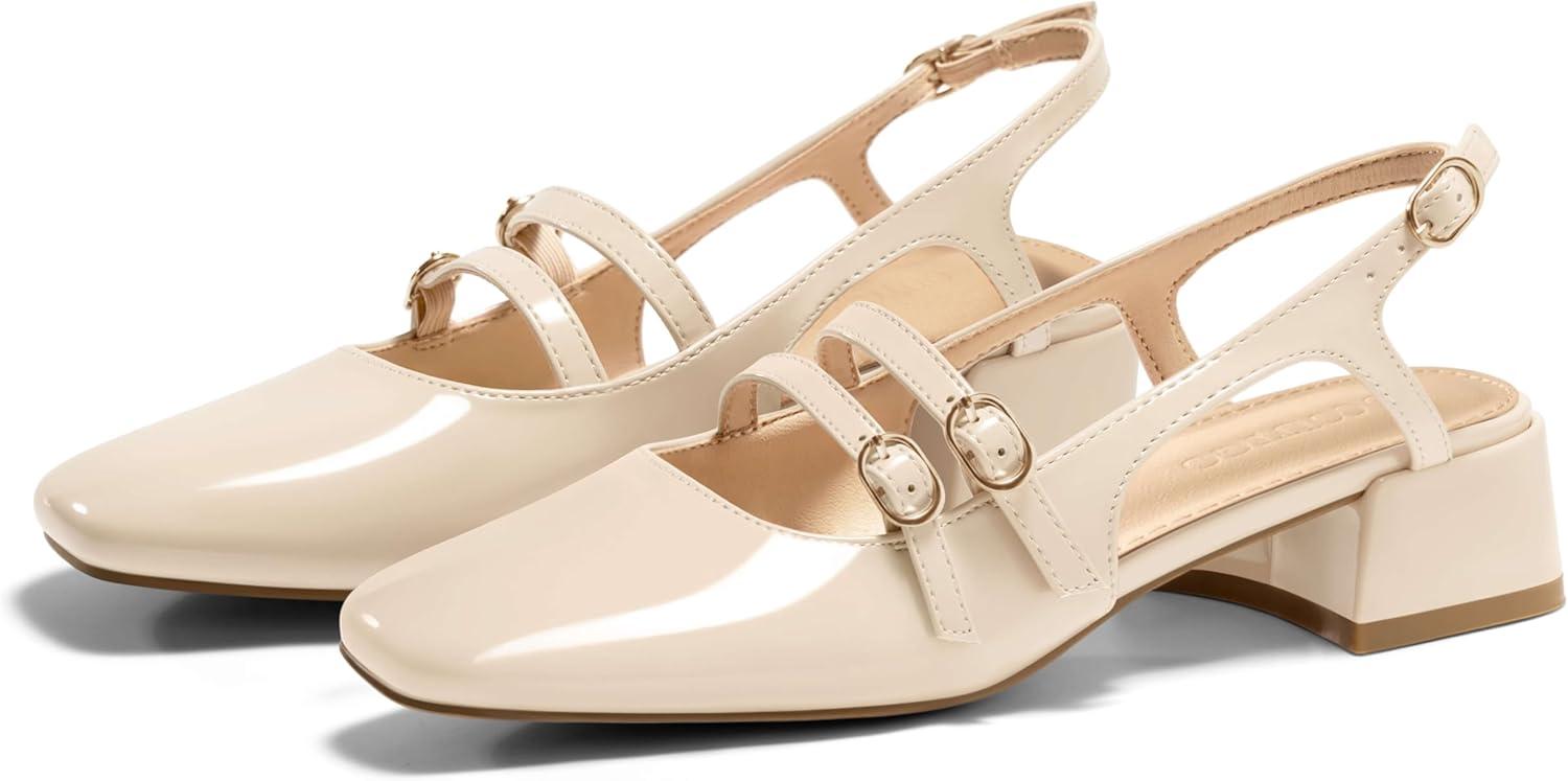 Be the first to review “Coutgo Womens Mary Jane Chunky Low Heels Slingback Pumps Closed Square Toe Wedding Dress Shoes(Beige)”