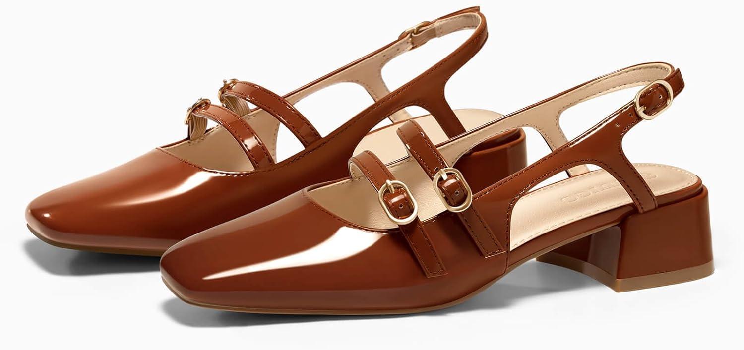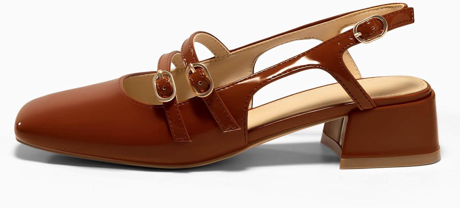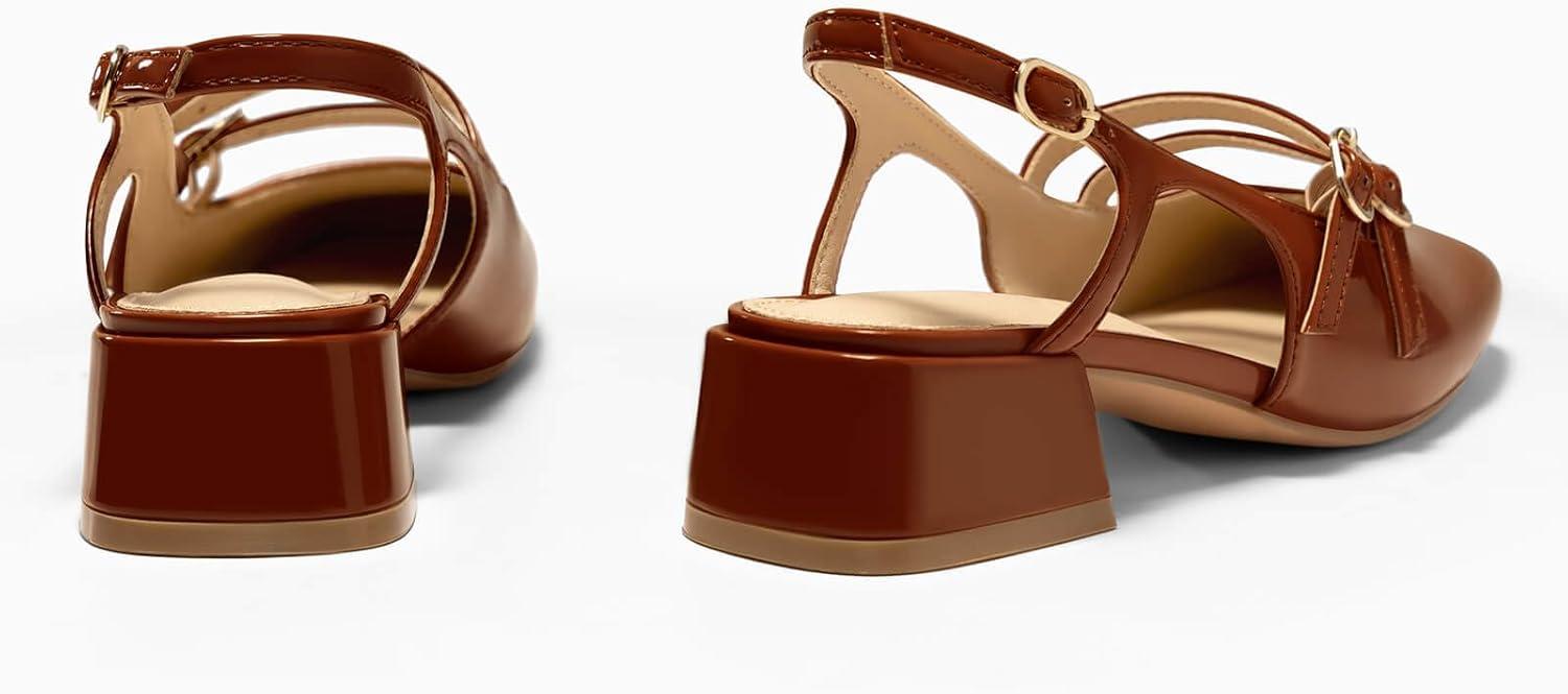 Coutgo Womens Mary Jane Chunky Low Heels Slingback Pumps Closed Square Toe Wedding Dress Shoes(Dark Brown)