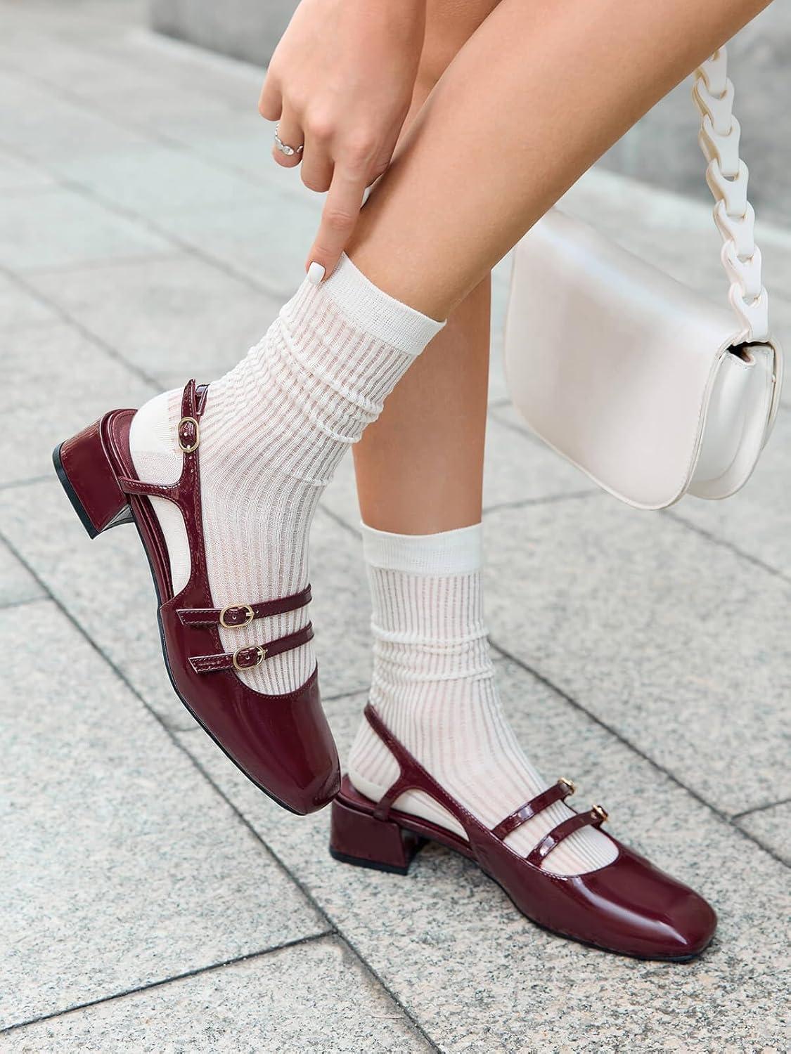 Be the first to review “Coutgo Womens Mary Jane Chunky Low Heels Slingback Pumps Closed Square Toe Wedding Dress Shoes(Dark Red)”