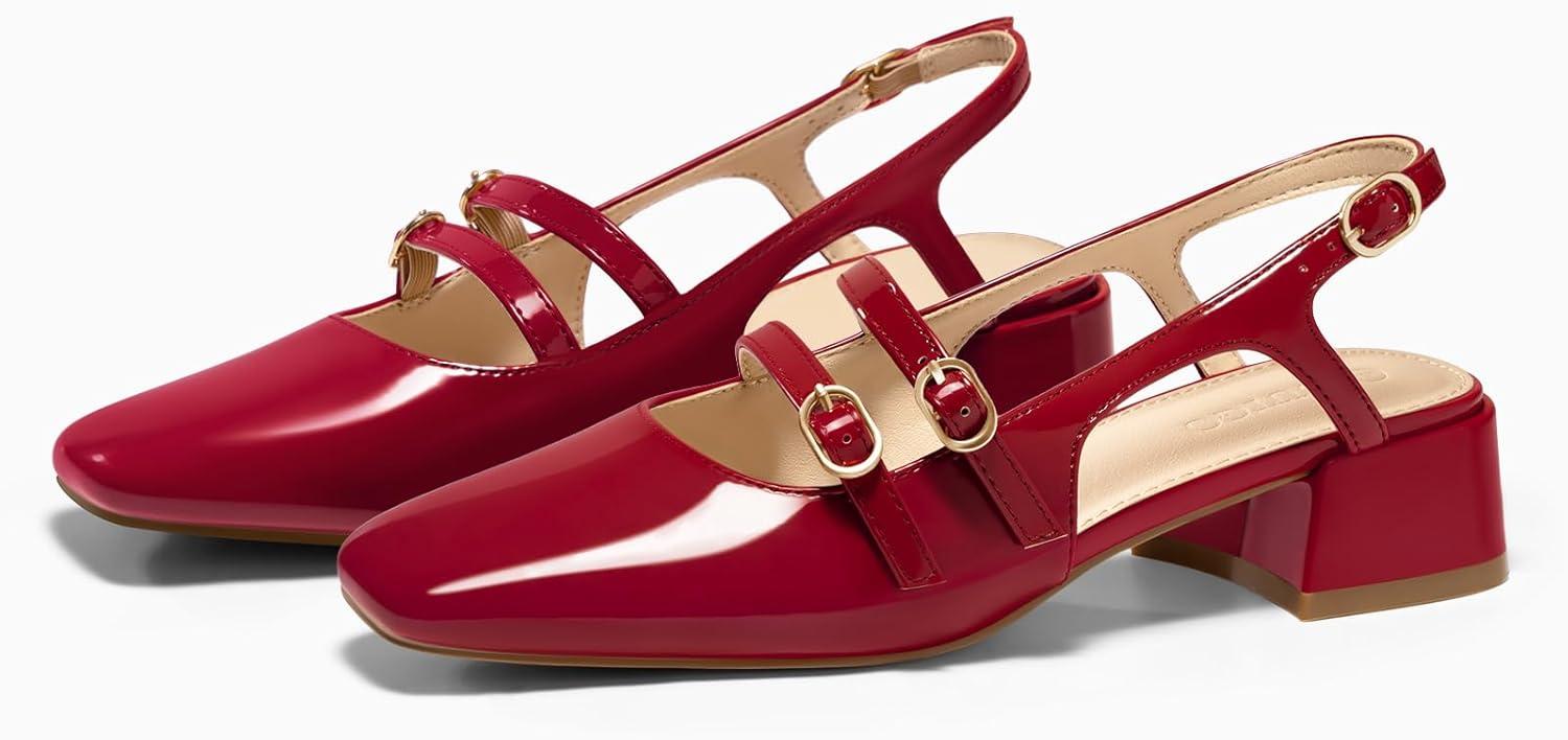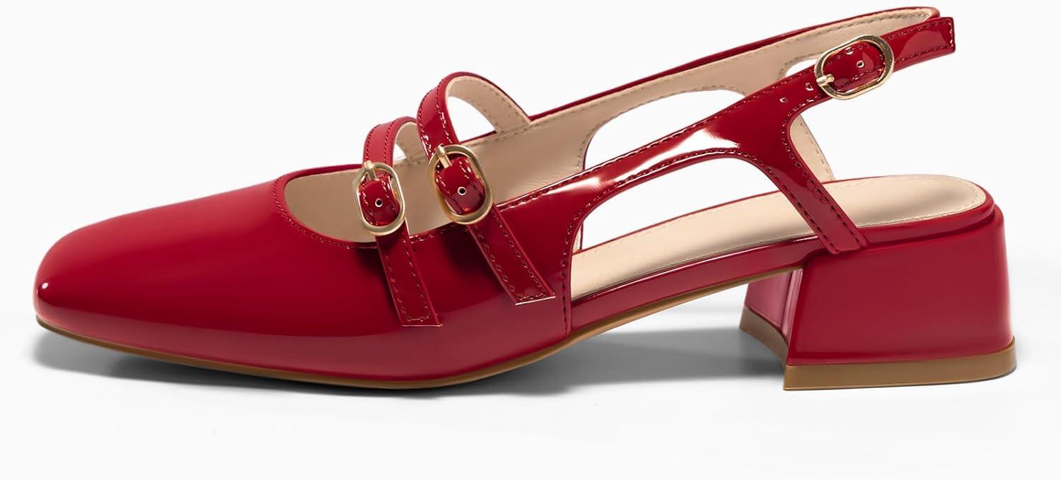 Be the first to review “Coutgo Womens Mary Jane Chunky Low Heels Slingback Pumps Closed Square Toe Wedding Dress Shoes(Red)”