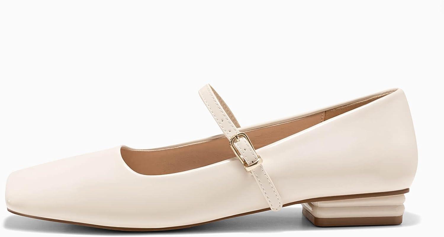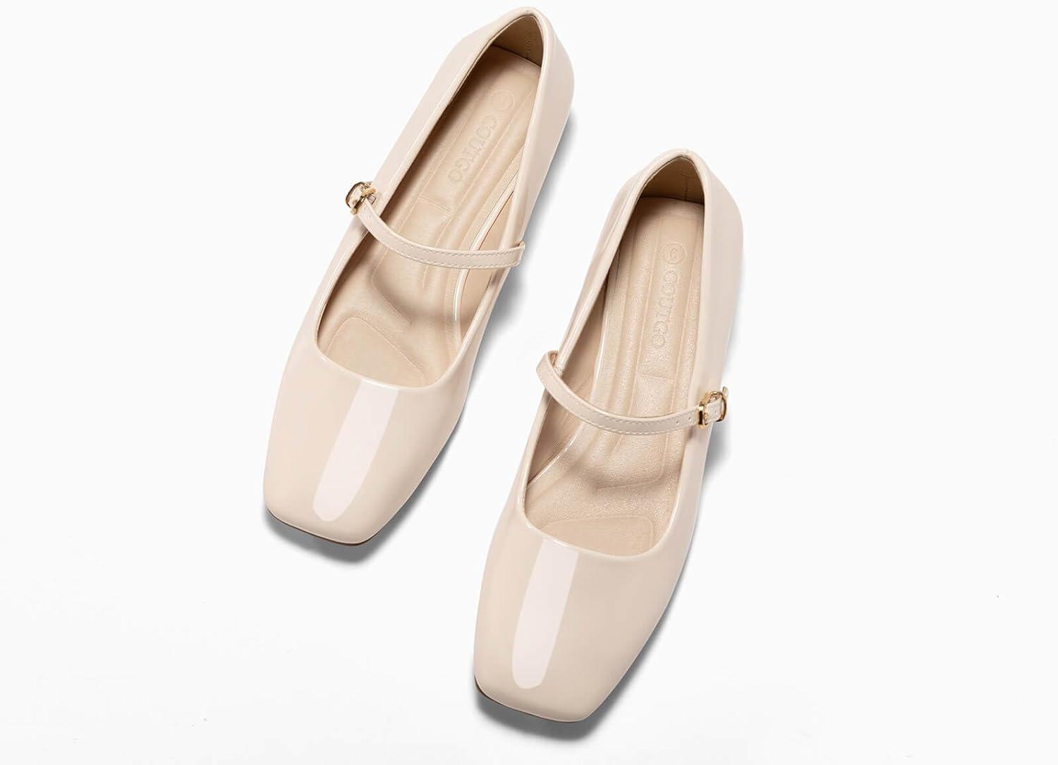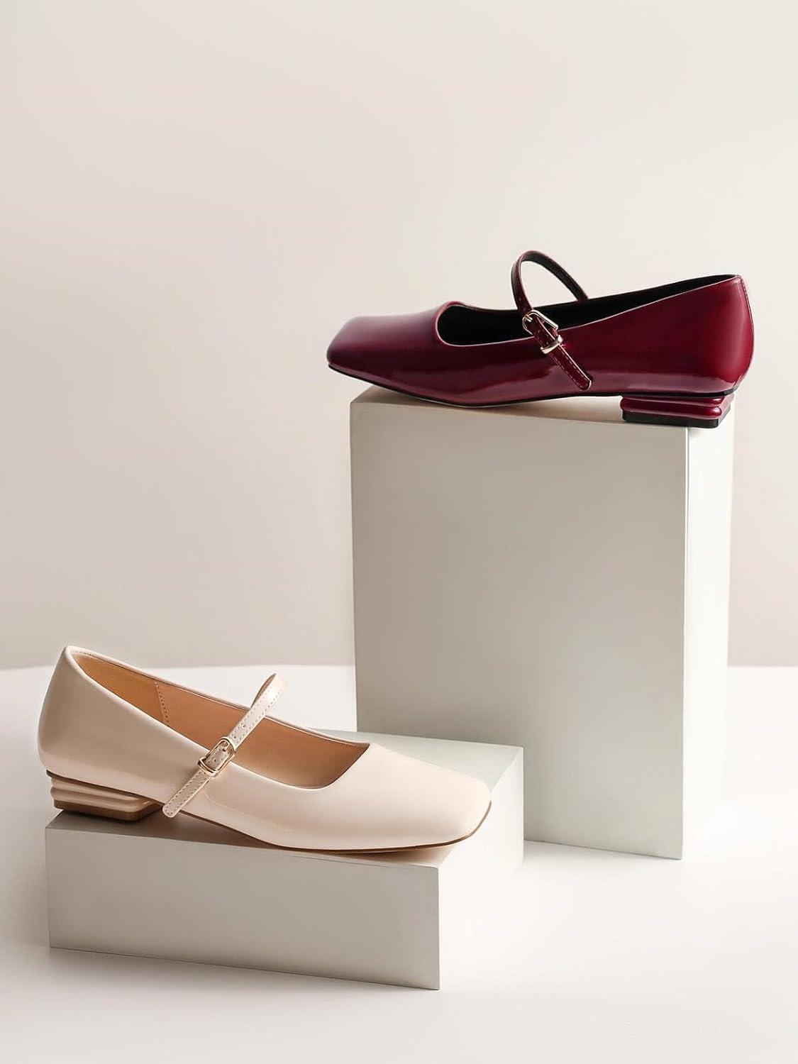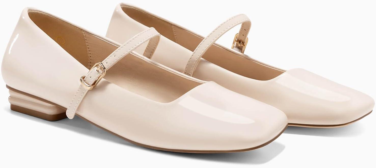 Coutgo Women’s Mary Jane Flats Closed Square Toe Ballet Flat Dressy Comfortable Slip on Shoes(Beige)