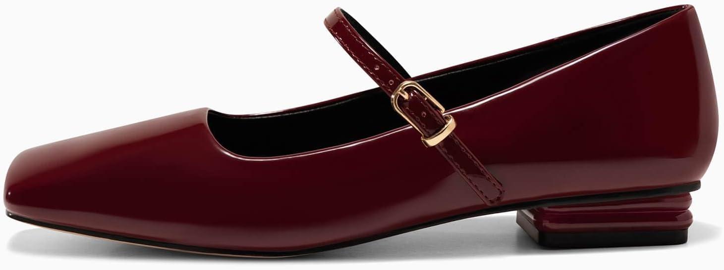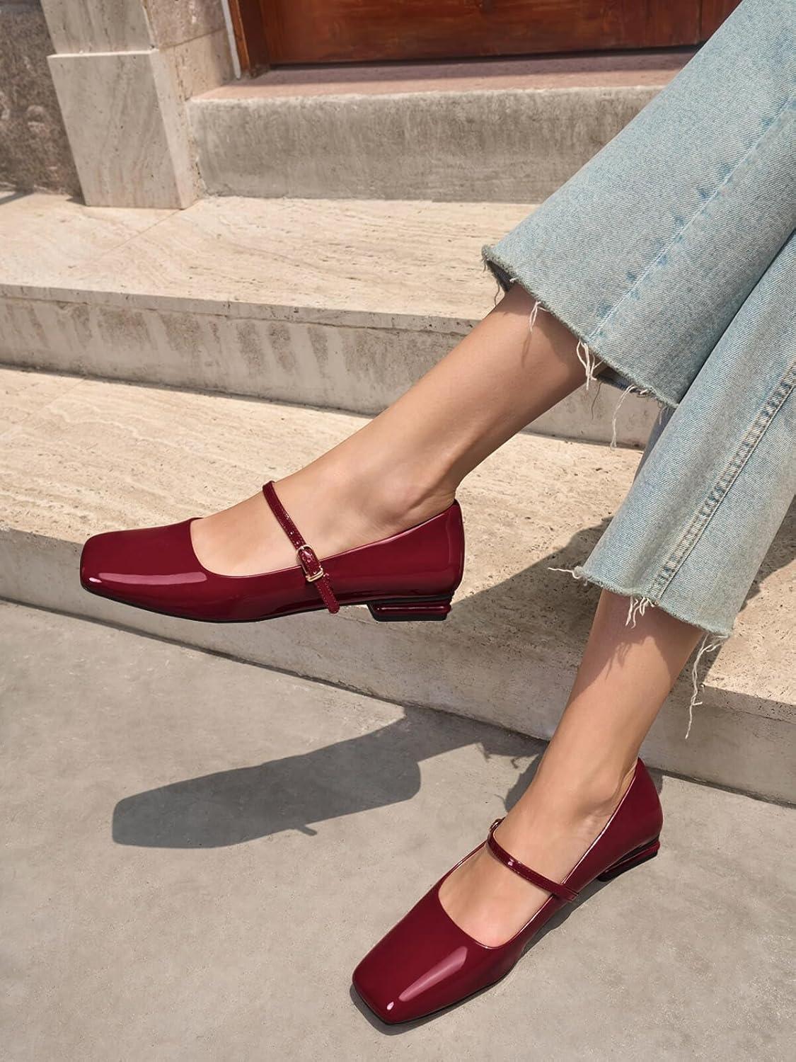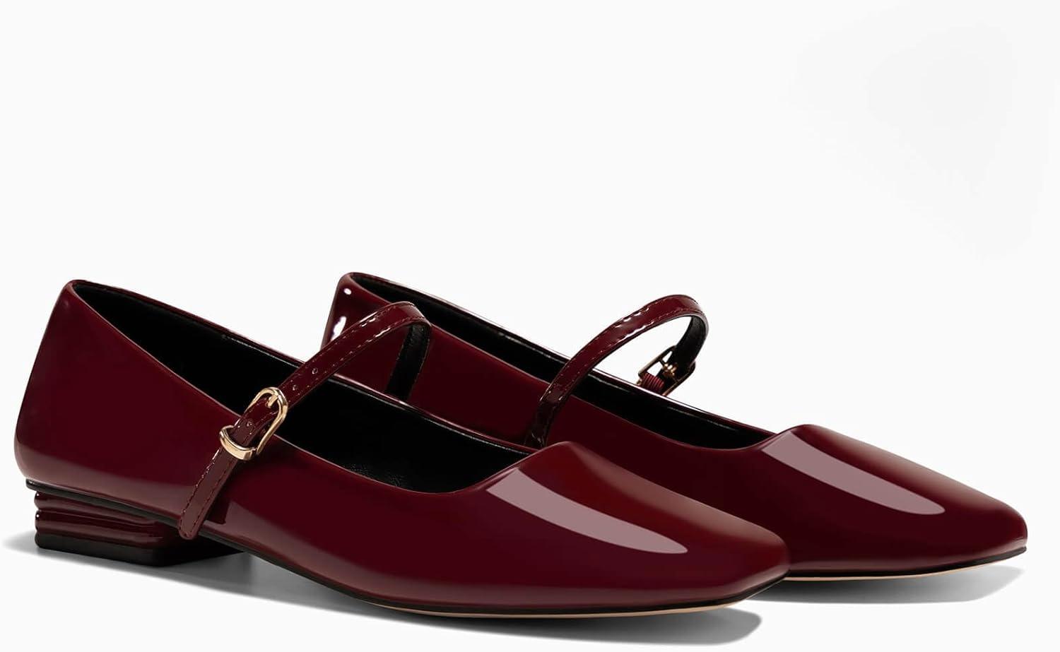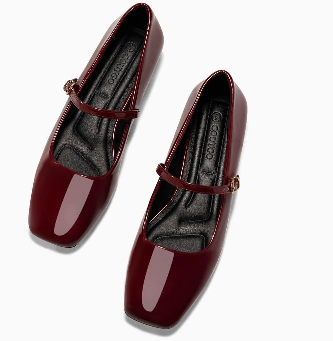 Coutgo Women’s Mary Jane Flats Closed Square Toe Ballet Flat Dressy Comfortable Slip on Shoes(Burgundy)