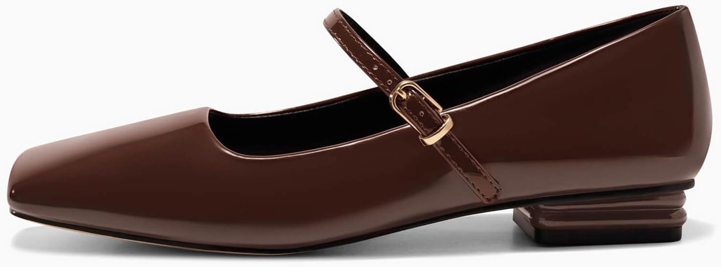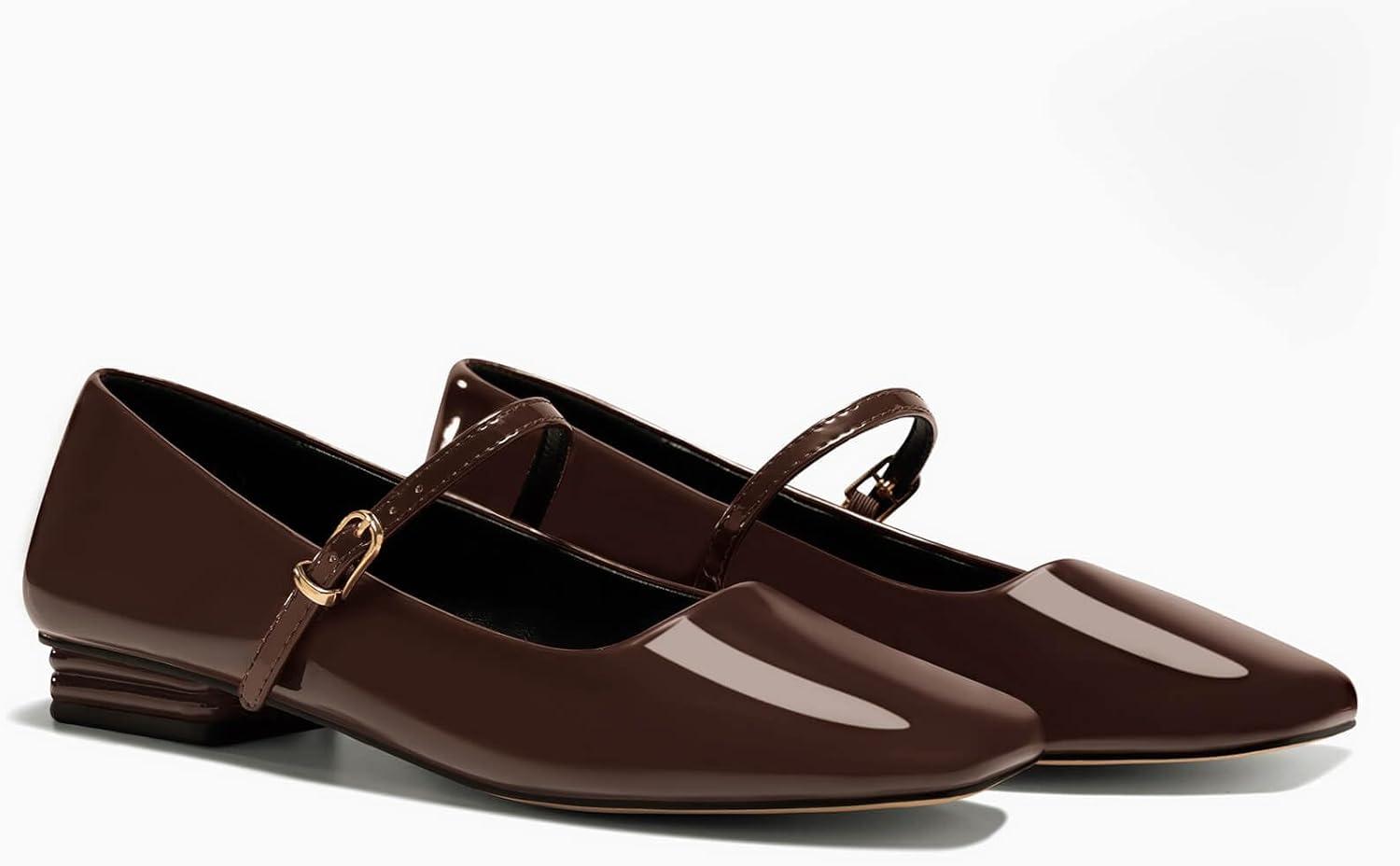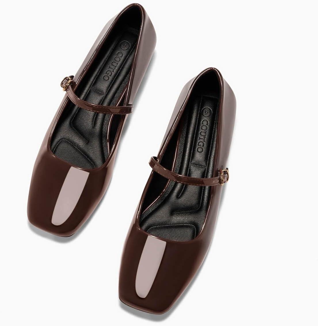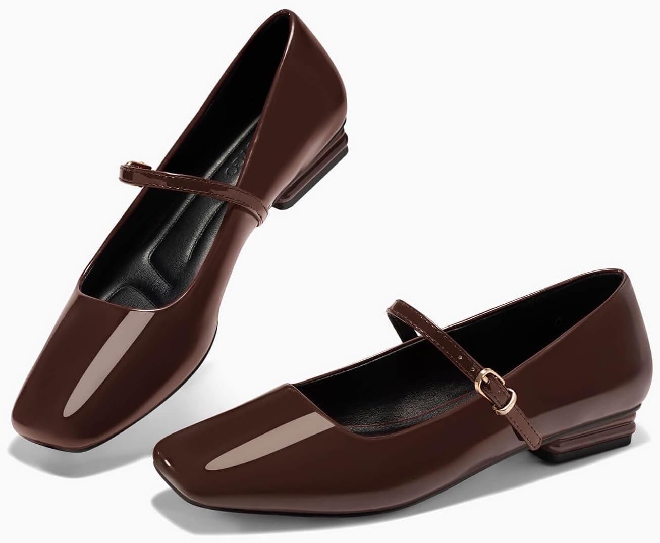 Coutgo Women’s Mary Jane Flats Closed Square Toe Ballet Flat Dressy Comfortable Slip on Shoes(Coffee)
