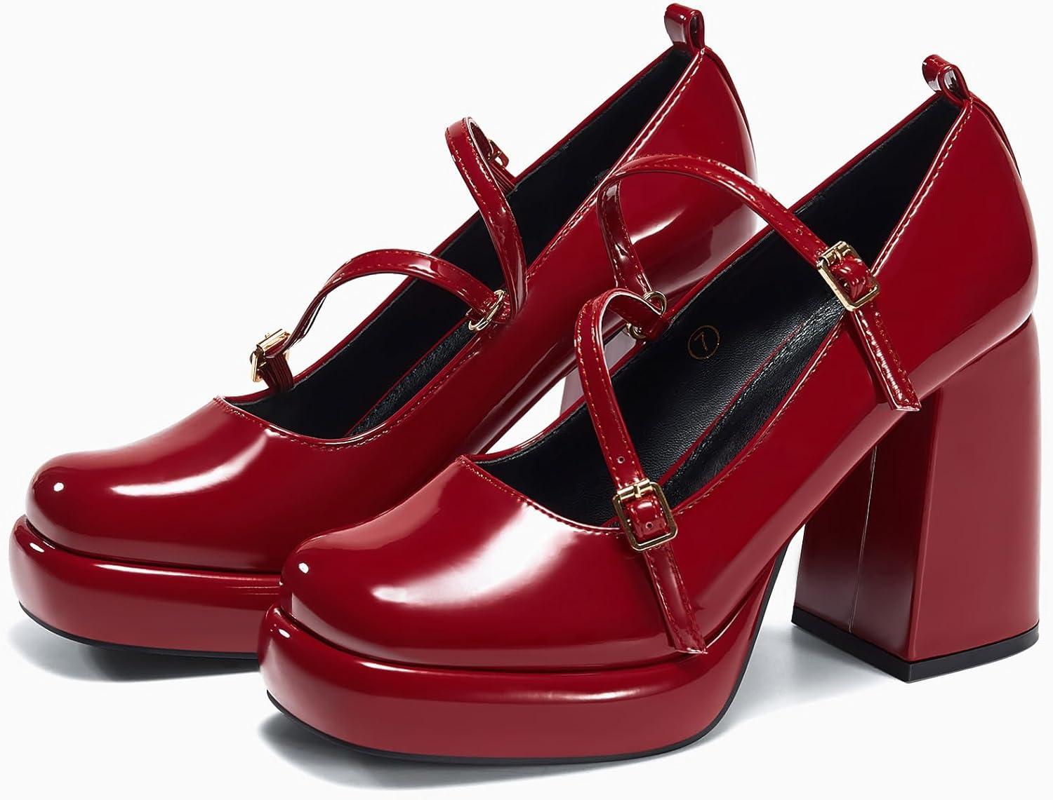 Be the first to review “Coutgo Womens Mary Jane Heels Chunky Platform Loafer Shoes Block Heel Closed Square Toe Pumps Cross Strap High Heel Dress Shoes(Red)”