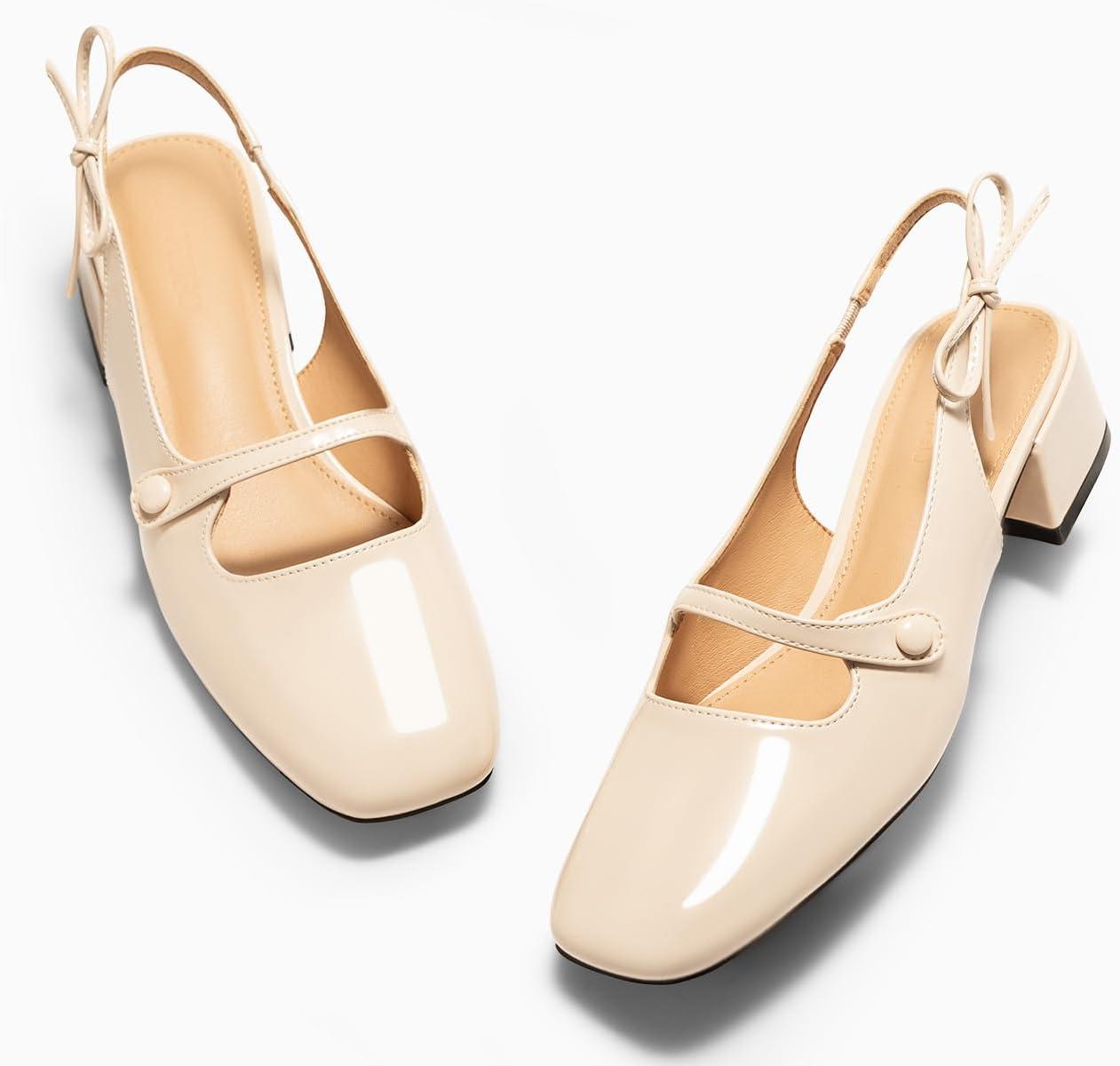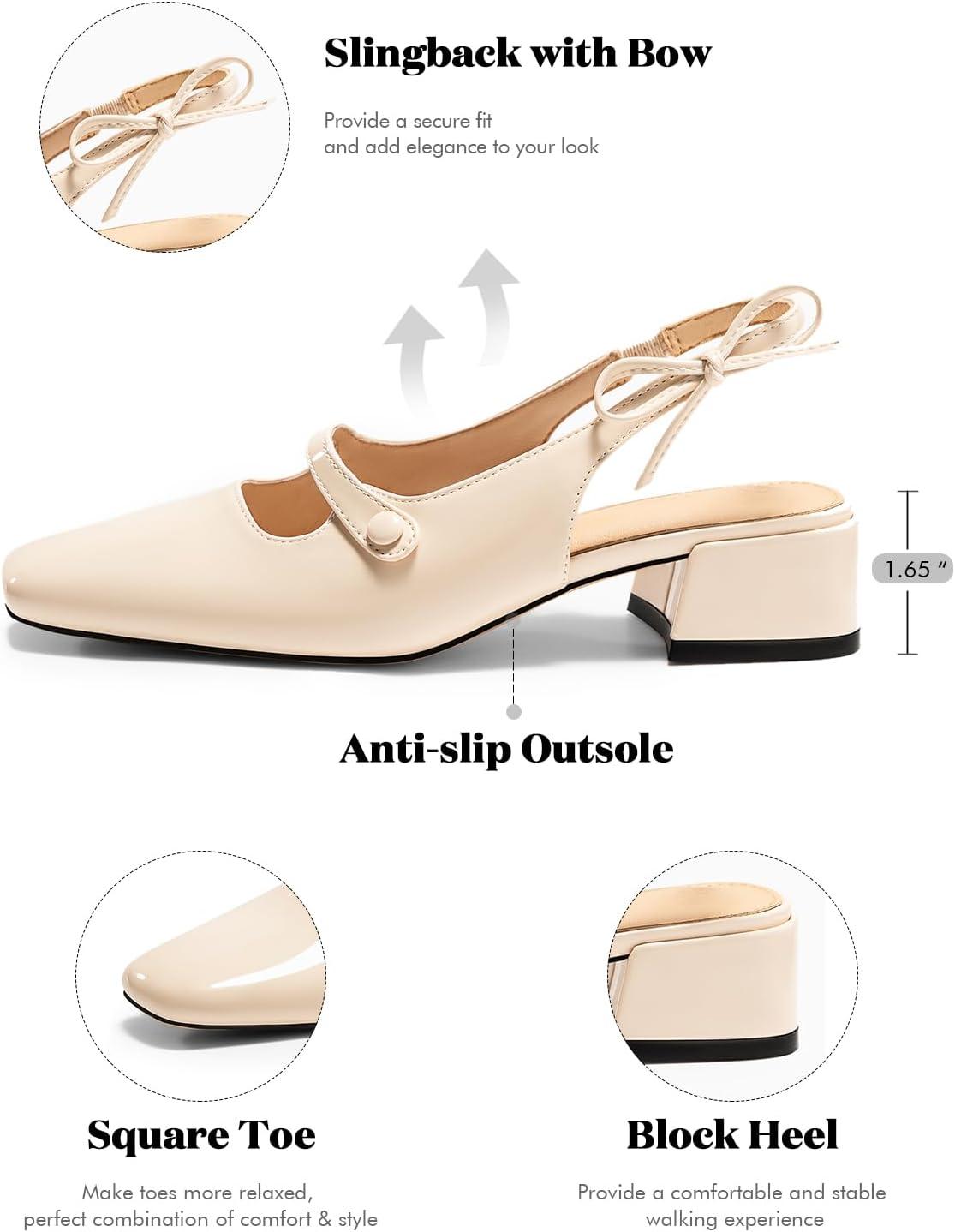 Don’t miss out on our limited-time offer: buy Coutgo Womens Mary Jane Shoes Slingback Chunky Low Heels Bow Closed Square Toe Pumps Wedding Party Dress Shoes(Apricot), get {accessory} 50% off!