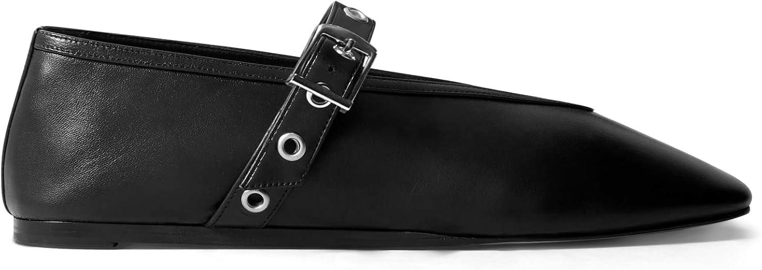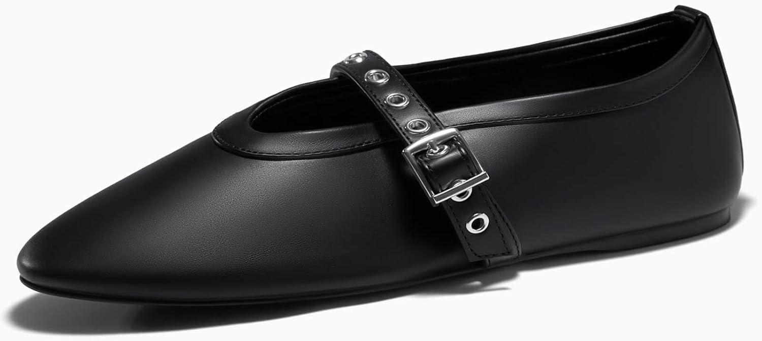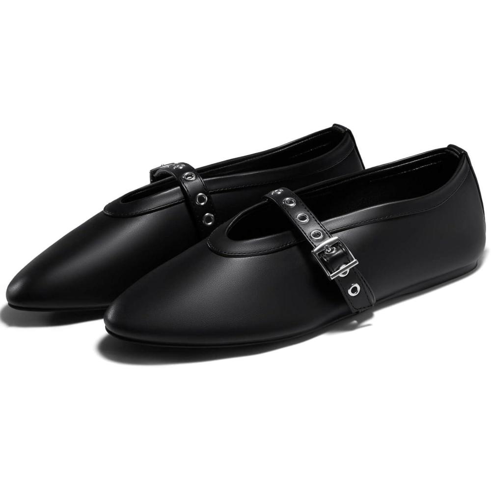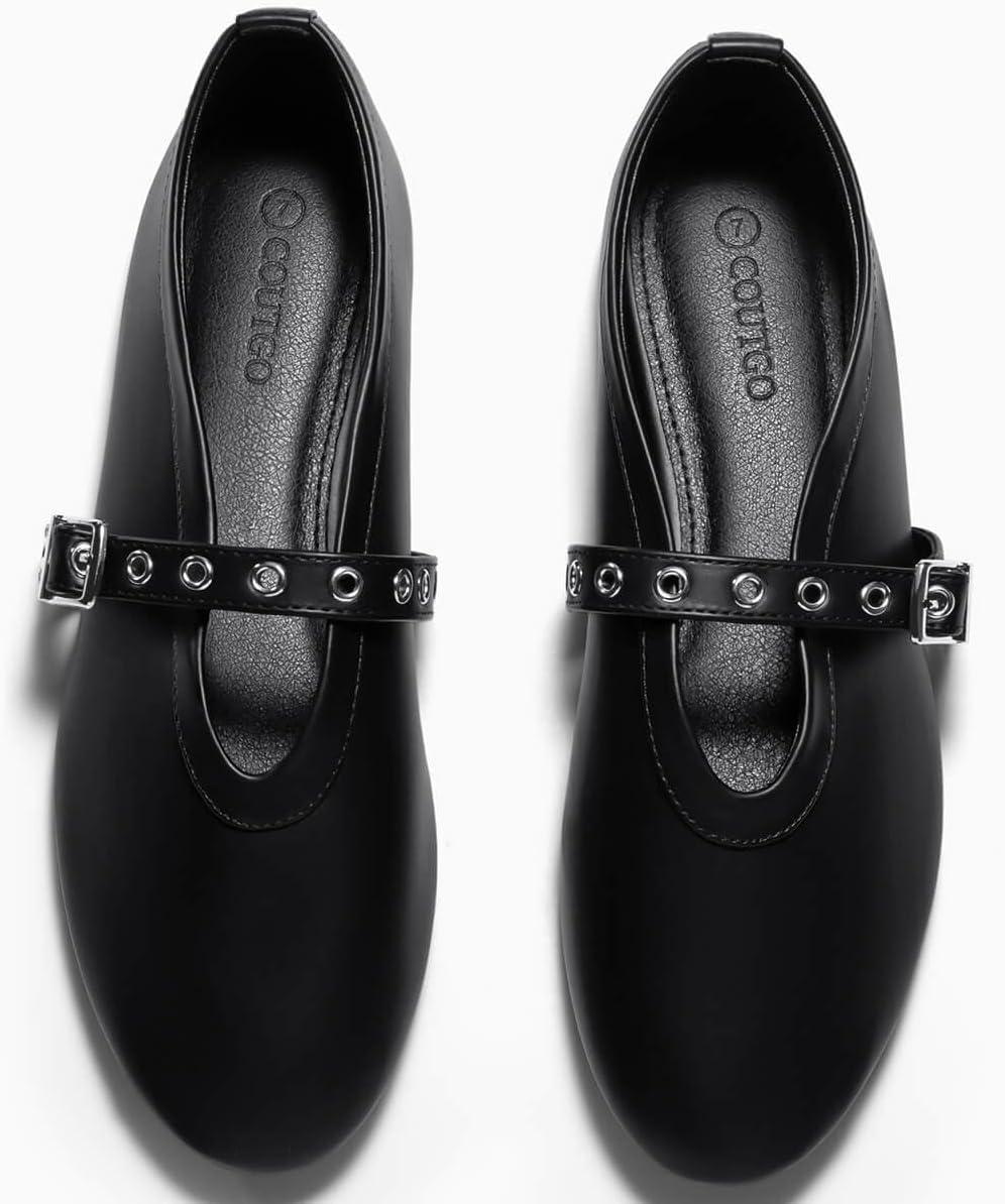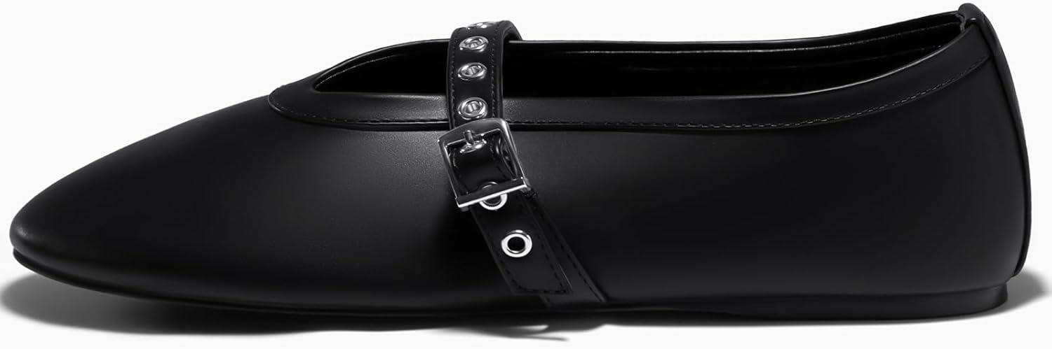 Coutgo Womens Mesh Ballet Flats Mary Jane Fishnet Ballerina Buckle Strap Comfortable Causal Dress Shoes(Cool Black)