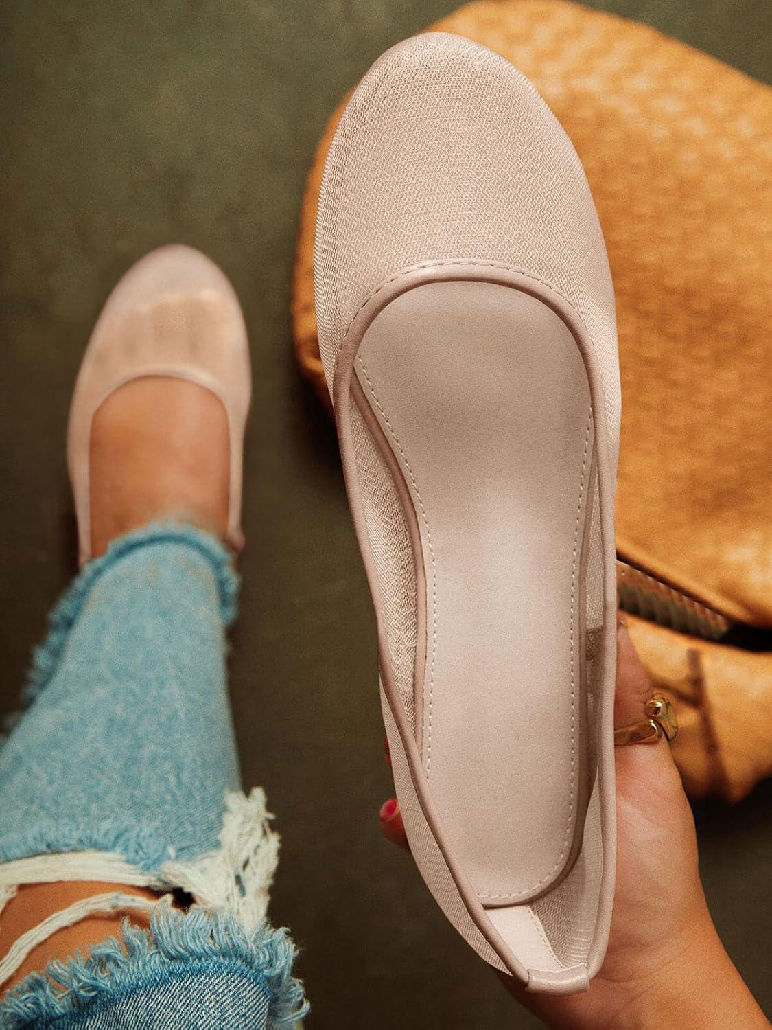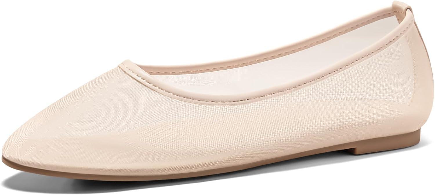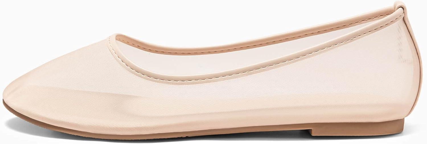 Coutgo Womens Mesh Ballet Flats Slip on Ballerina Flats Comfortable Casual Work Dress Shoes(Nude)