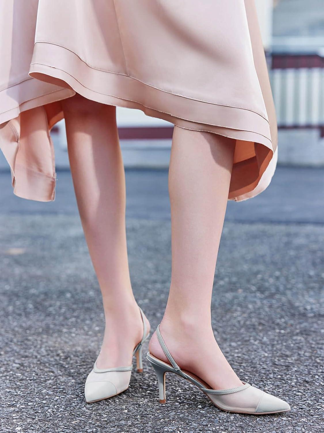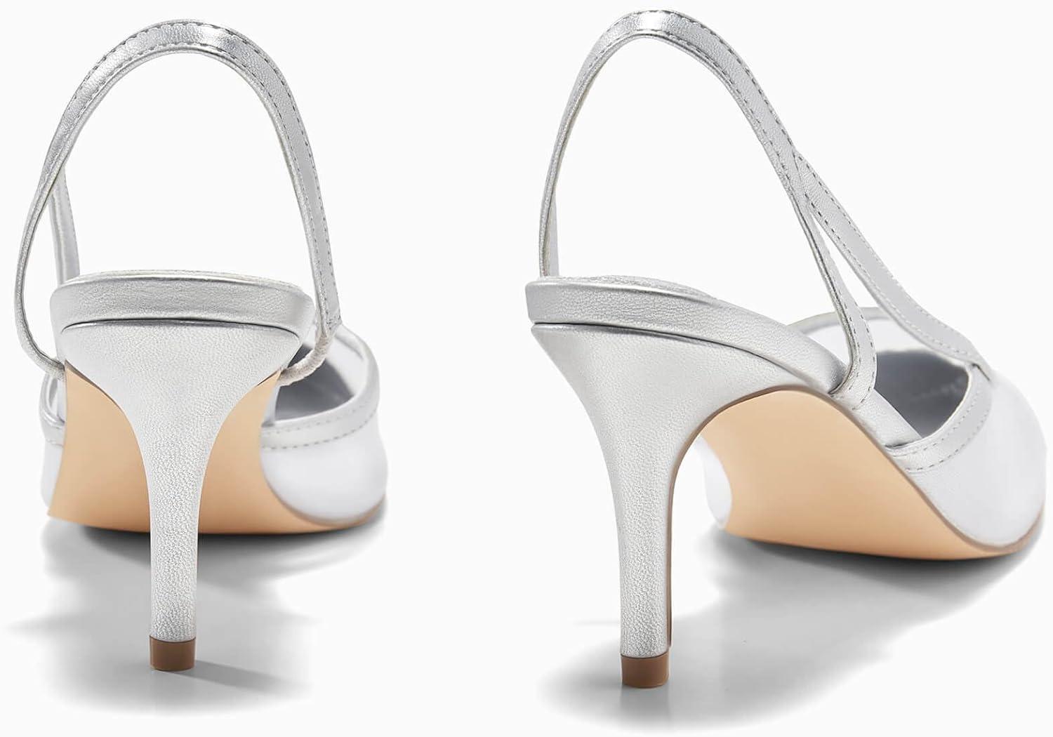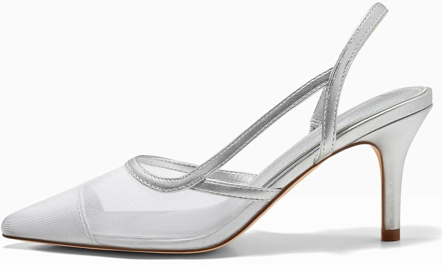 Coutgo Womens Mesh Slingback Heels Pointed Toe High Heels Pumps Slip On Party Dress Shoes(Silver)