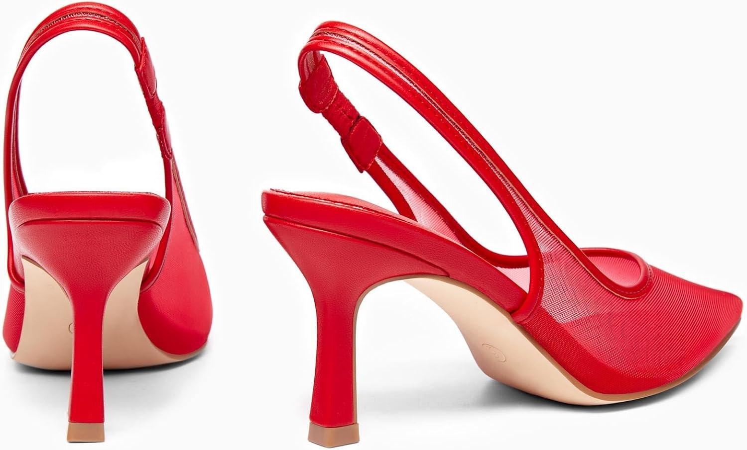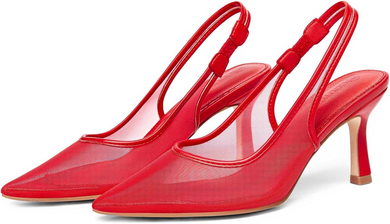 Coutgo Womens Mesh Slingback Kitten Heels Pointed Toe Low Heel Pumps Sexy Dress Shoes(Red)