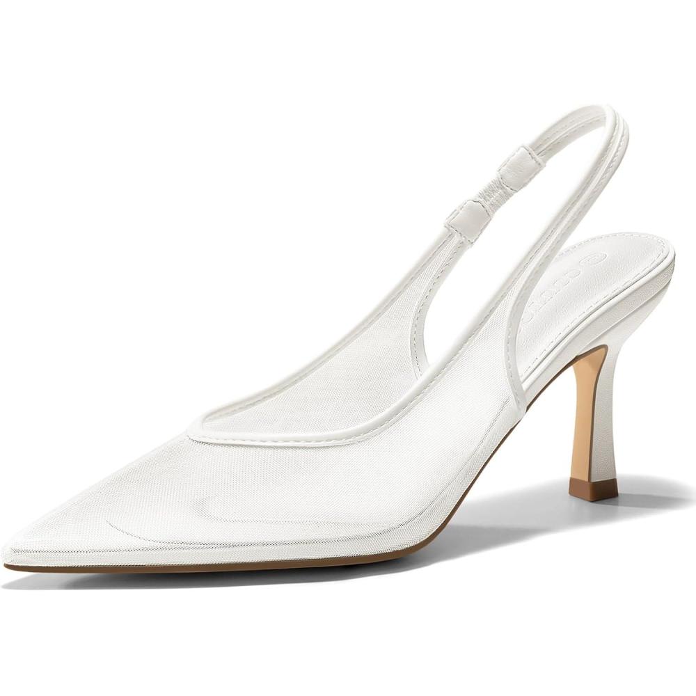 Don’t break the bank! Get the Coutgo Womens Mesh Slingback Kitten Heels Pointed Toe Low Heel Pumps Sexy Dress Shoes(White) you want at a price you can afford during our markdown sale.