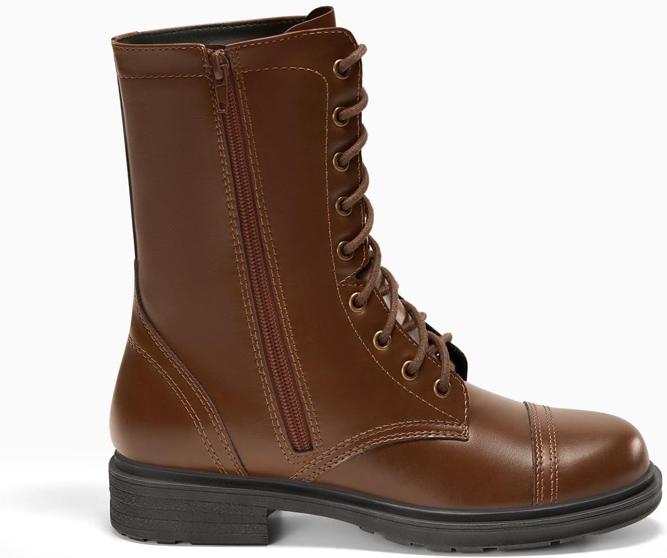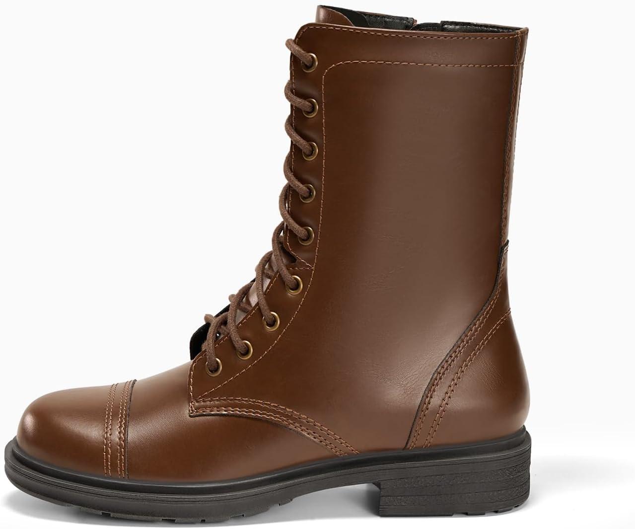 Don’t miss out on our limited-time offer: get a free {accessory} with your purchase of Coutgo Womens Mid Calf Combat Boots Low Heel Lace Up Round Toe Military Boots Fall Shoes with Side Zipper(Dark Brown).